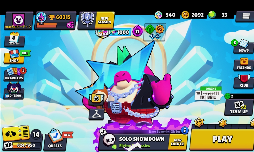 10 TITLES â 219 SKINS â 60.300 TROPHY â 90 BRAWLERS â 22 MAX â 14 HYPERCHARGED â KITBOXER â CHAINSAW BUSTER â BORN BAD BUZZ â KONG SURGE â KABOCHA FANG â SPIKE â LEGENDARY â LEON
