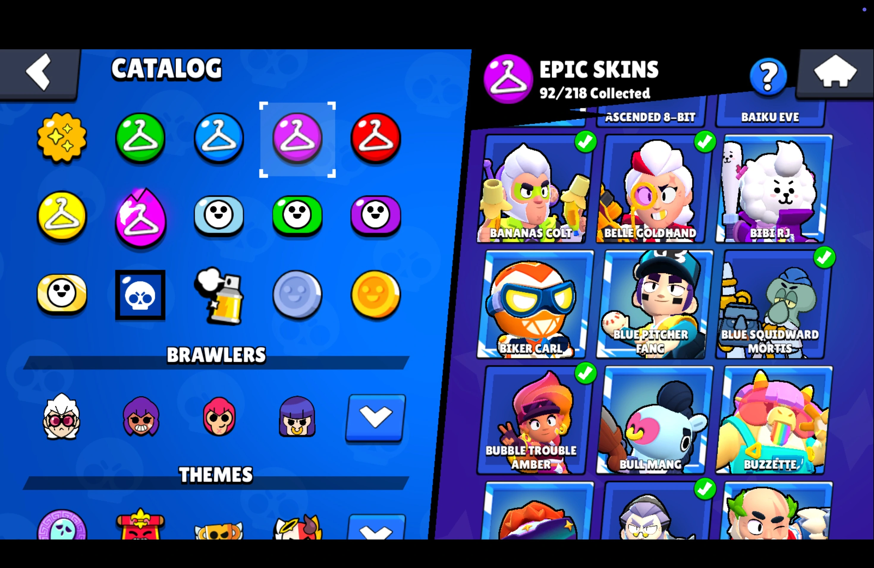 11.11 PIN â 9 LEGENDARY SKINS â 259 SKINS â 58.700 TROPHY â 92 BRAWLERS â 21 MAX â 19 HYPERCHARGED â BELLE GOLDHAND â VALKYRIE JANET â CALAVERA PIPER â SCARLET PALADIN SURGE â KABOCHA FANG â TOON SPIKE â LEGENDARY â LEON
