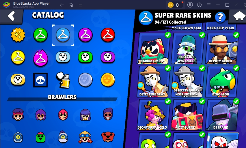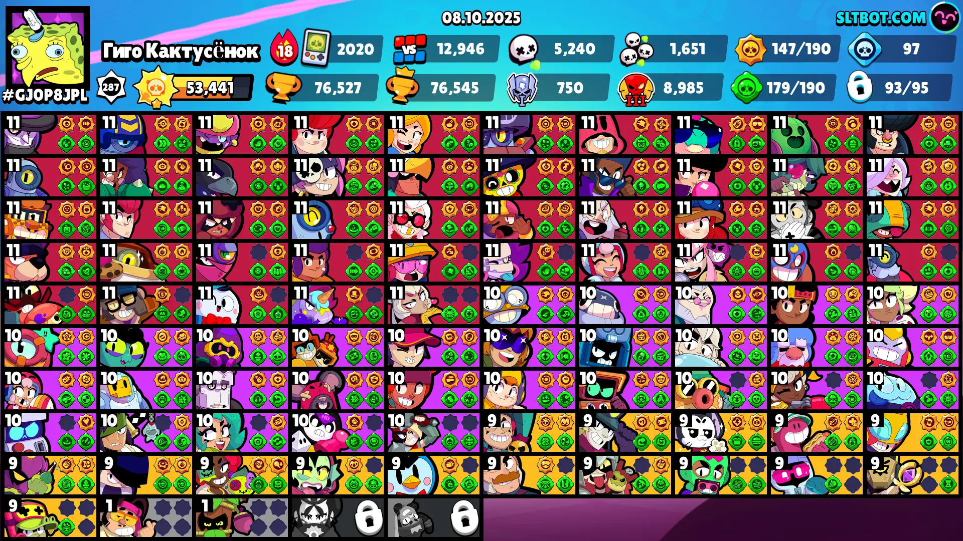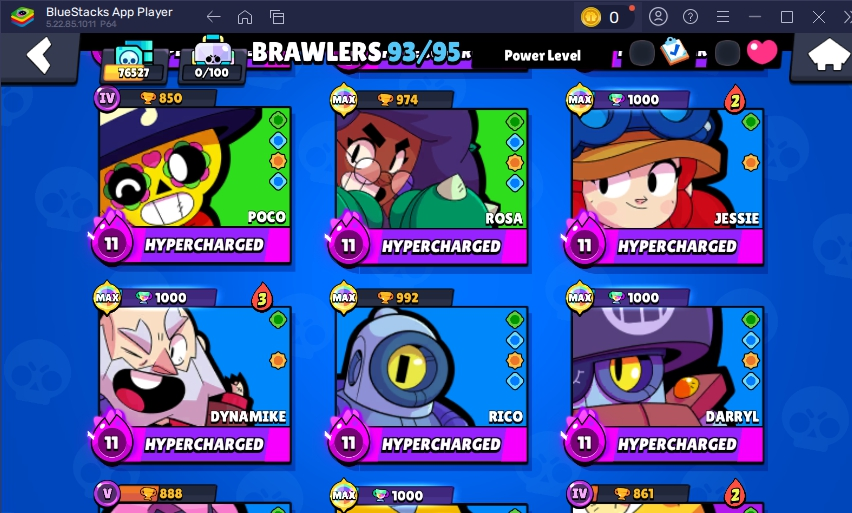 11.11 PIN â FURIOS FANG â 262 SKINS â 76.500 TROPHY â 93 BRAWLERS â 36 HYPERCHARGED â 45 MAXED BRAWLERS â MECHA MORTIS â CHAINSAW BUSTER â DARK LORD SPIKE â FINAL BOSS RICO â CUPID PIPER â LEGENDARY