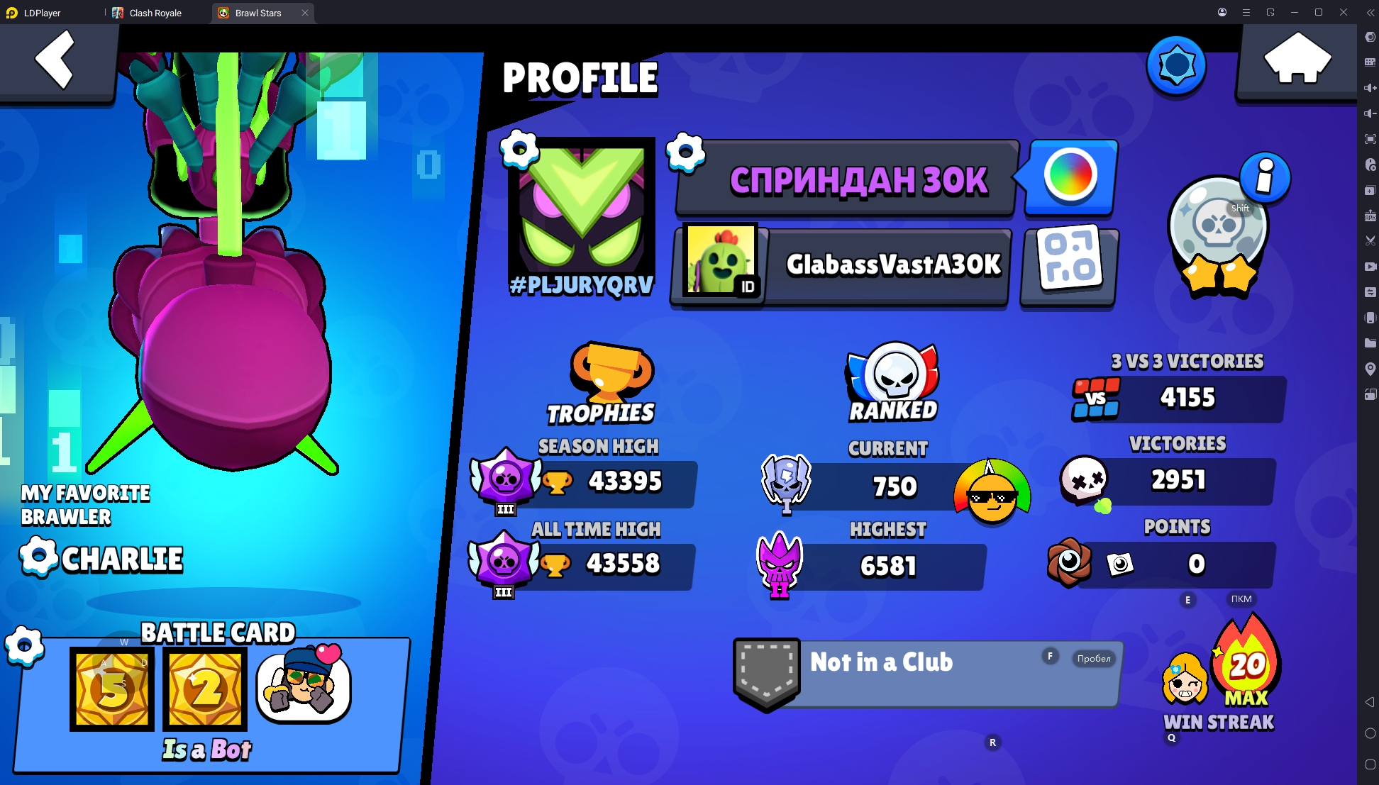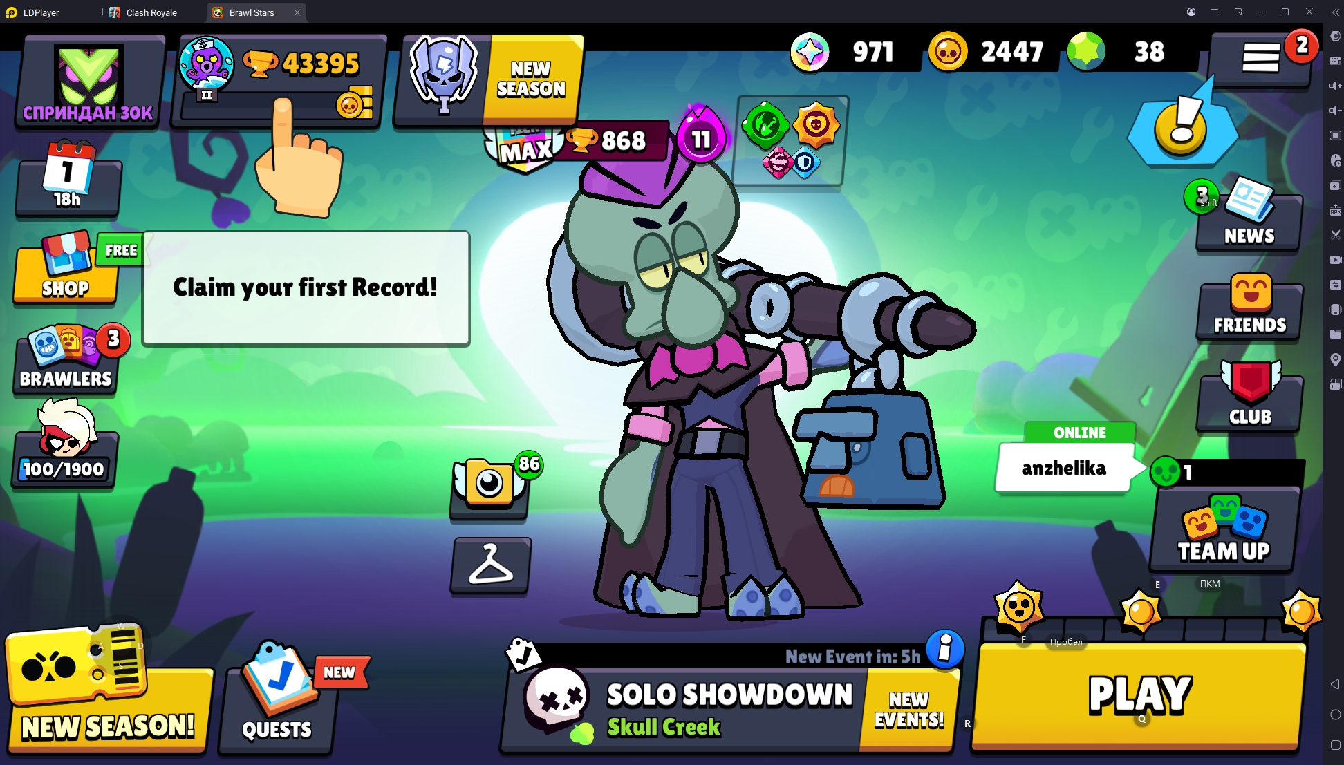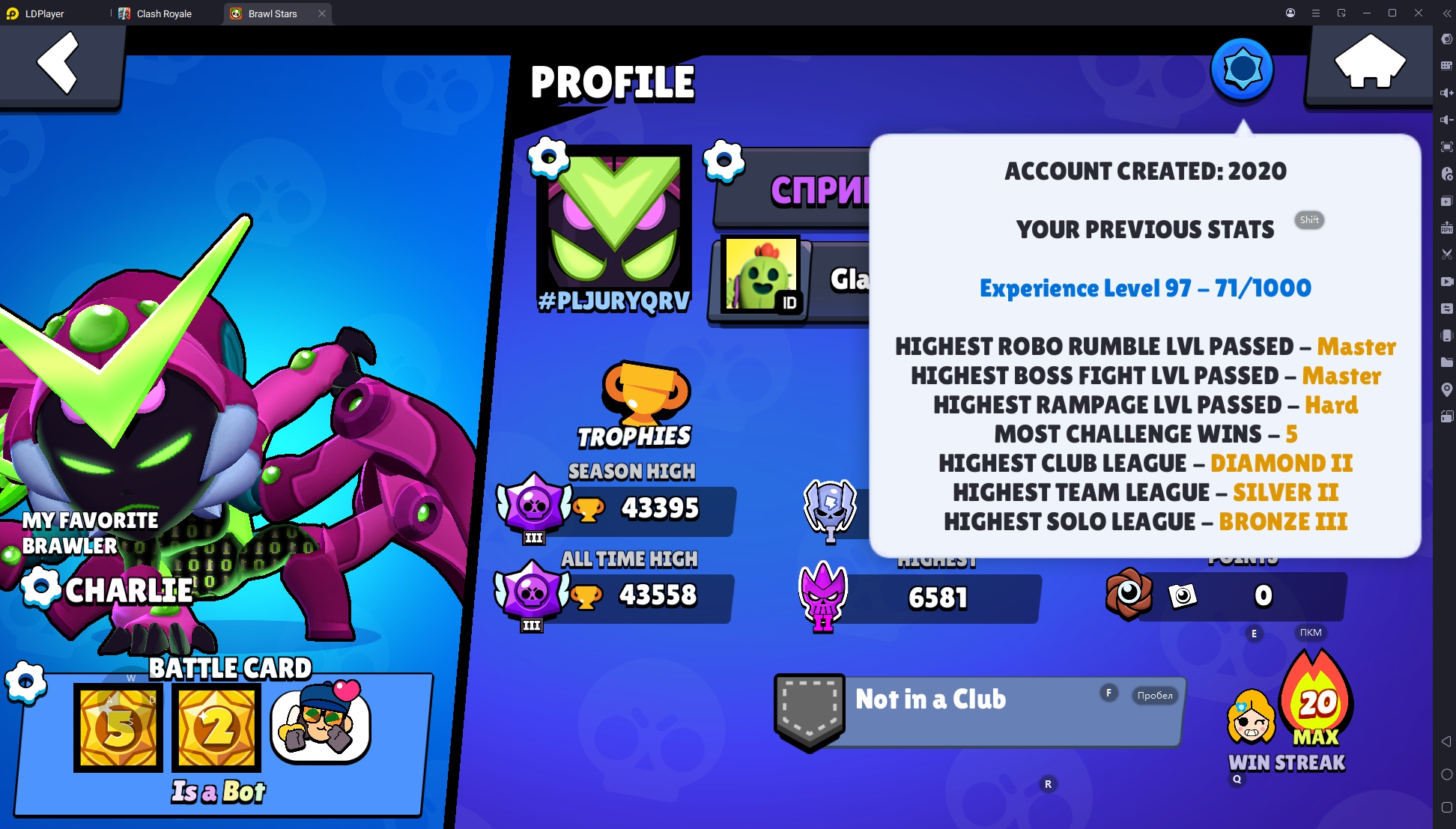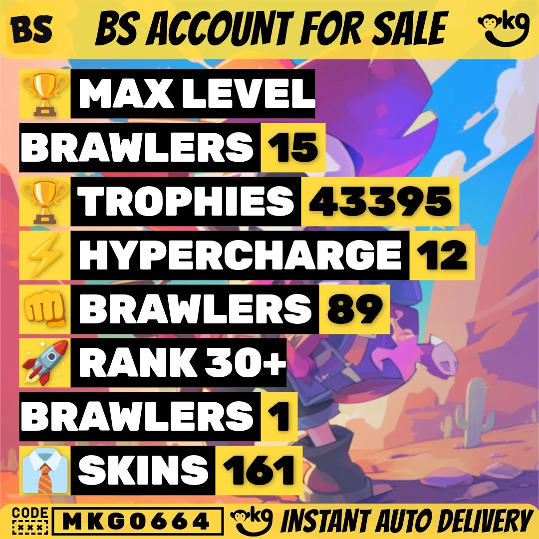 161 SKINS 💯 PIN 11.11 🧡 43.395 TROPHIES 🏆 89 BRAWLERS 🐼 12 HYPERCHARGED 🩸 15 MAX BRAWLERS 💛 SPONGEBOB EL PRIMO !MKG0664