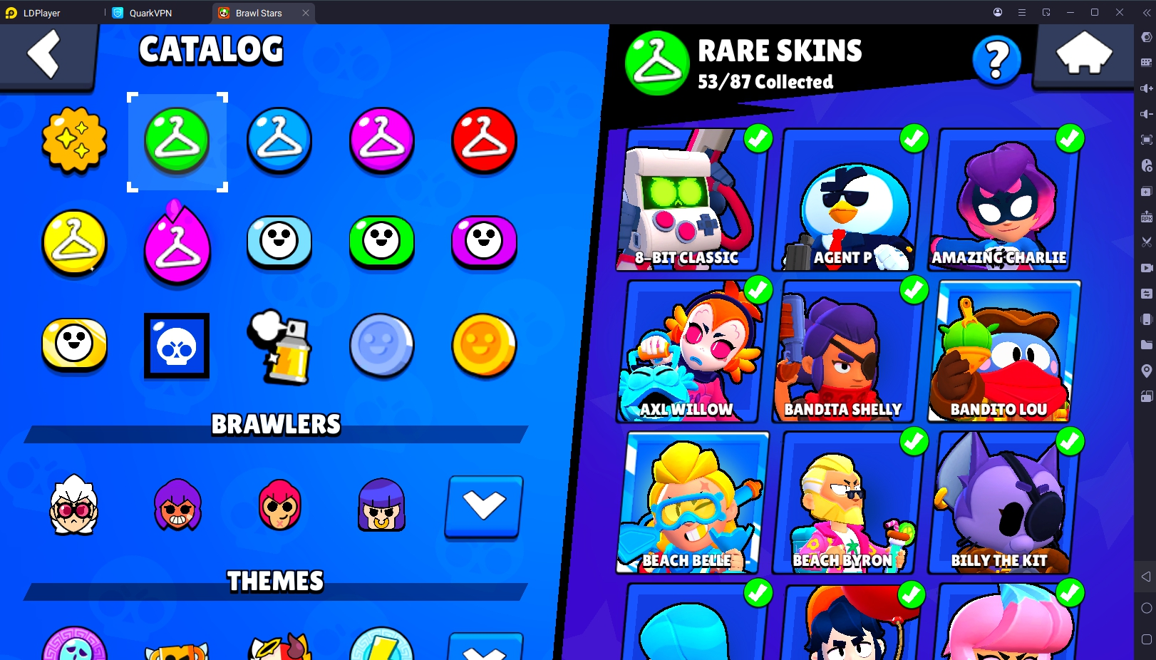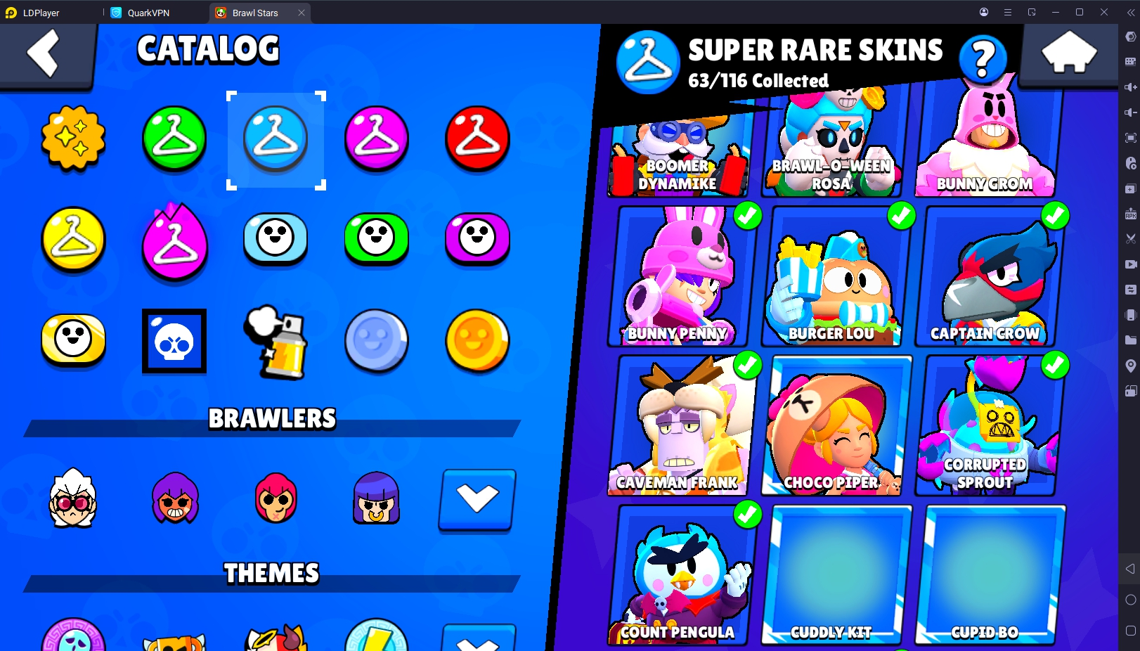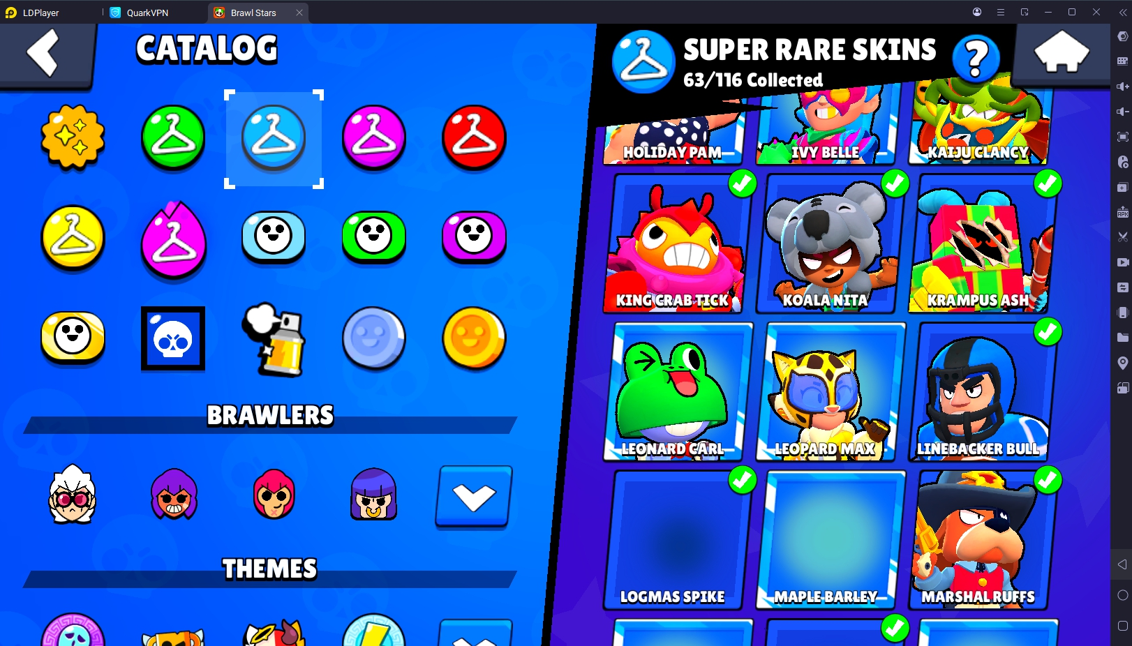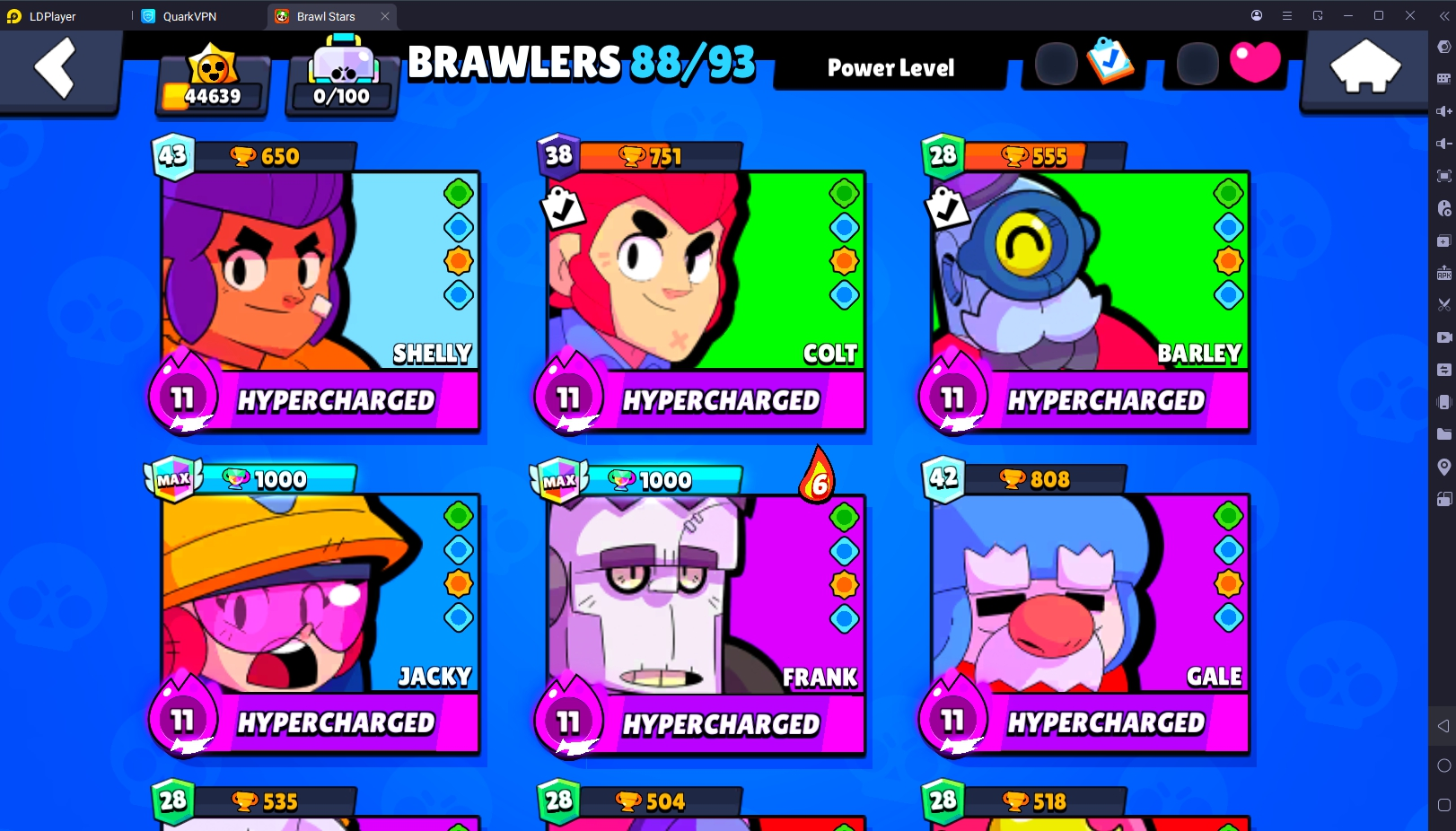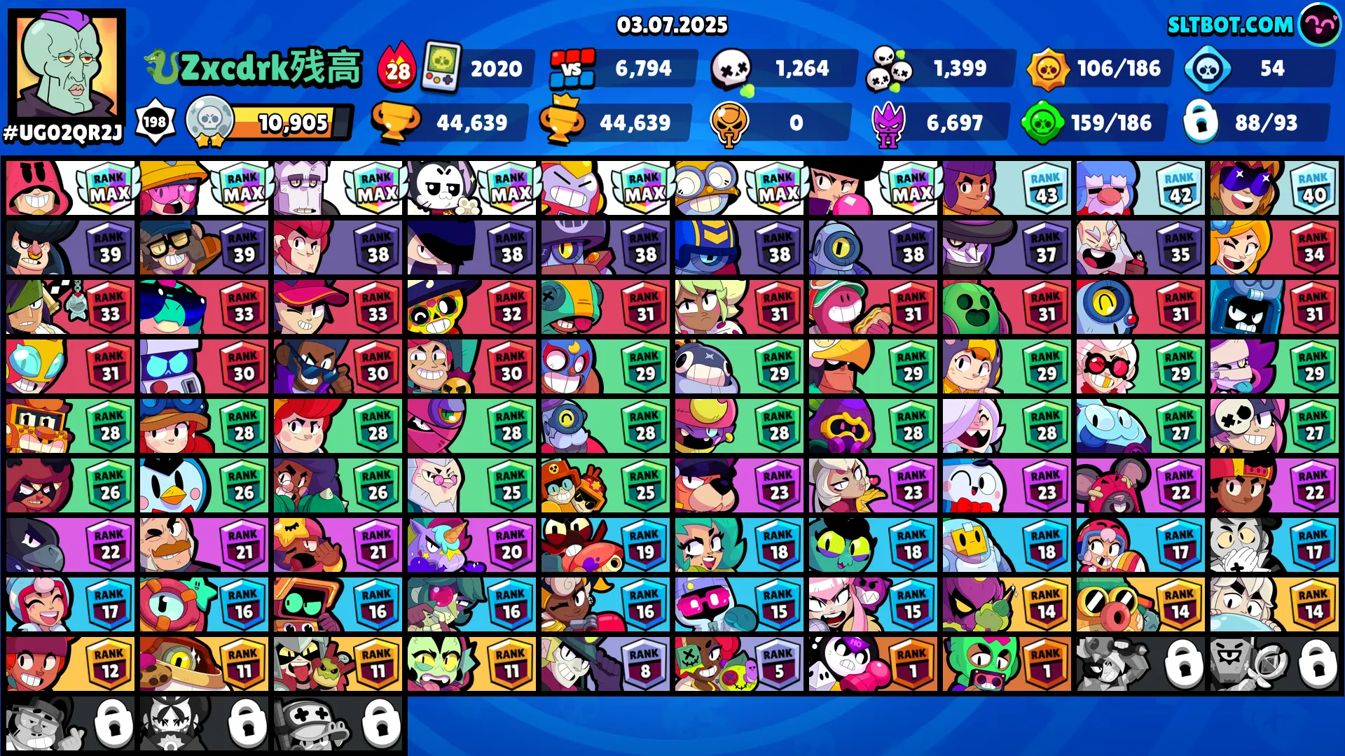 175 SKINS 💯 BELLE GOLDHAND 🧡 7 MAX RANKED🩸 44.639 TROPHIES 🏆 88 BRAWLERS 🐼 12 HYPERCHARGED 🩸 25 MAX BRAWLERS 💛 WHITE WOLF LEON 🧡 MEGALADON 🧡 MOLDY MIKE 🧡 BORN BAD BUZZ 💯✅