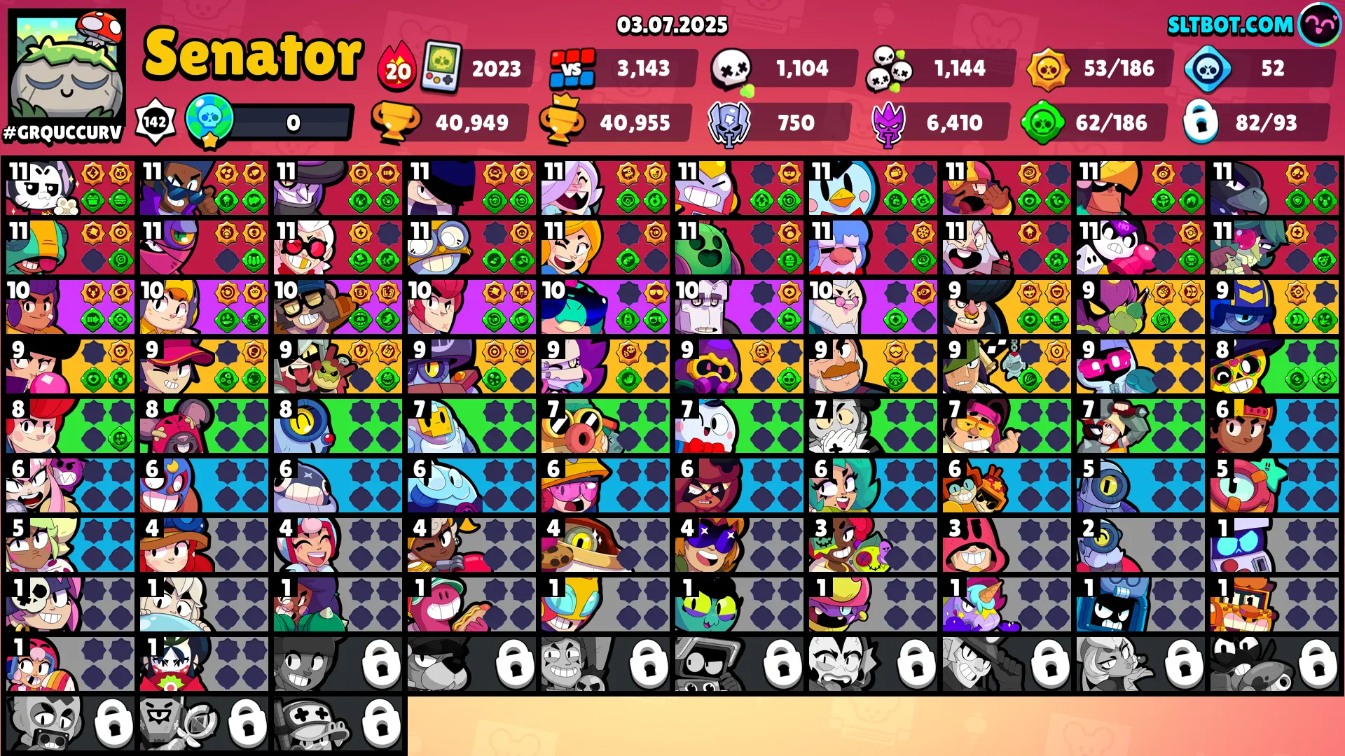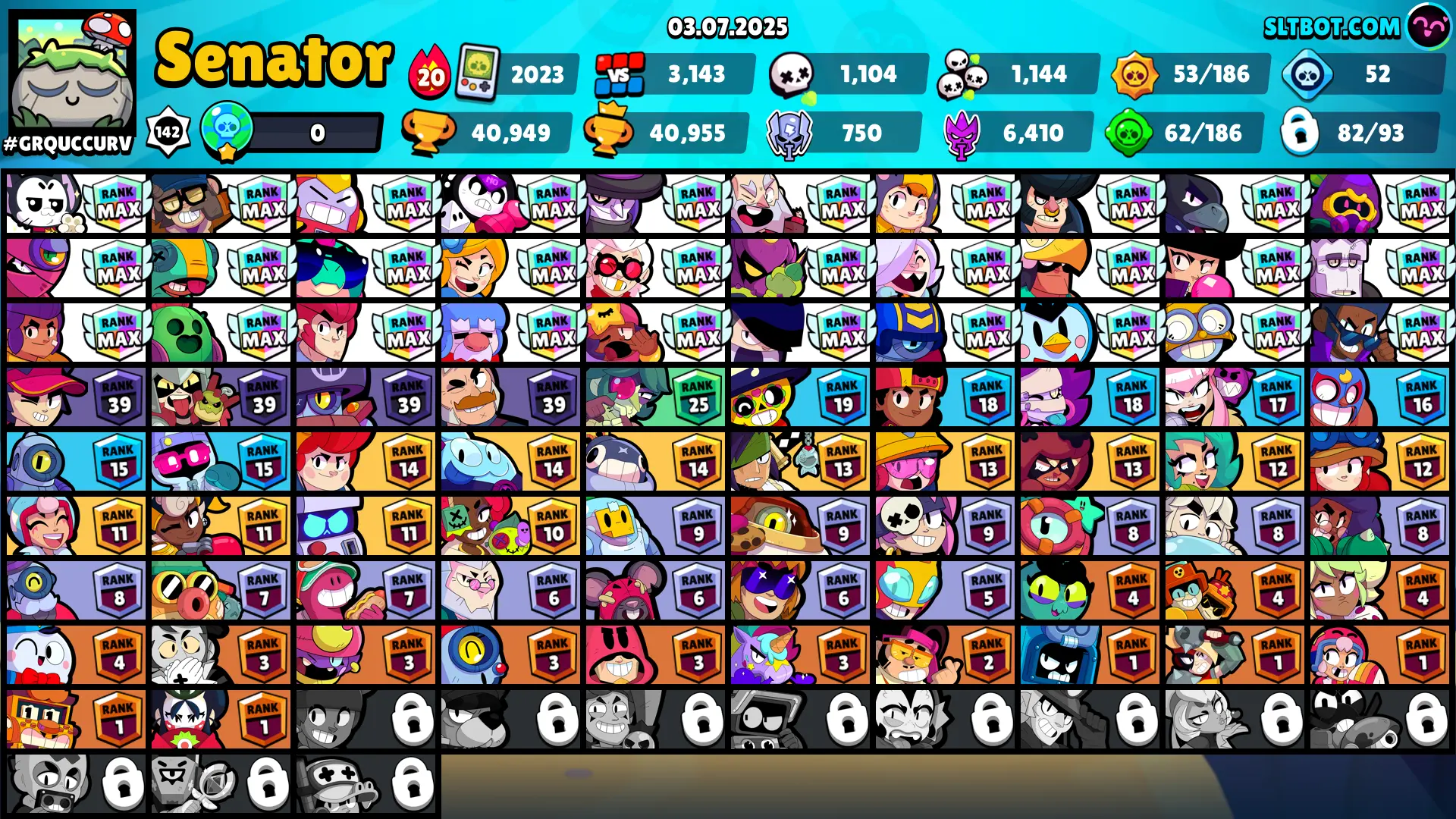 183 SKINS 💯 SKELETAL SURGE 🧡 30 MAX RANKED🩸 40.955 TROPHIES 🏆 82 BRAWLERS 🐼 11 HYPERCHARGED 🩸 20 MAX BRAWLERS 💛 BANANAS COLT 🧡 BIKER CARL 🧡 ODIN CORDELIUS 🧡 PIANO 8-BIT 🧡 IMPIE COLETTE 💯