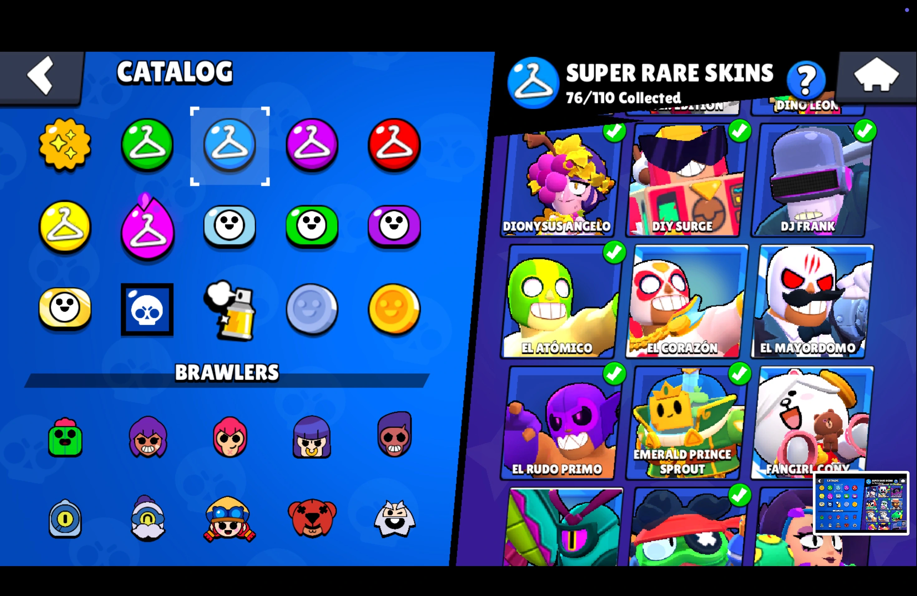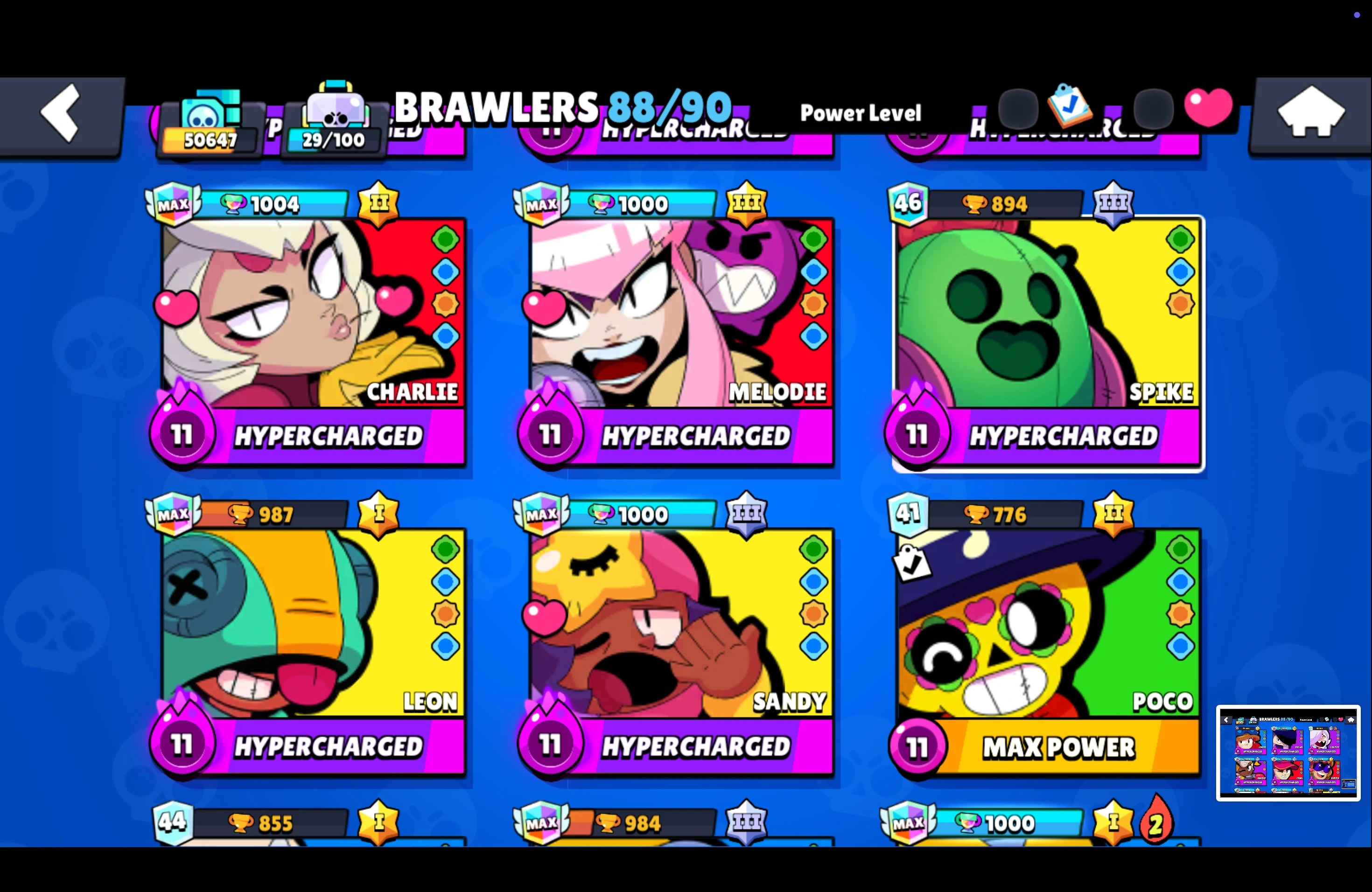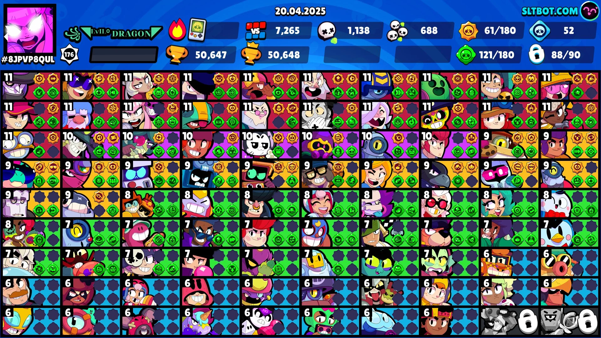 189 SKINS â 50.600 TROPHY â 88 BRAWLERS â 21 MAX â 11 HYPERCHARGED â DEMON OTIS â HEADLESS RIDER STU â PIANO 8-BIT â DIY SURGE â FANGUARD FANG â DARK LORD SPIKE â LEGENDARY â LEON