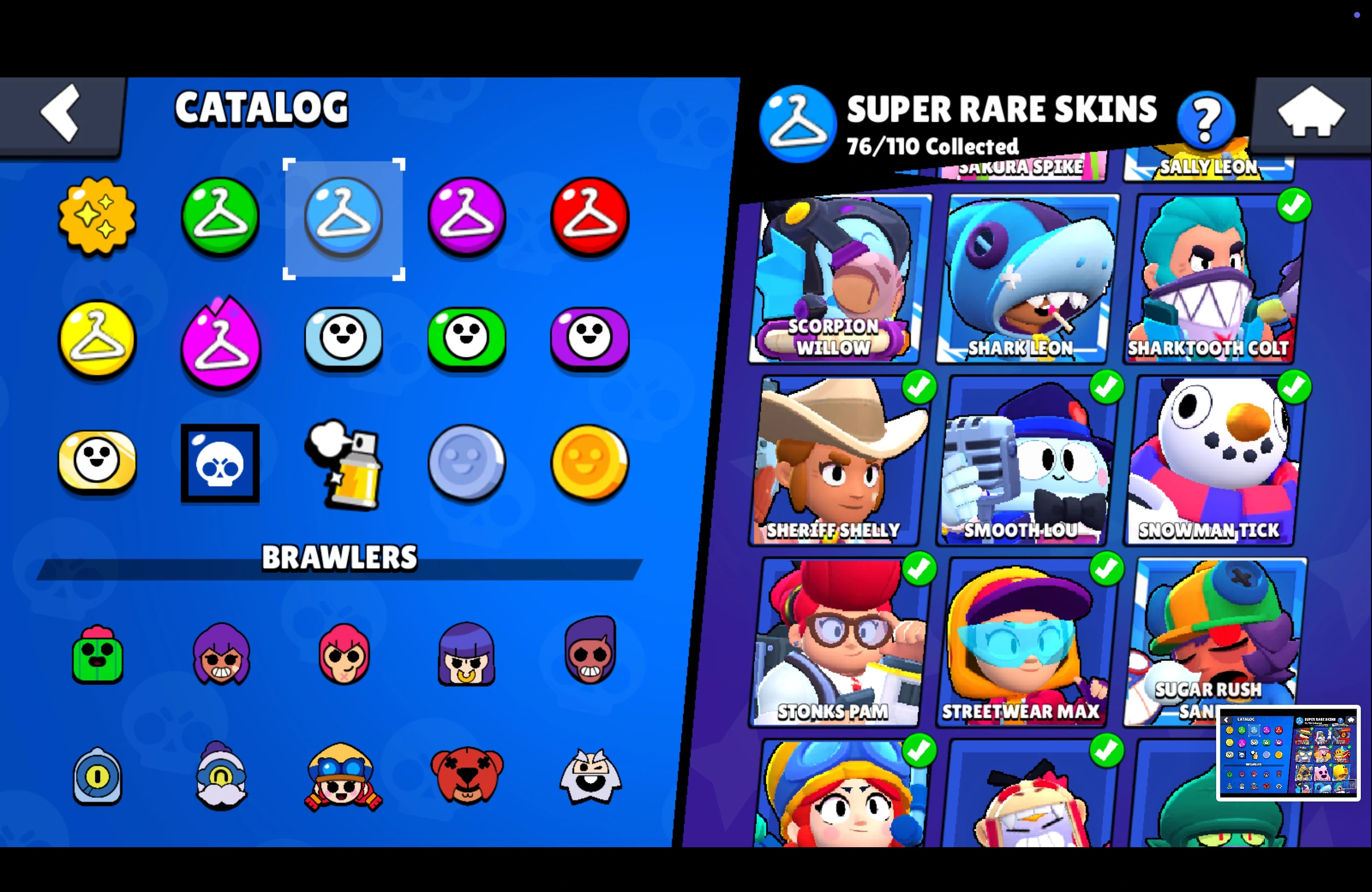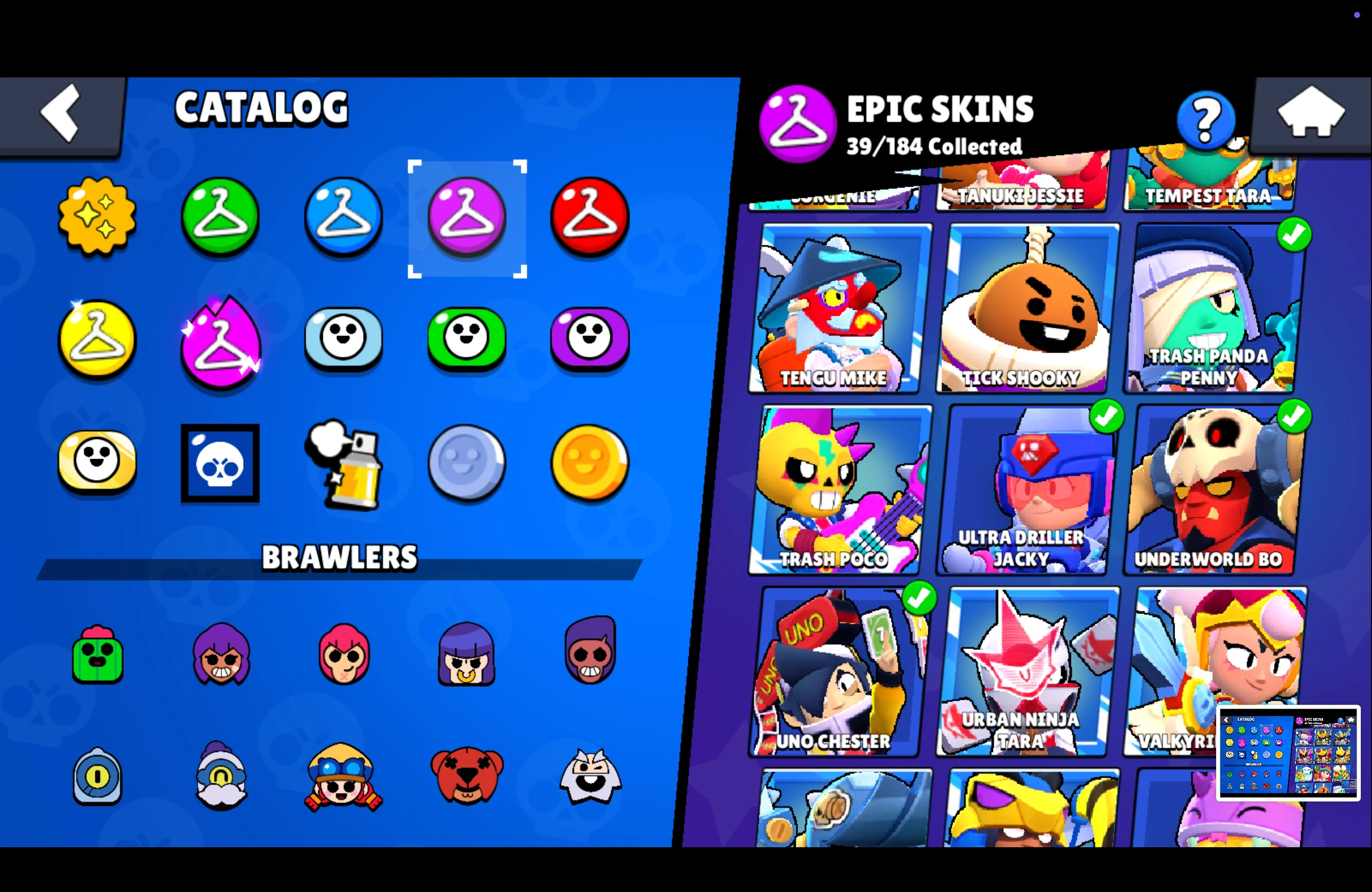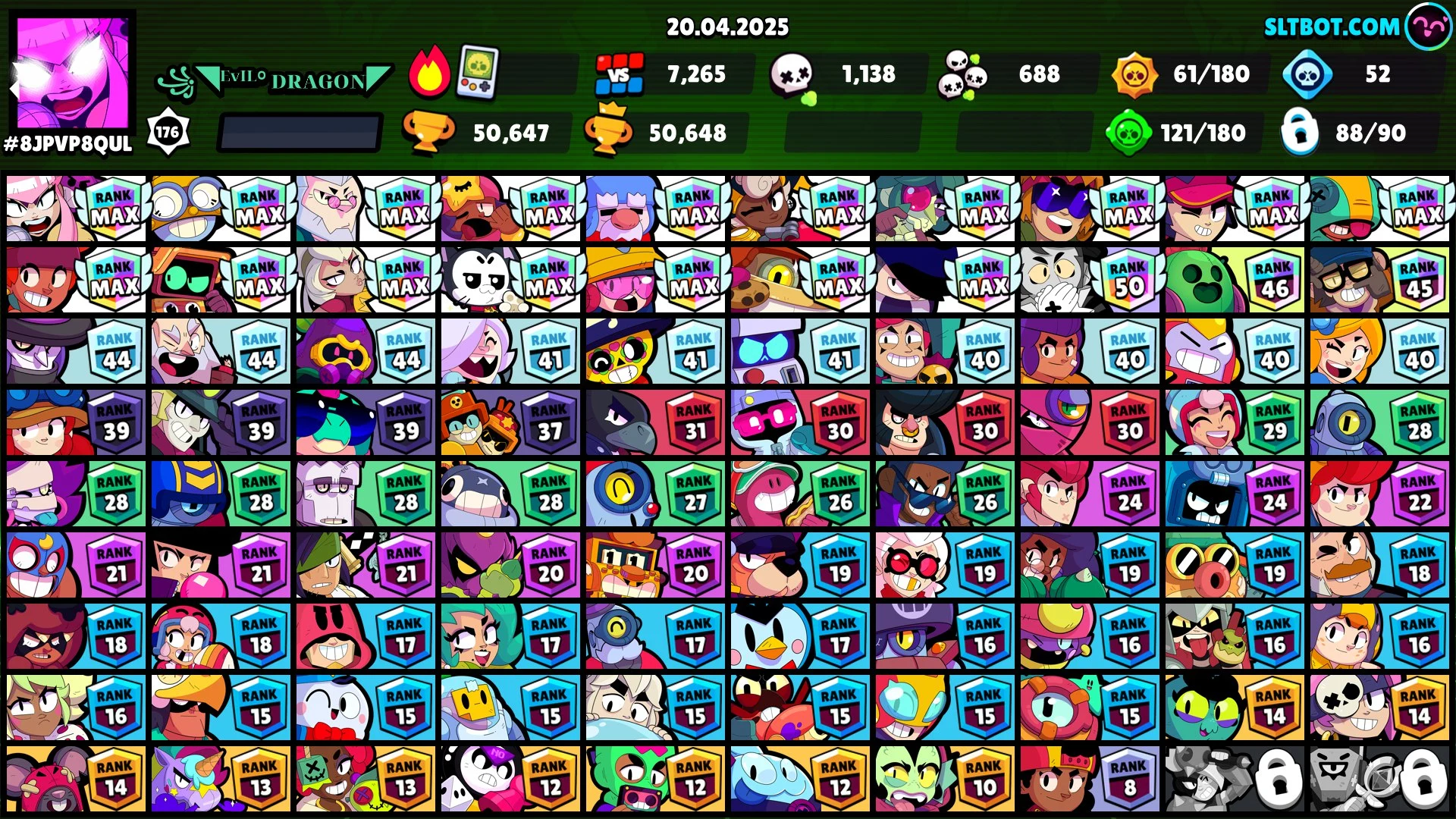 189 SKINS â 50.600 TROPHY â 88 BRAWLERS â 21 MAX â 11 HYPERCHARGED â DEMON OTIS â HEADLESS RIDER STU â PIANO 8-BIT â DIY SURGE â FANGUARD FANG â DARK LORD SPIKE â LEGENDARY â LEON