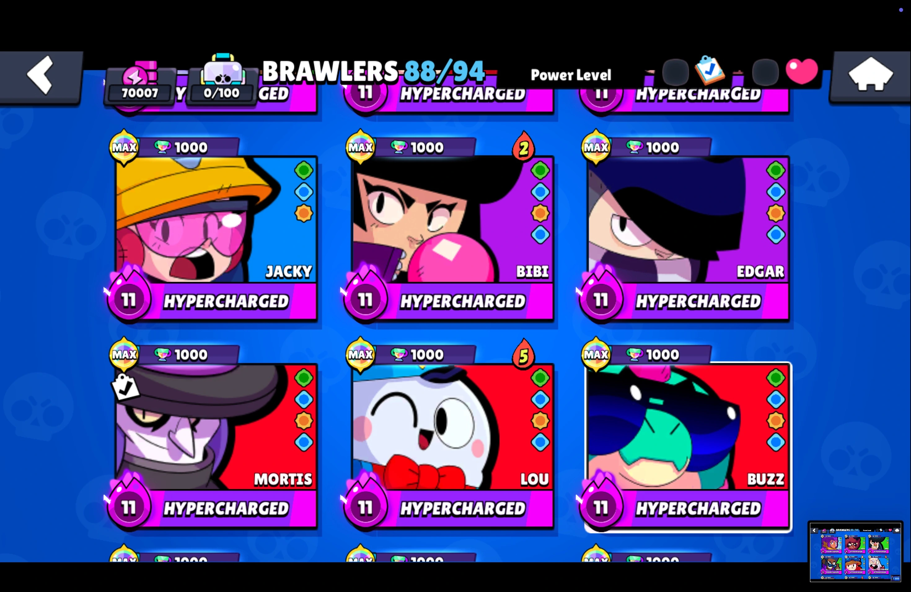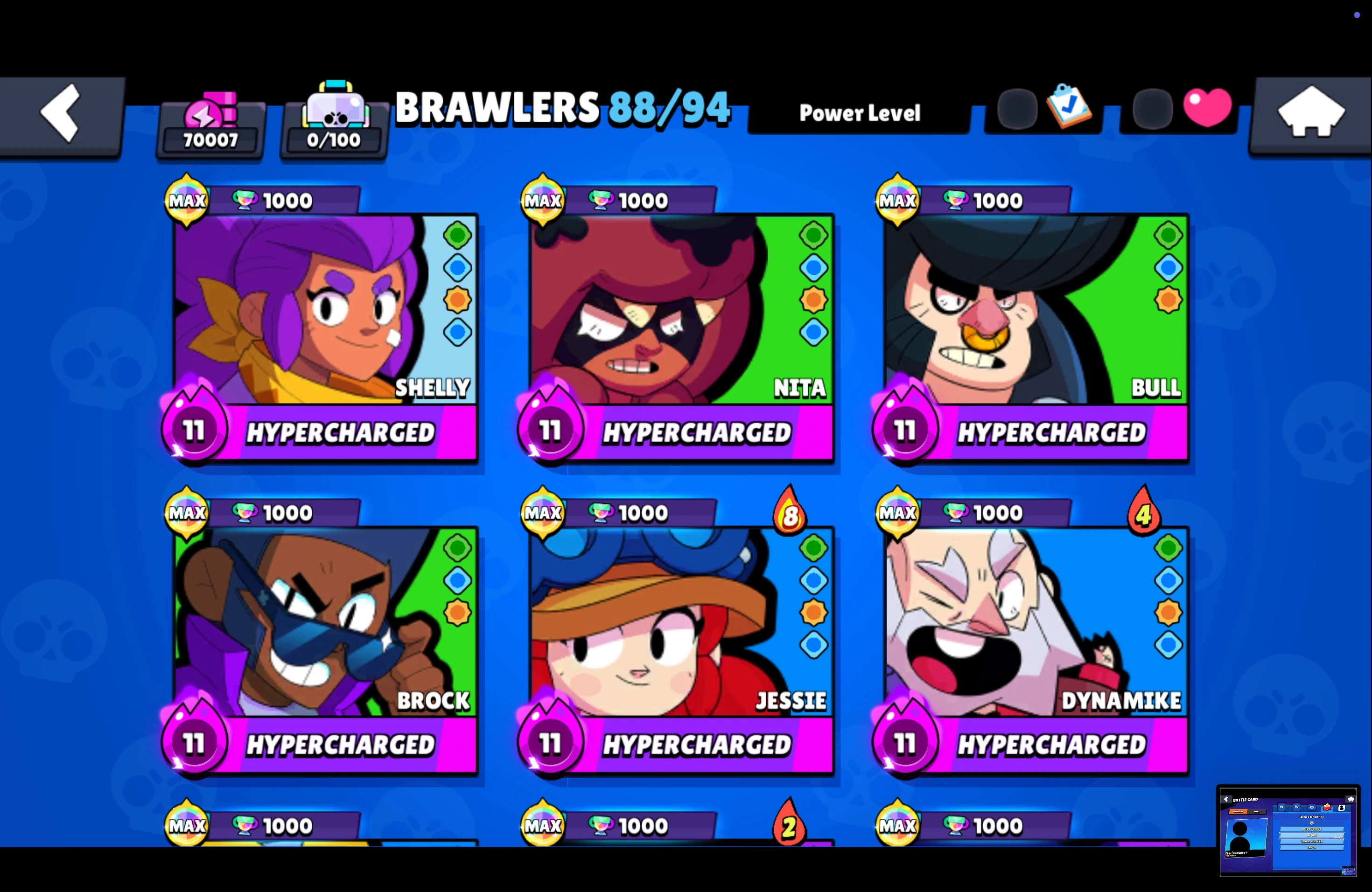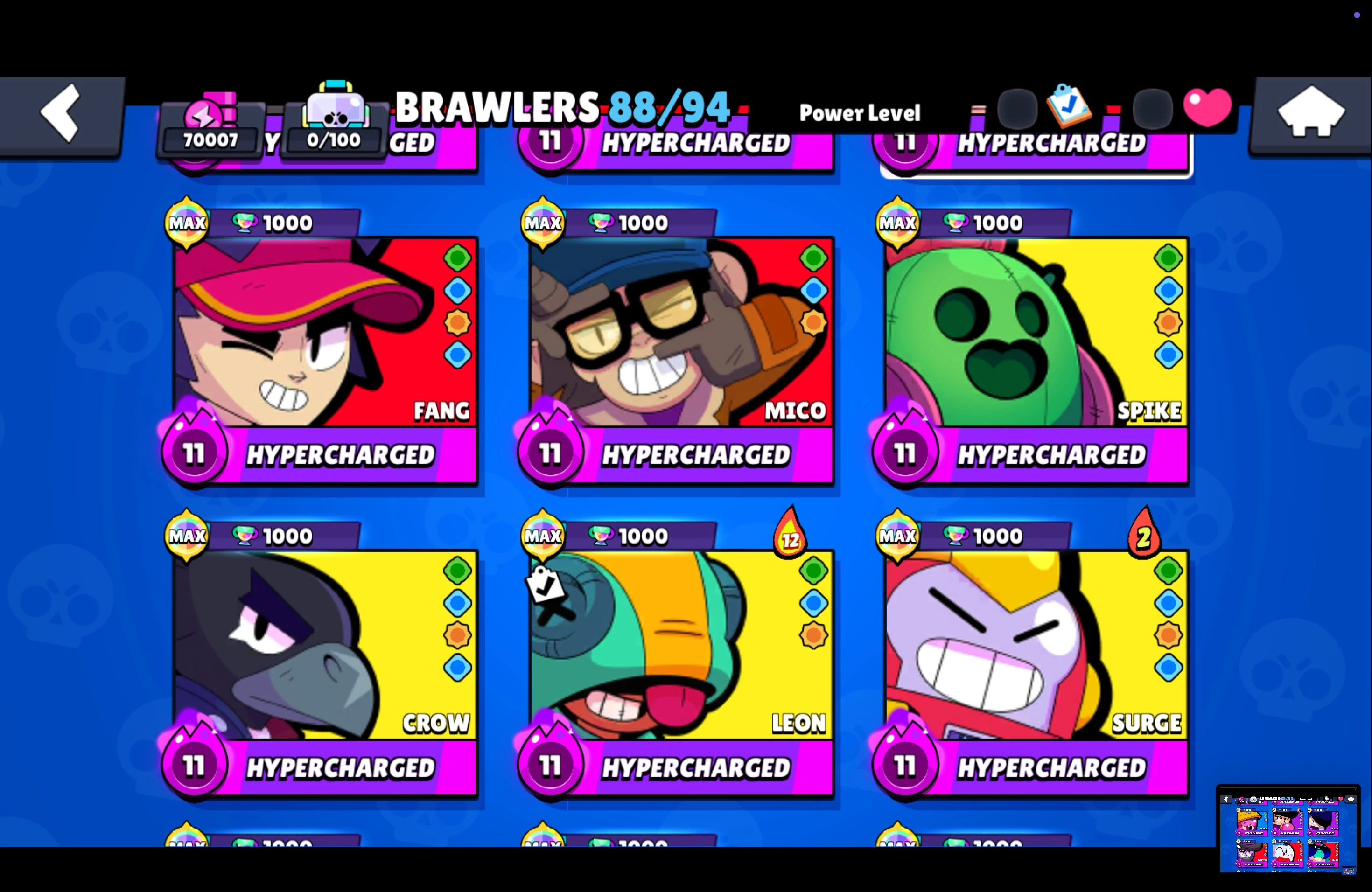 196 SKINS â 70.000 TROPHY â 88 BRAWLERS â 22 MAX â 18 HYPERCHARGED â BORN BAD BUZZ â MECHAGODZILLA NITA â CRASH TEST DARRYL â KONG SURGE â OCTO FANG â SPIKE â LEGENDARY â LEON