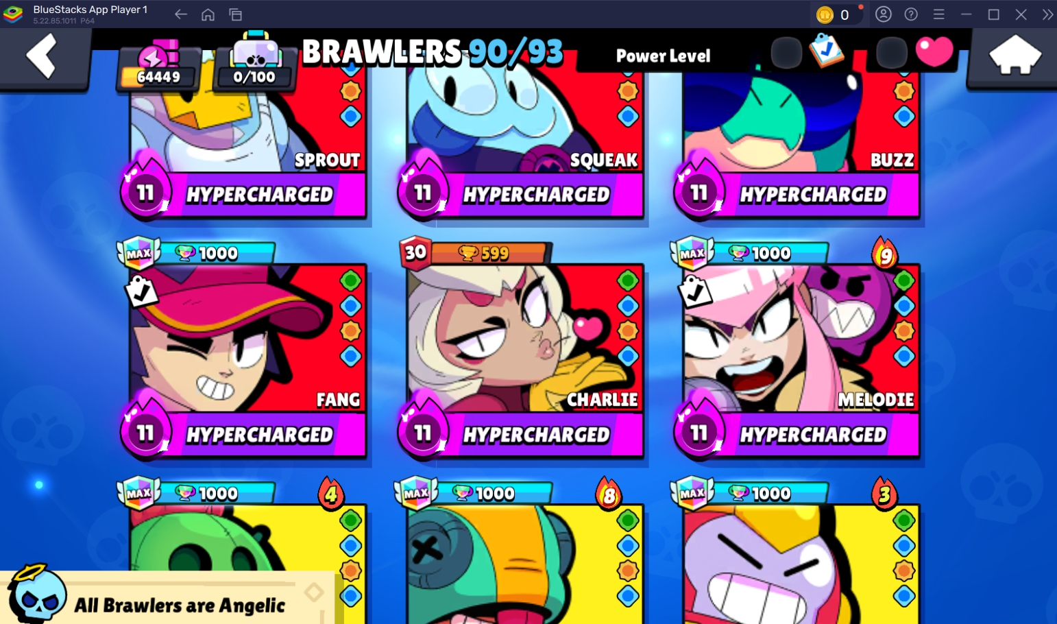 196 SKINS 💯 PIN MATCHERINO 🧡 PIN 11.11 🧡 64.449 TROPHIES 🏆 90 BRAWLERS 🐼 28 HYPERCHARGED 🩸 41 MAX BRAWLERS 💛 SPACE OX BULL 🧡 FINAL BOSS RICO 🧡 NIGHT MECHA CROW 🧡 BANANAS COLT 🧡 INSPECTOR COLETTE 💯