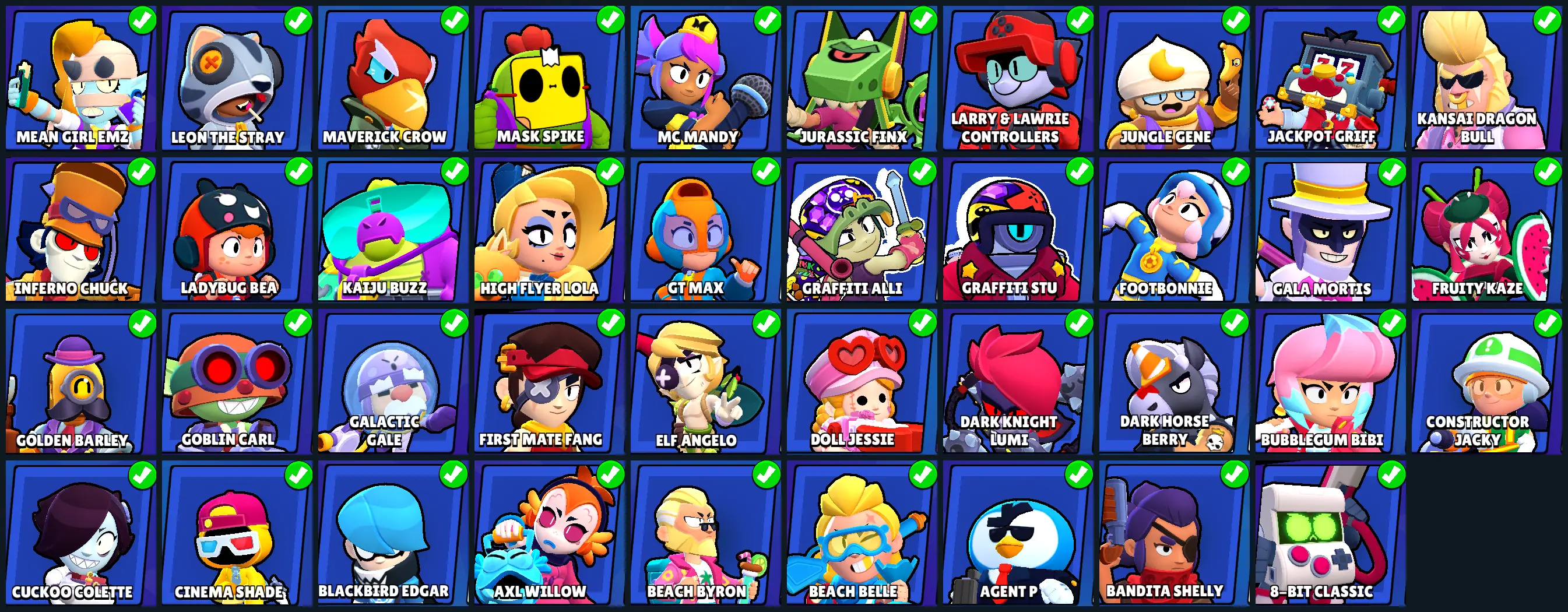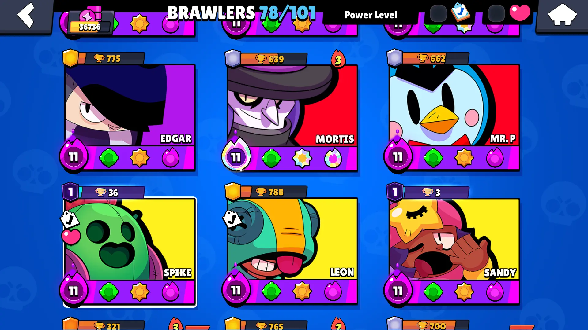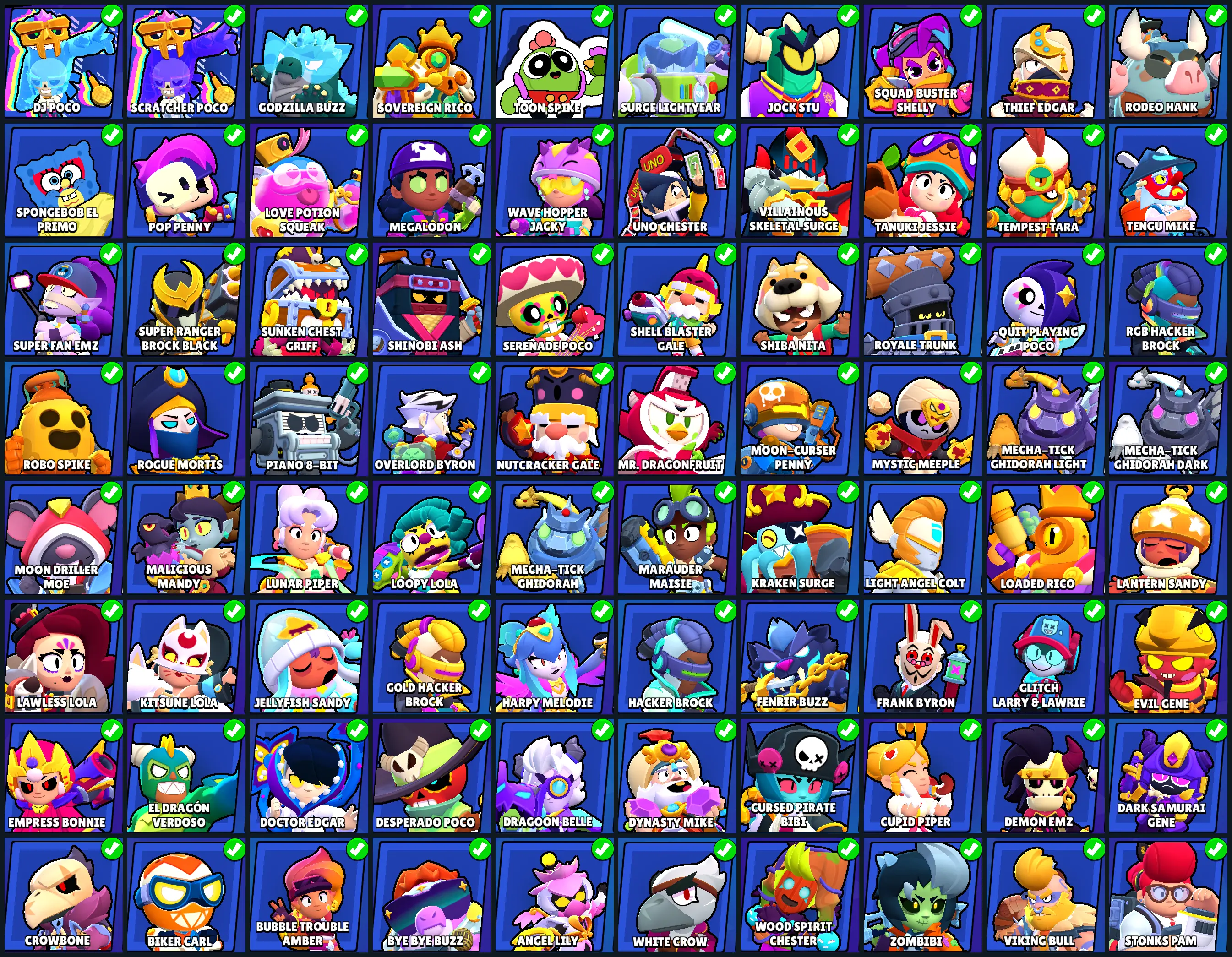 200 SKINS | 36736 TROPHIES | THIEF EDGAR | LAWLESS LOLA | GODZILLA BUZZ | TOON SPIKE | MEGALODON | SURGE LIGHTYEAR | ROGUE MORTIS | RGB HACKER BROCK | HACKER BROCK | SHIBA NITA | RUNNER NITA | SUPER RANGER BROCK BLACK | POP PENNY | CUPID BO | 78 BRAWLERS