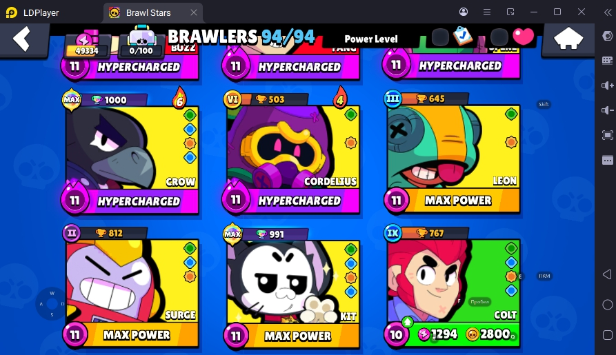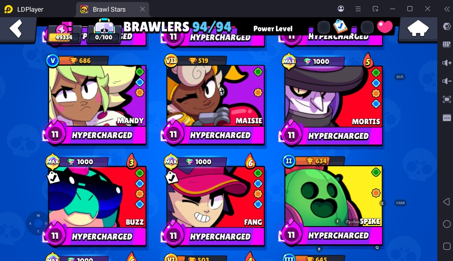 206 SKINS 💯 49.334 TROPHIES 🏆 94 BRAWLERS 🐼 20 HYPERCHARGED 🩸 23 MAX BRAWLERS 💛 REBEL LOLA 🧡 NINJA ASH 🧡 FANGUARD 🧡 CURSED KENJI 🧡 💯