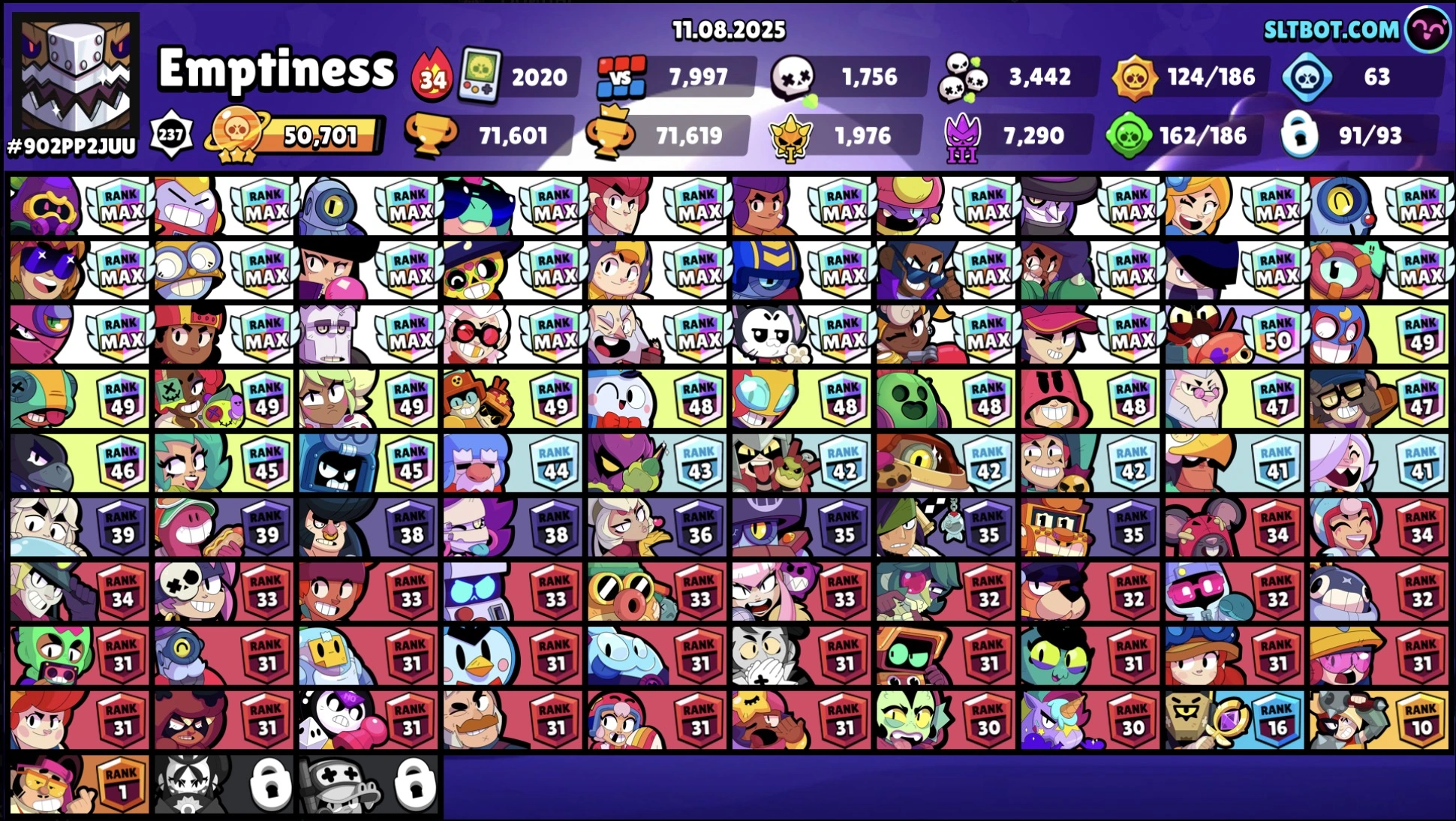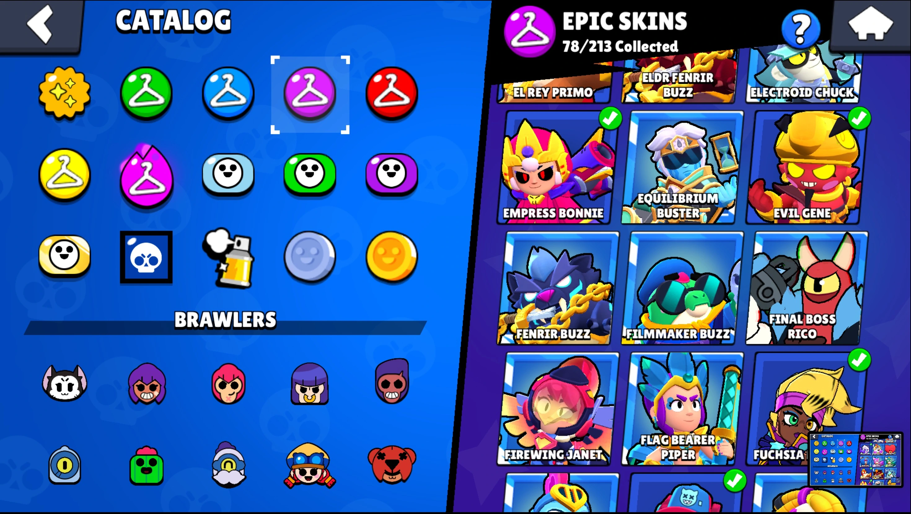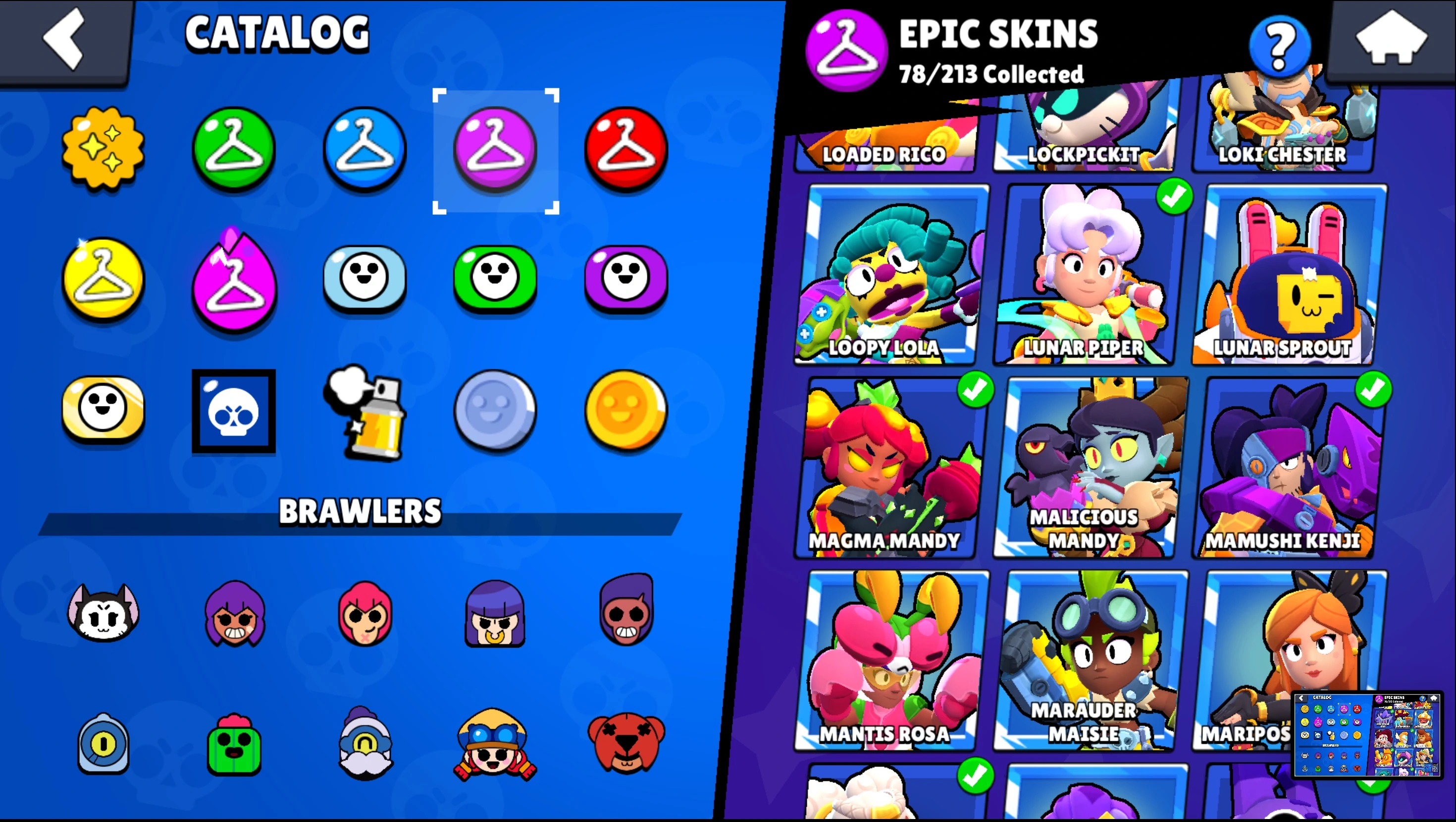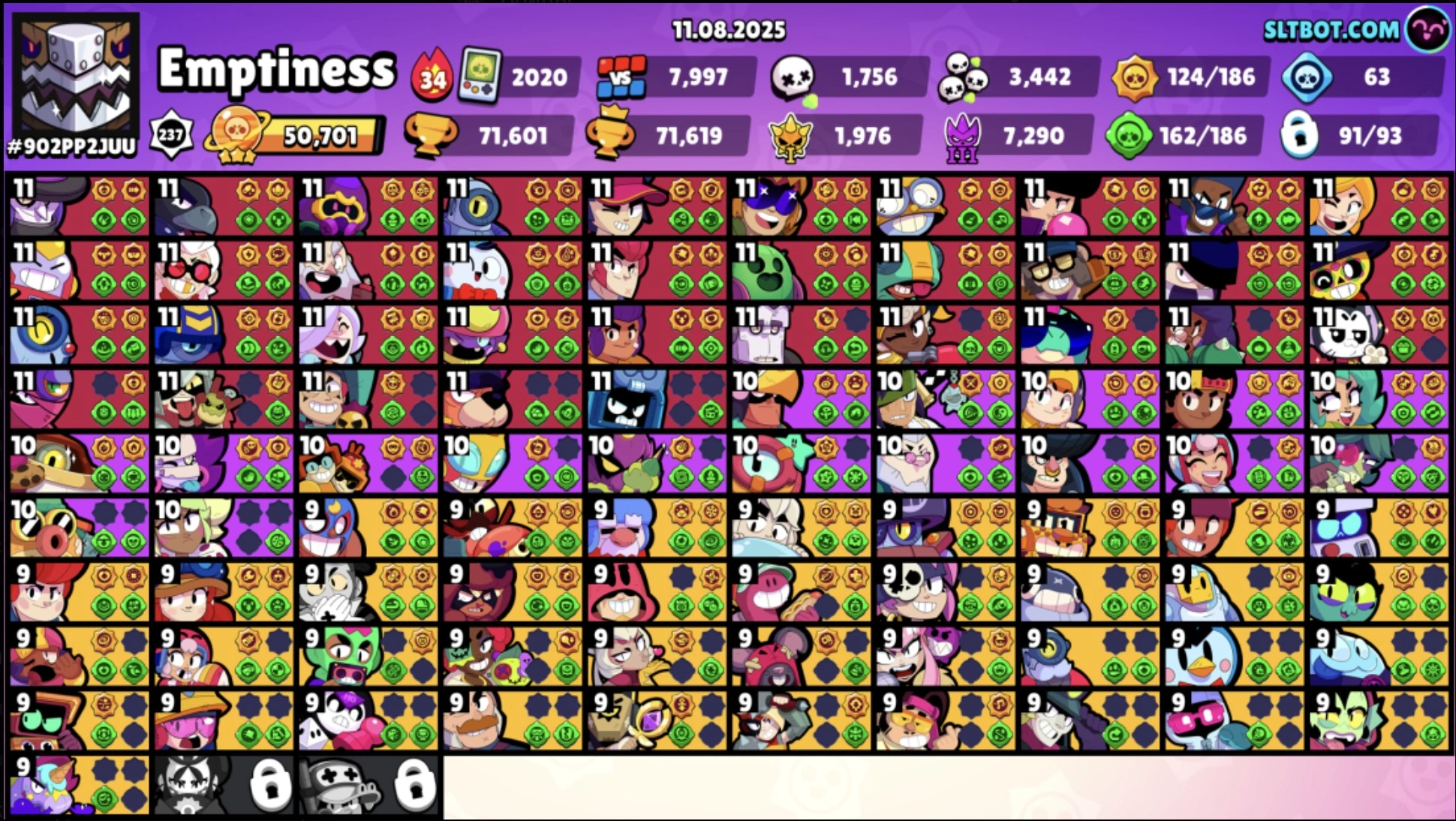 217 SKINS â 71.600 TROPHY â 91 BRAWLERS â 35 MAX â 31 HYPERCHARGED â KITBOXER â LUNAR PIPER â LOADED RICO â SURGENIE â FIRST MATE FANG â DARK LORD SPIKE â LEGENDARY â LEON
