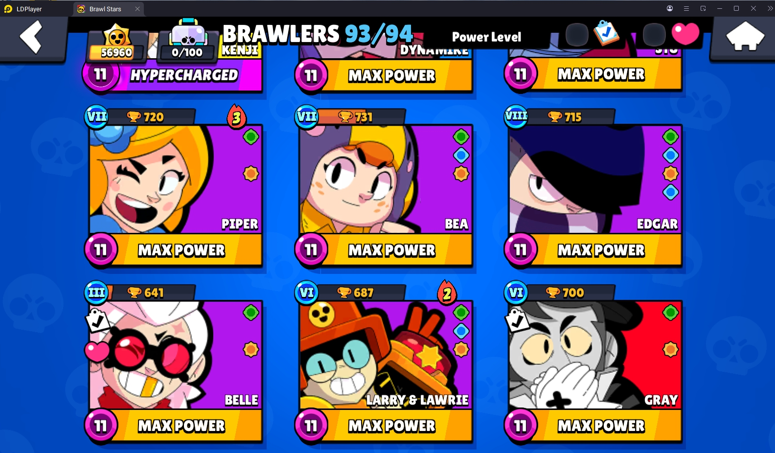 219 SKINS 💯 56.960 TROPHIES 🏆 93 BRAWLERS 🐼 16 HYPERCHARGED 🩸 30 MAX BRAWLERS 💛 FURIOUS FANG 🧡 CORSAIR COLT 🧡 THOR BIBI 🧡 WHITE WOLF LEON 🧡 ODIN CORDELIUS 💯
