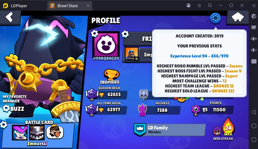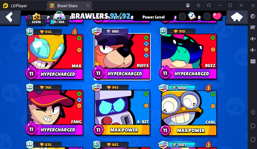 221 SKINS 💯 RONIN RUFFS 🧡 62.616 TROPHIES 🏆 91 BRAWLERS 🐼 16 HYPERCHARGED 🩸 24 MAX BRAWLERS 💛 CURSED KENJI !MKG0658