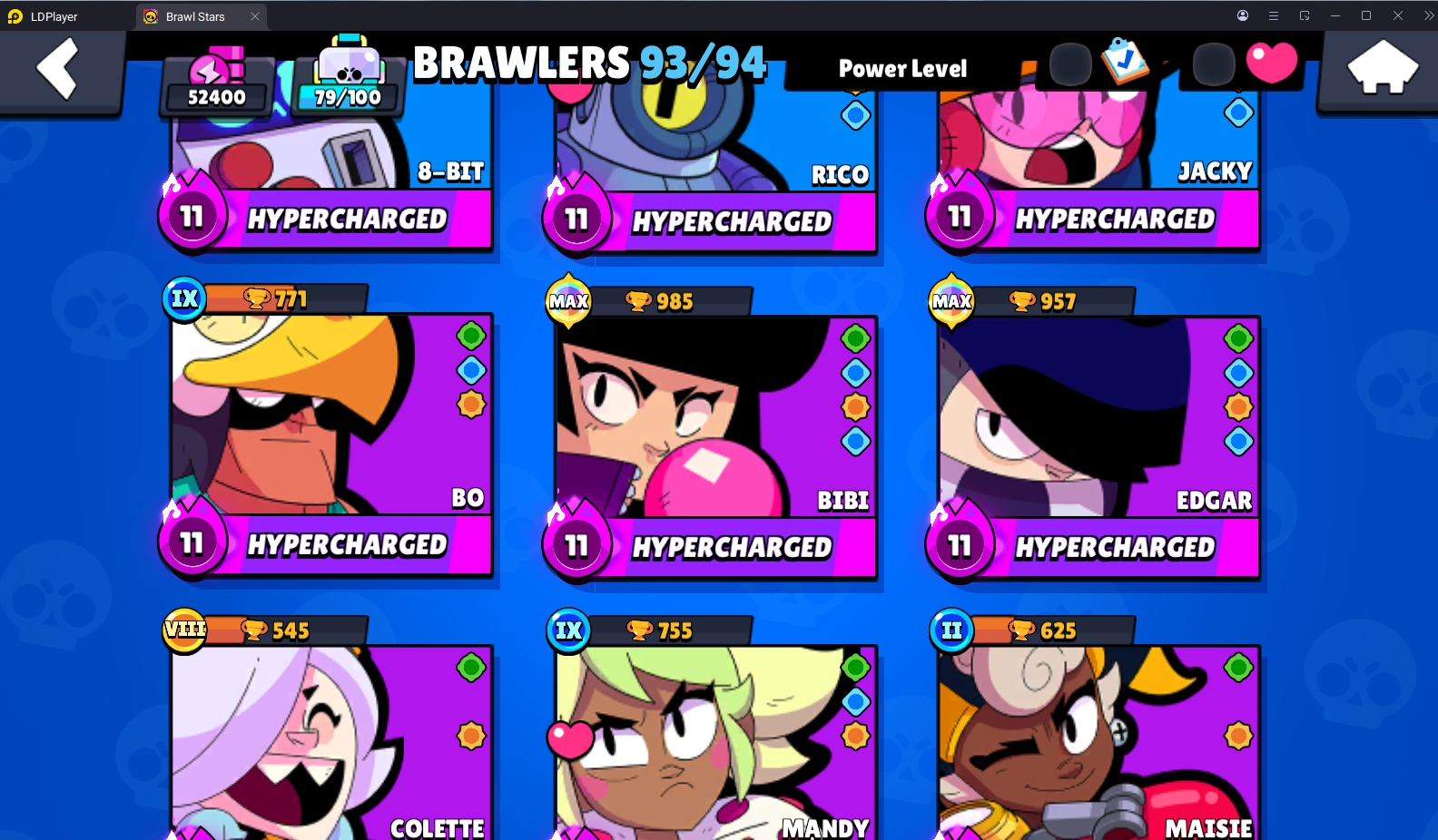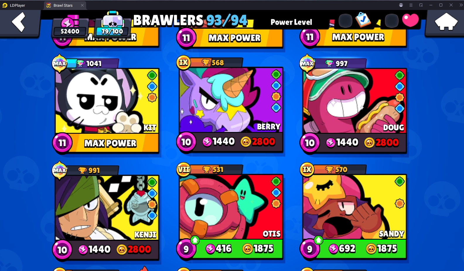 223 SKINS 💯 52.400 TROPHIES 🏆 93 BRAWLERS 🐼 25 HYPERCHARGED 🩸 31 MAX BRAWLERS 💛 MECHA MORTIS 🧡 CORSAIR COLT 🧡 ODIN CORDELIUS 🧡 KABOCHA FANG 🧡 YETI SAM 💯