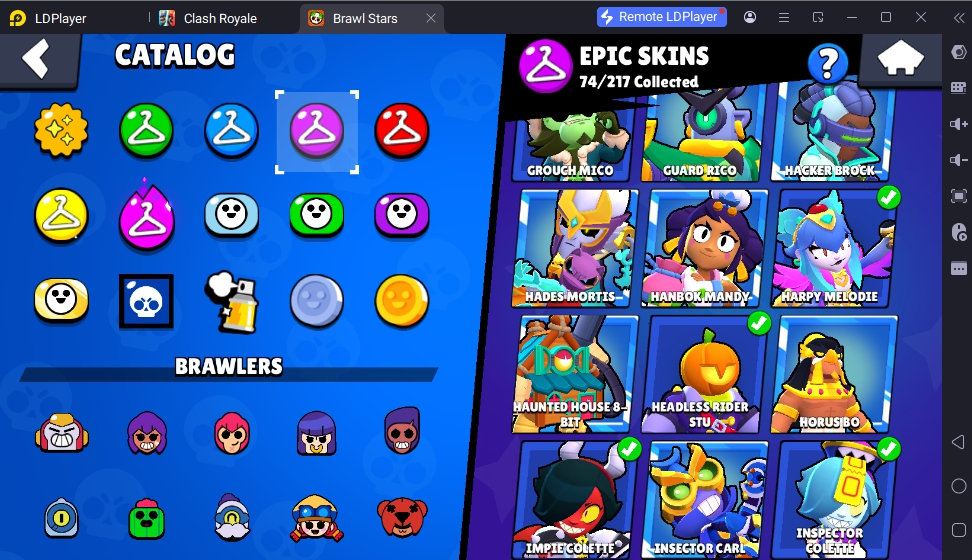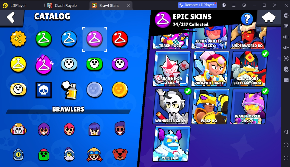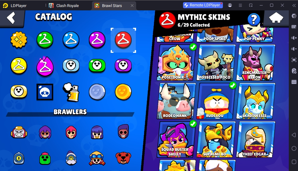 224 SKINS 💯 70.295 TROPHIES 🏆 92 BRAWLERS 🐼 30 HYPERCHARGED 🩸 34 MAX BRAWLERS 💛 DEMON MORTIS 🧡 RUDE LOU 🧡 RONIN RUFFS 🧡 VILLAINOUS SKELETAL SURGE 🧡 WANDERER GRAY 💯