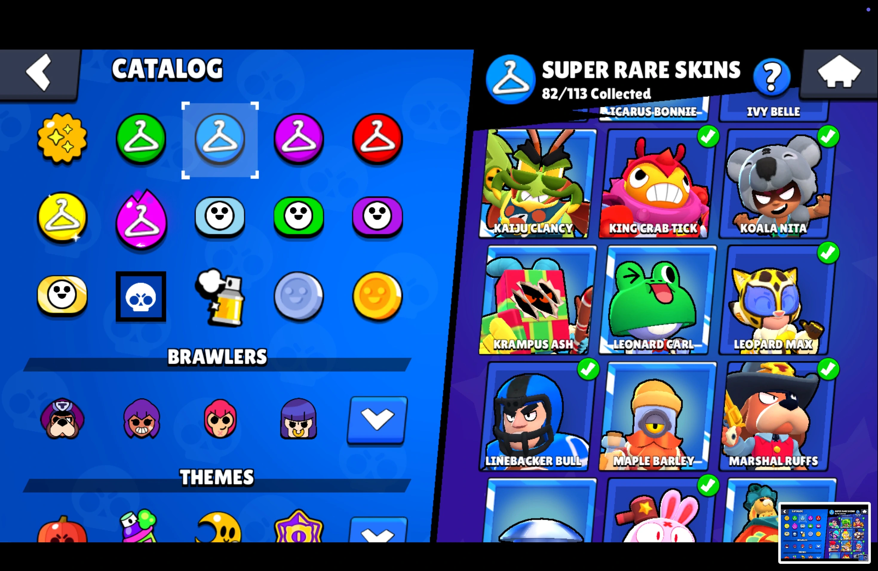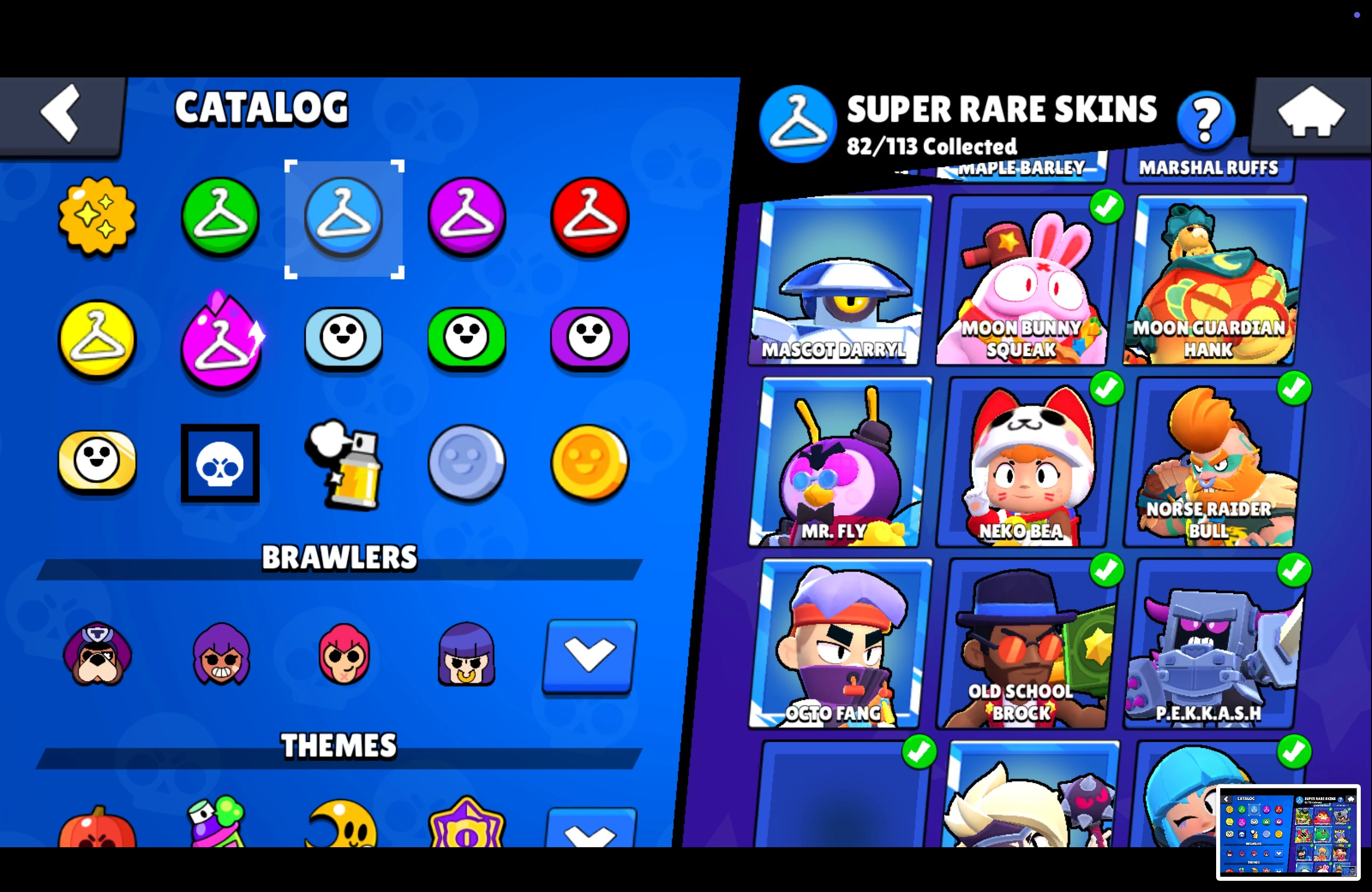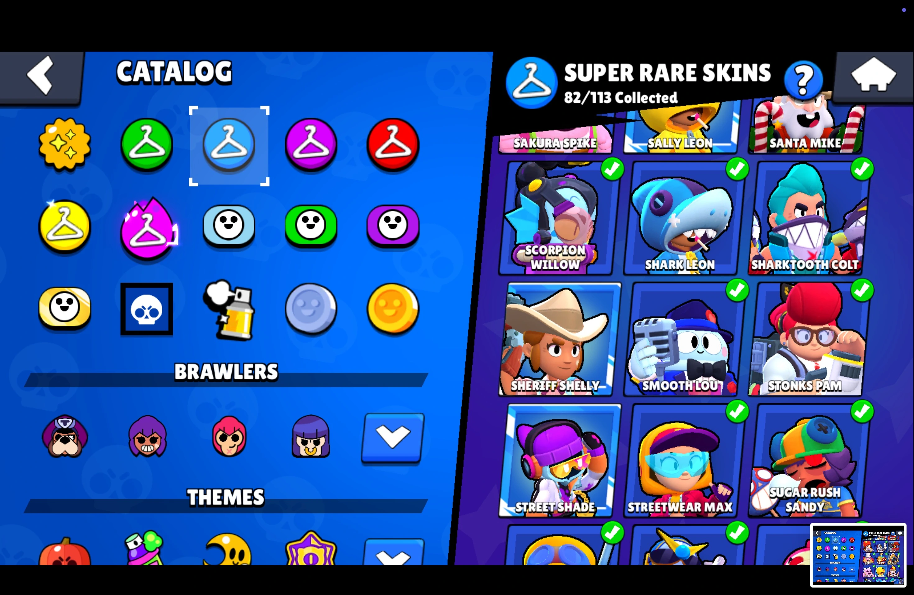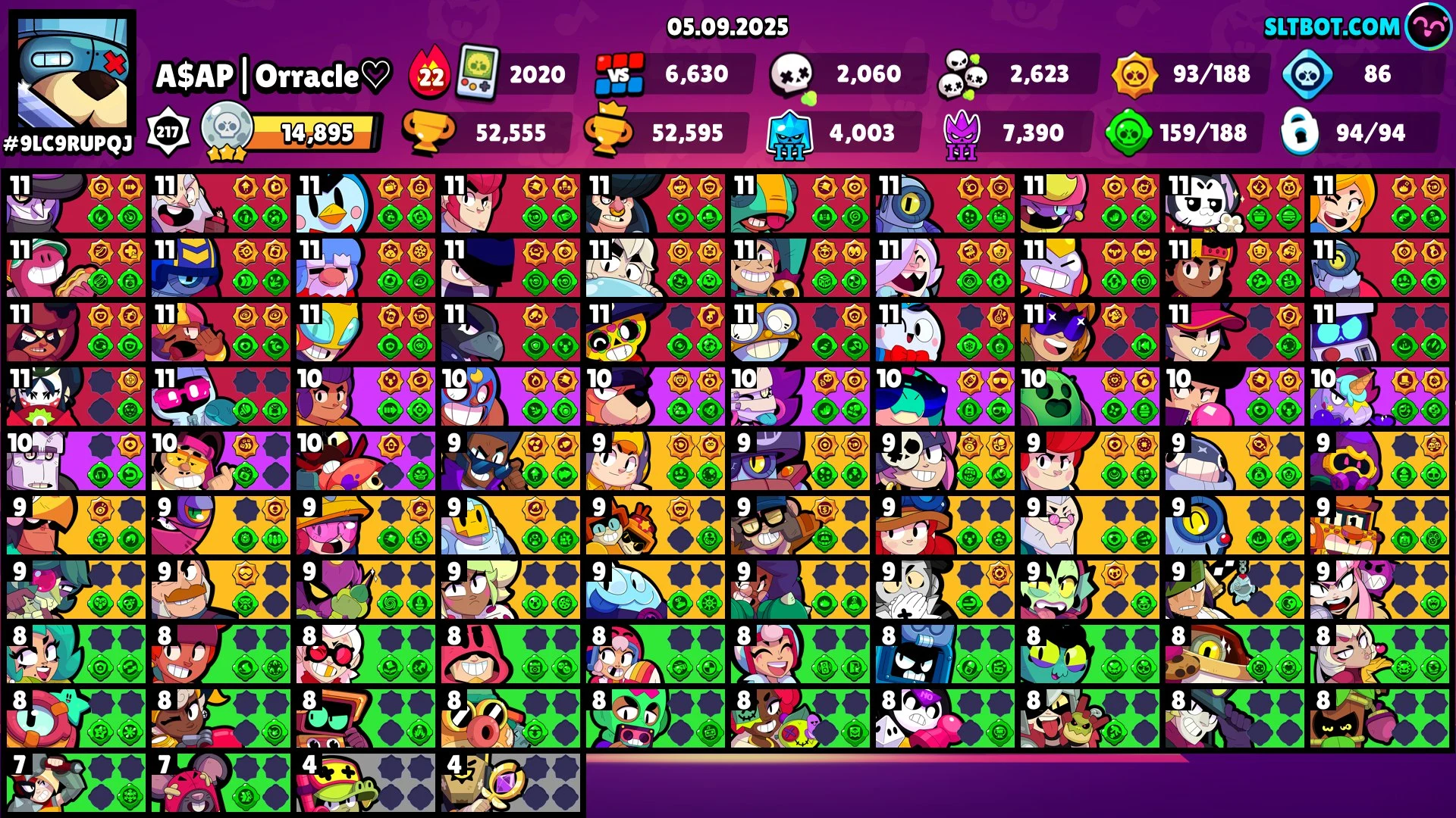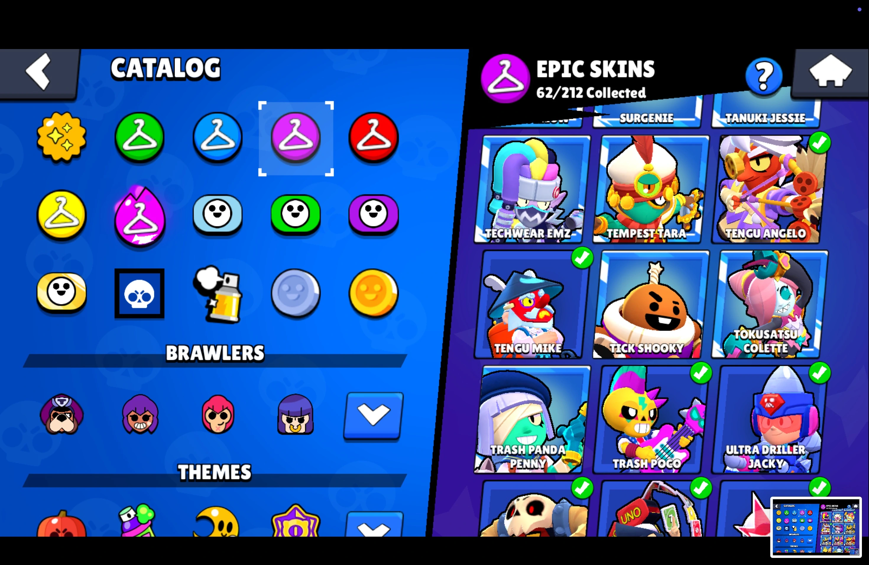 228 SKINS â 52.600 TROPHY â 94 BRAWLERS â 32 MAX â 16 HYPERCHARGED â RONIN RUFFS â CESAR SAM â CORSAIR COLT â MECHA PALADIN SURGE â FANGUARD FANG â POOP SPIKE â LEGENDARY â LEON