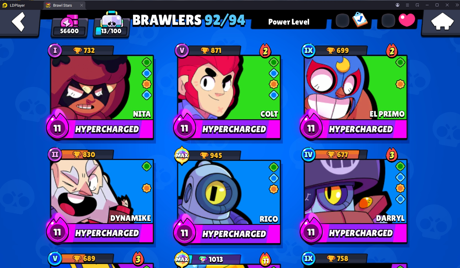 255 SKINS 💯 56.600 TROPHIES 🏆 92 BRAWLERS 🐼 27 HYPERCHARGED 🩸 36 MAX BRAWLERS 💛 BORN BAD BUZZ 🧡 CORSAIR COLT 🧡 SPACE OX BULL 🧡 TRASH POCO 🧡 WHITE WOLF LEON 💯