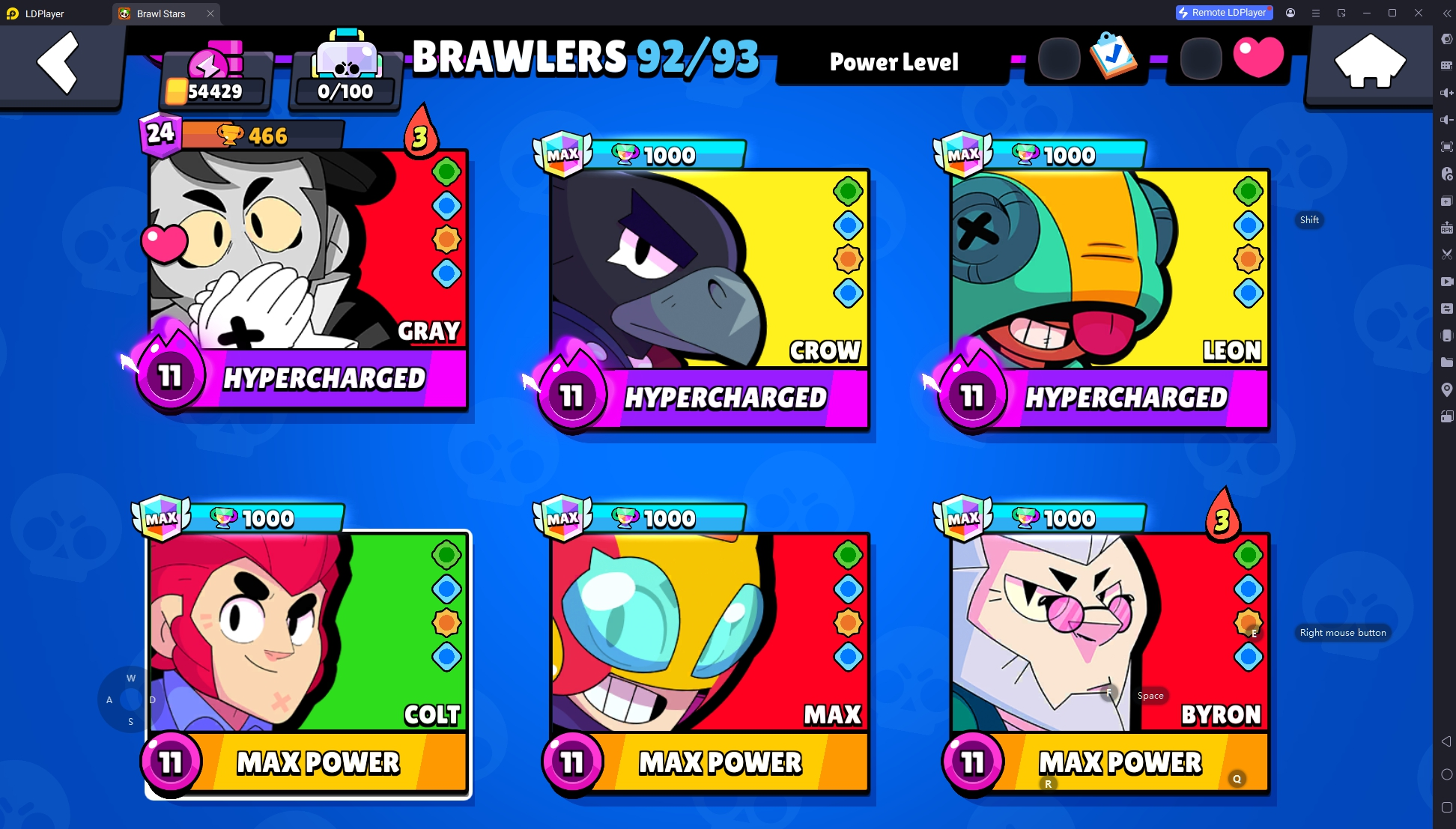 258 SKINS 💯 54.429 CUPS 🏆 92 BRAWLERS 🐼 15 HYPERCHARGED 🩸 21 MAX BRAWLERS 💛 GAMER BIBI ❤️ LUNAR JANET ❤️ INSPECTOR COLETTE ❤️ RADIAN LARRY ❤️ ROBO SPIKE 💯