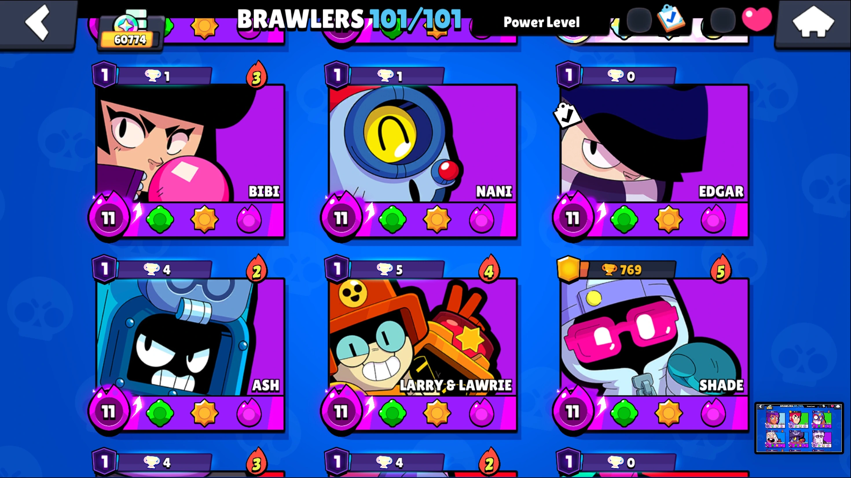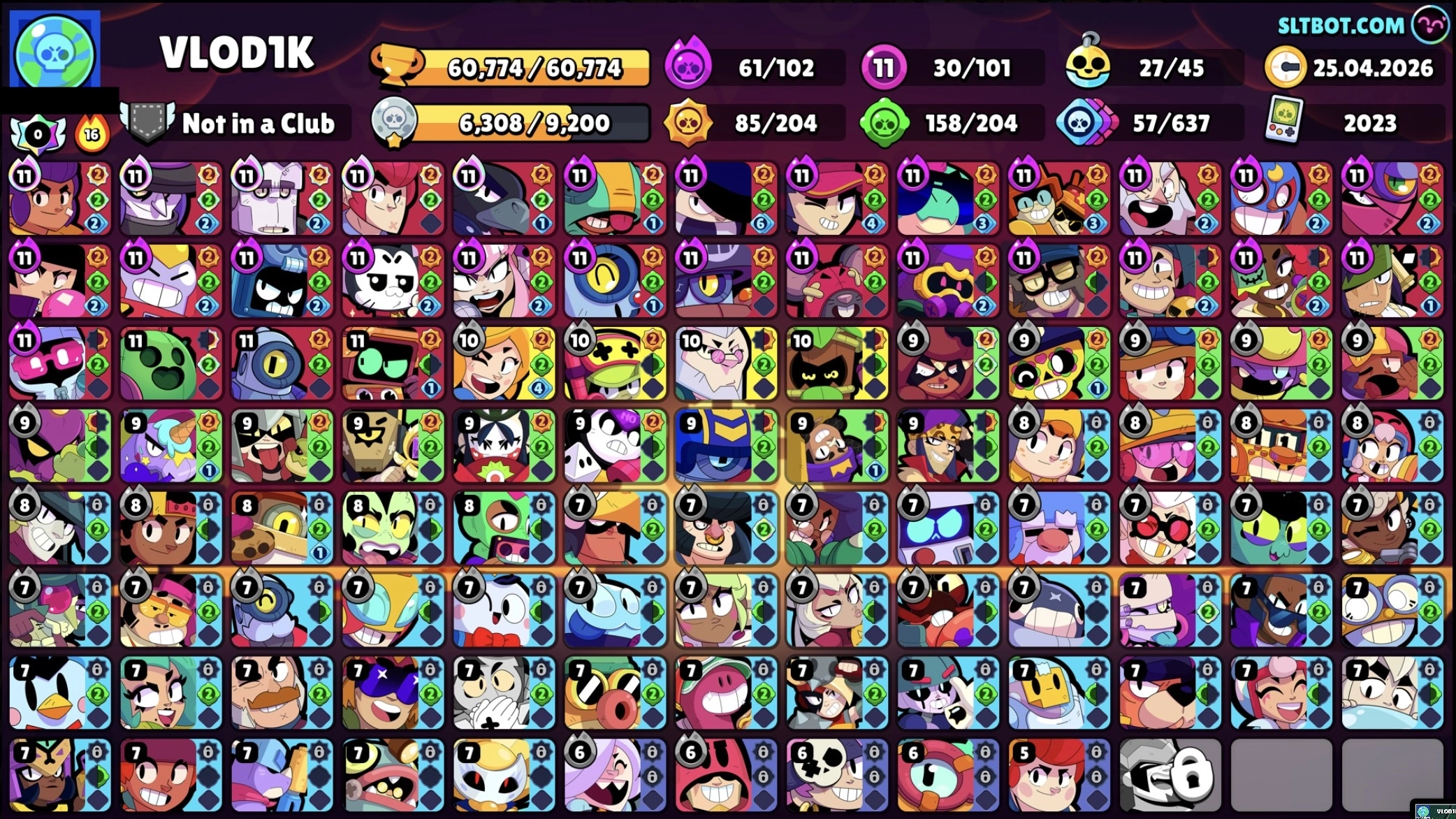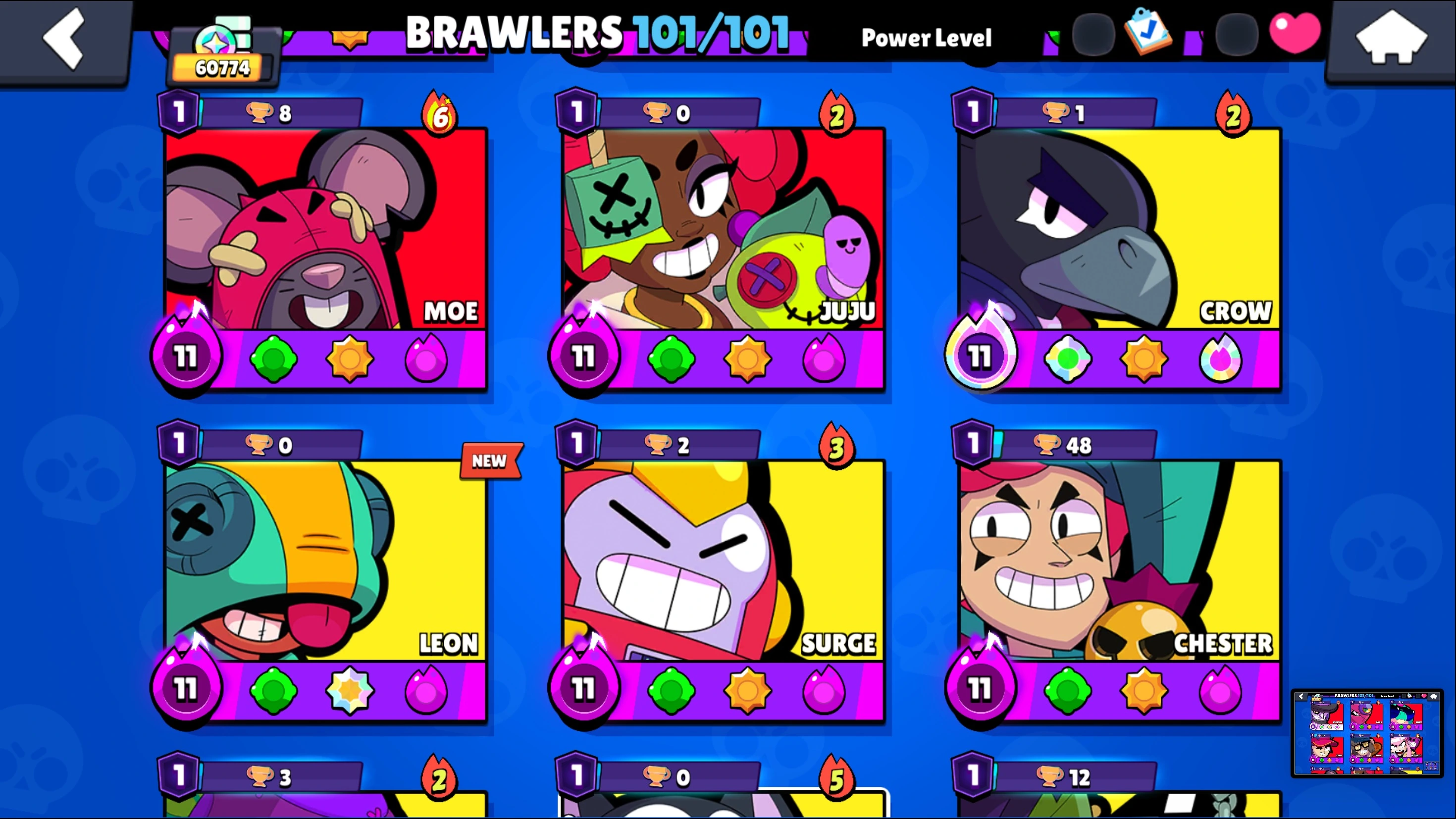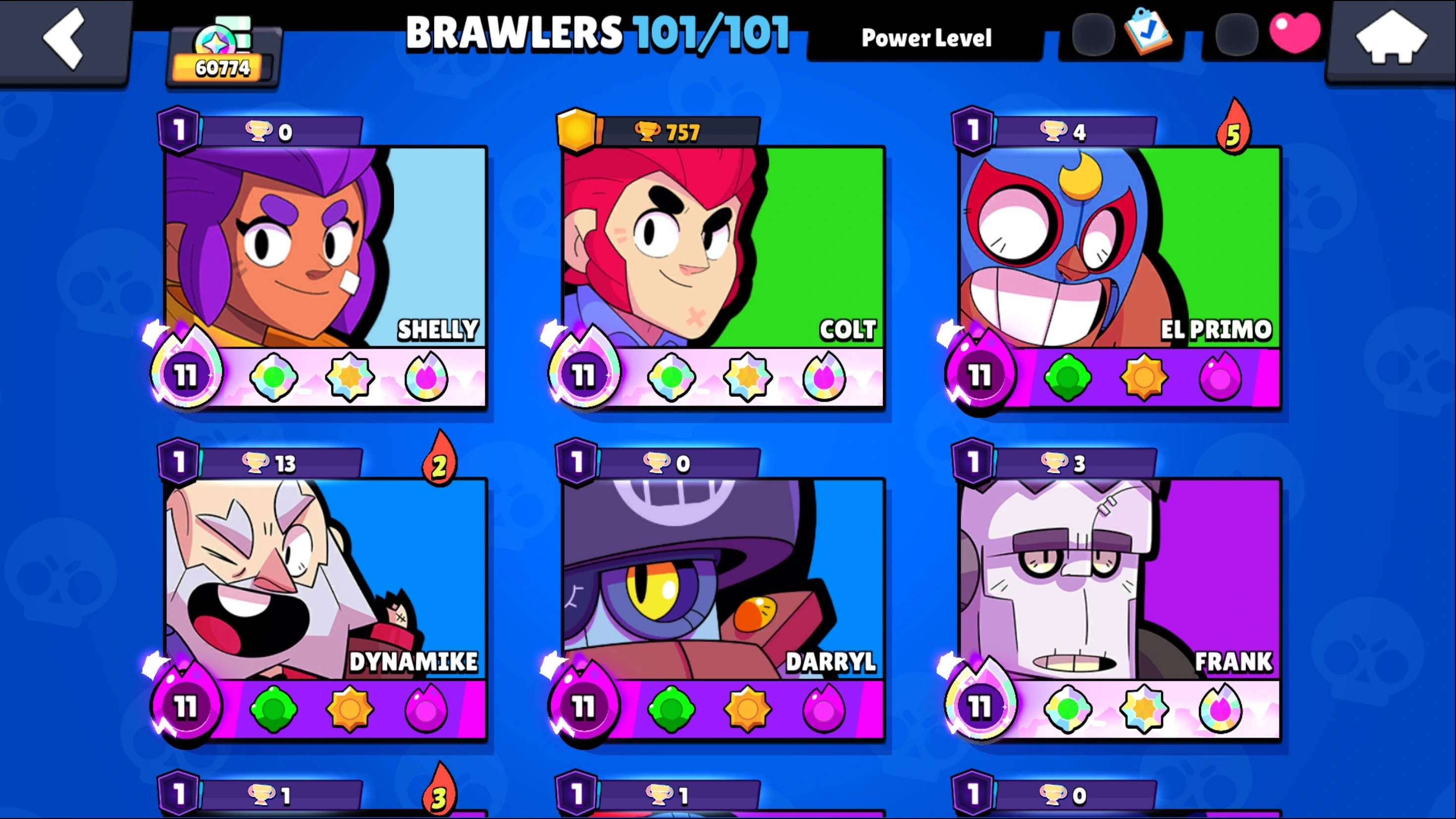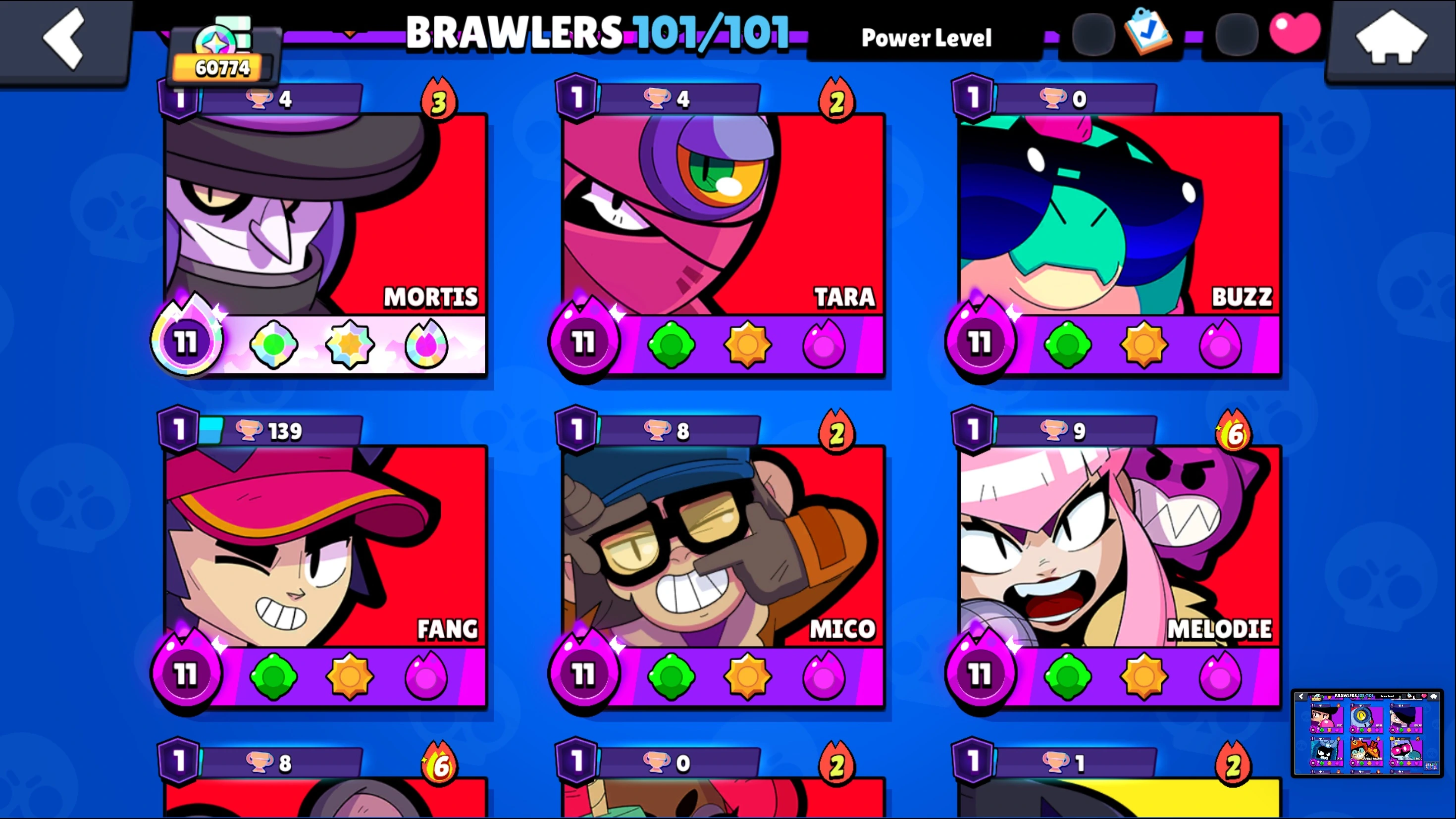 287 SKINS ⭐ 60.800 TROPHY ⭐ 101 BRAWLERS ⭐ 27 HYPERCHARGED ⭐ 30 MAXED BRAWLERS ⭐ 25 PRESTIGE ⭐ 27 BUFFIES ⭐ KITBOXER ⭐ IMPIE COLETTE ⭐ MECHA MORTIS ⭐ POOP SPIKE ⭐ CUPID PIPER ⭐ LEGENDARY ⭐ 60K