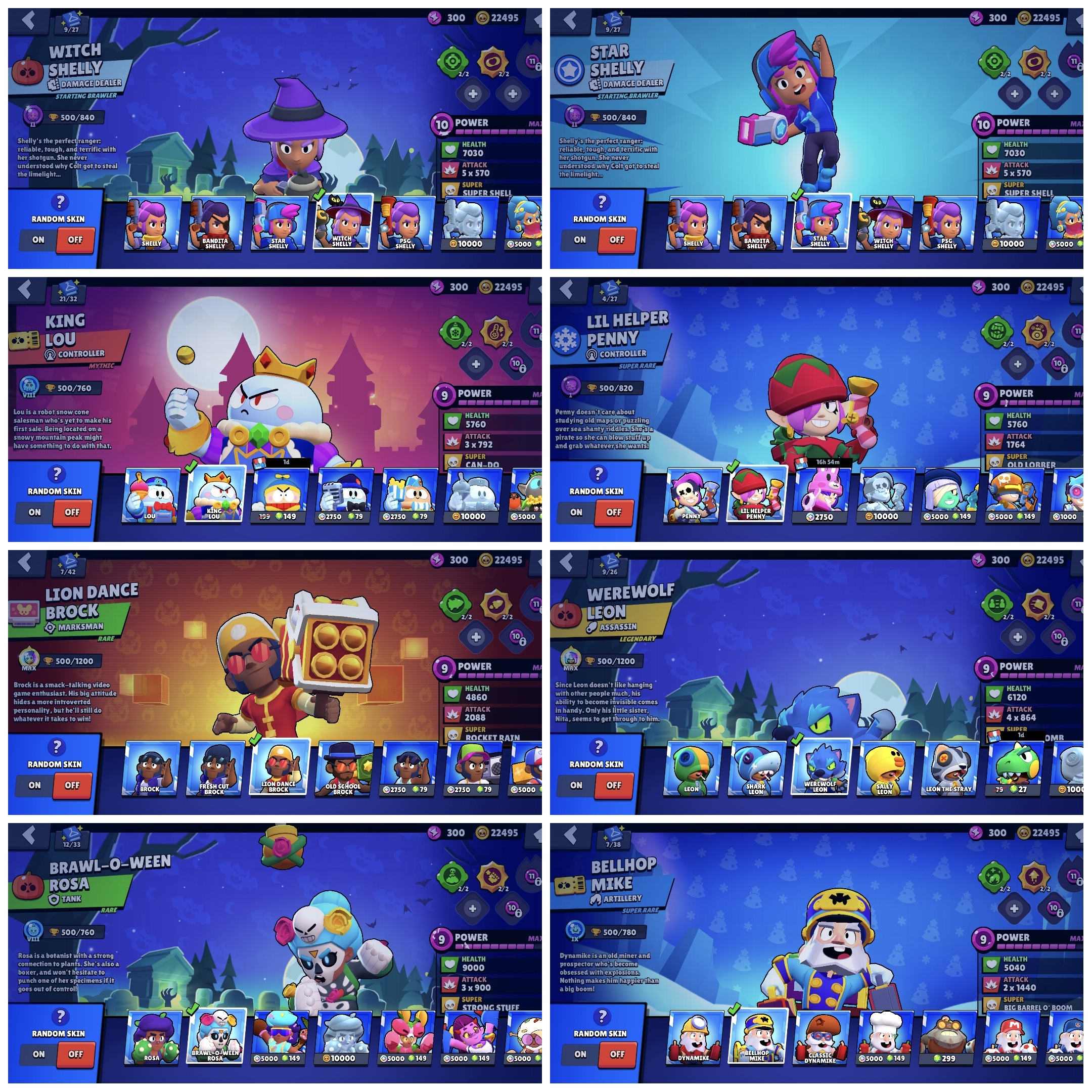 ✨ 30k Trophy ✨ Lion Dance Brock ✨ Witch Shelly ✨ Warewolf Leon ✨ Star Shelly ✨ King Lou ✨ Supercell Id Changeable ✨