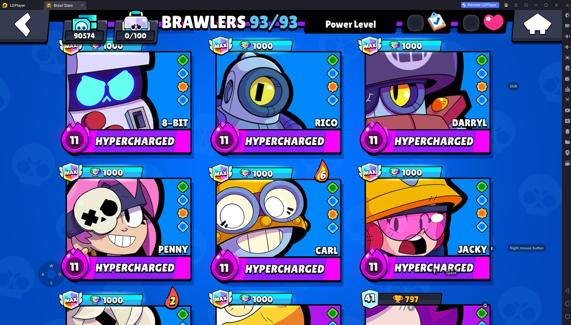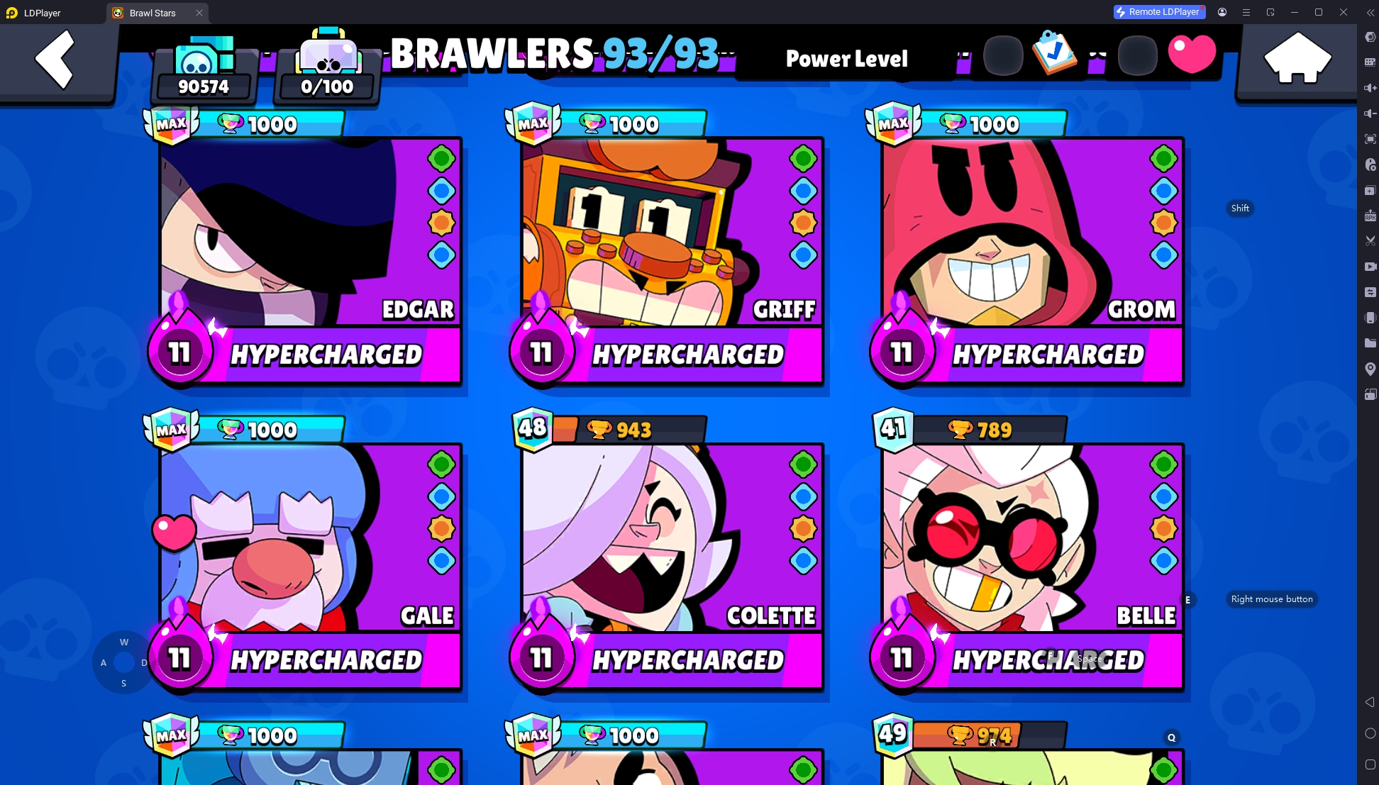 332 SKINS 💯 METEORIC FAME 2 🧡 90.574 TROPHIES 🏆 93 BRAWLERS 🐼 70 HYPERCHARGED 🩸 92 MAX BRAWLERS 💛 STAR SHELLY 🧡 WITCH SHELLY 🧡 WEREWOLF LEON 🧡 BELLE GOLDHAND 🧡 BORN BAD BUZZ 🧡 KING LOU 🧡 MECHA PALADIN SURGE 🧡 RONIN RUFFS 🧡 TRIXIE COLETTE 💯