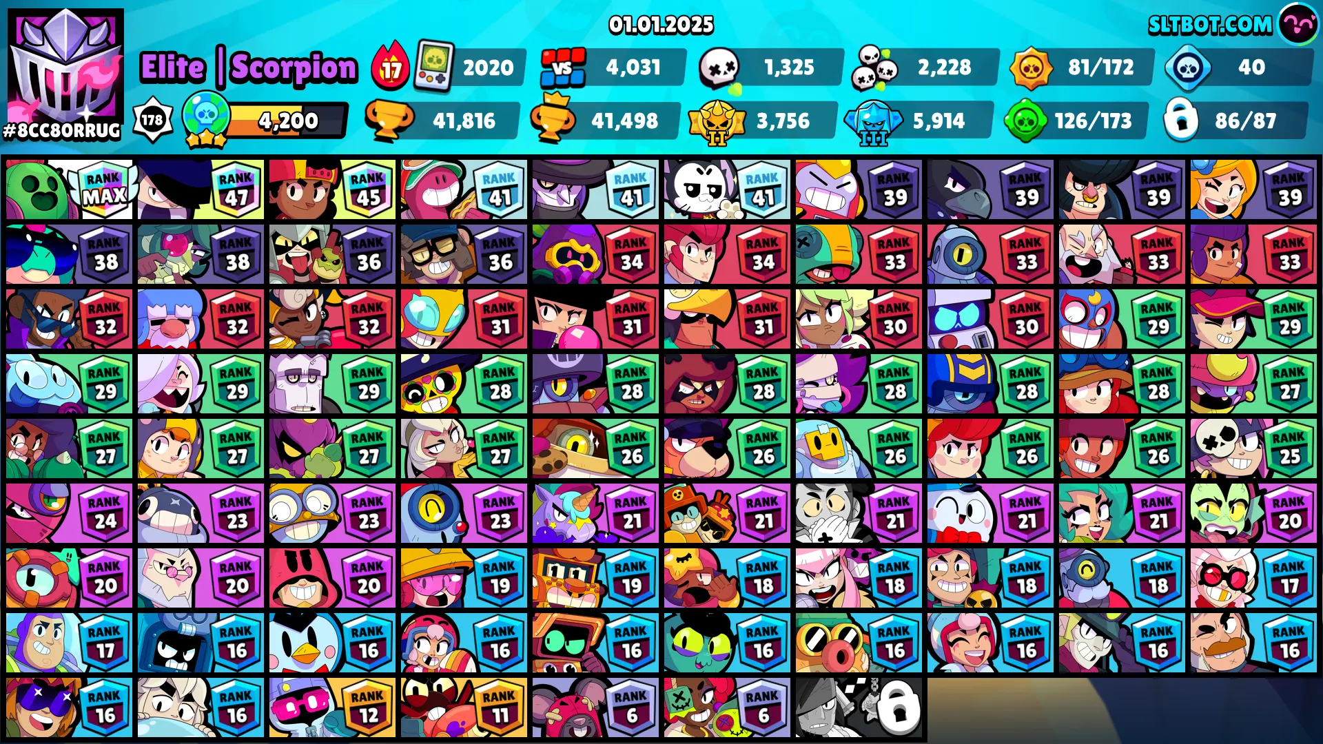 41.500 TROPHY | WHITE WOLF LEON | 1 MAX RANK | 86 BRAWLERS | 136 SKINS | 14 MAX | 6 HYPERCHARGE | INSTANT DELIVERY