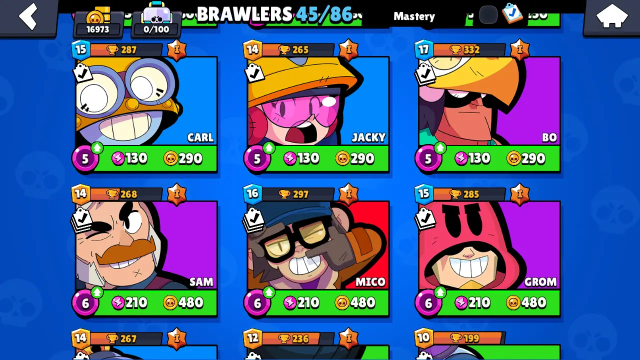 ✅ 45 BRAWLERS ✅ 16000 TROPHIES 🔰 36 SKINS 🔰 RANK 35 [3] 🔰 RANK 25 [13] 🔰 1 LEGENDARY 🔰 BR18