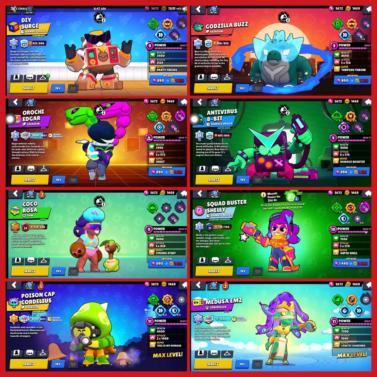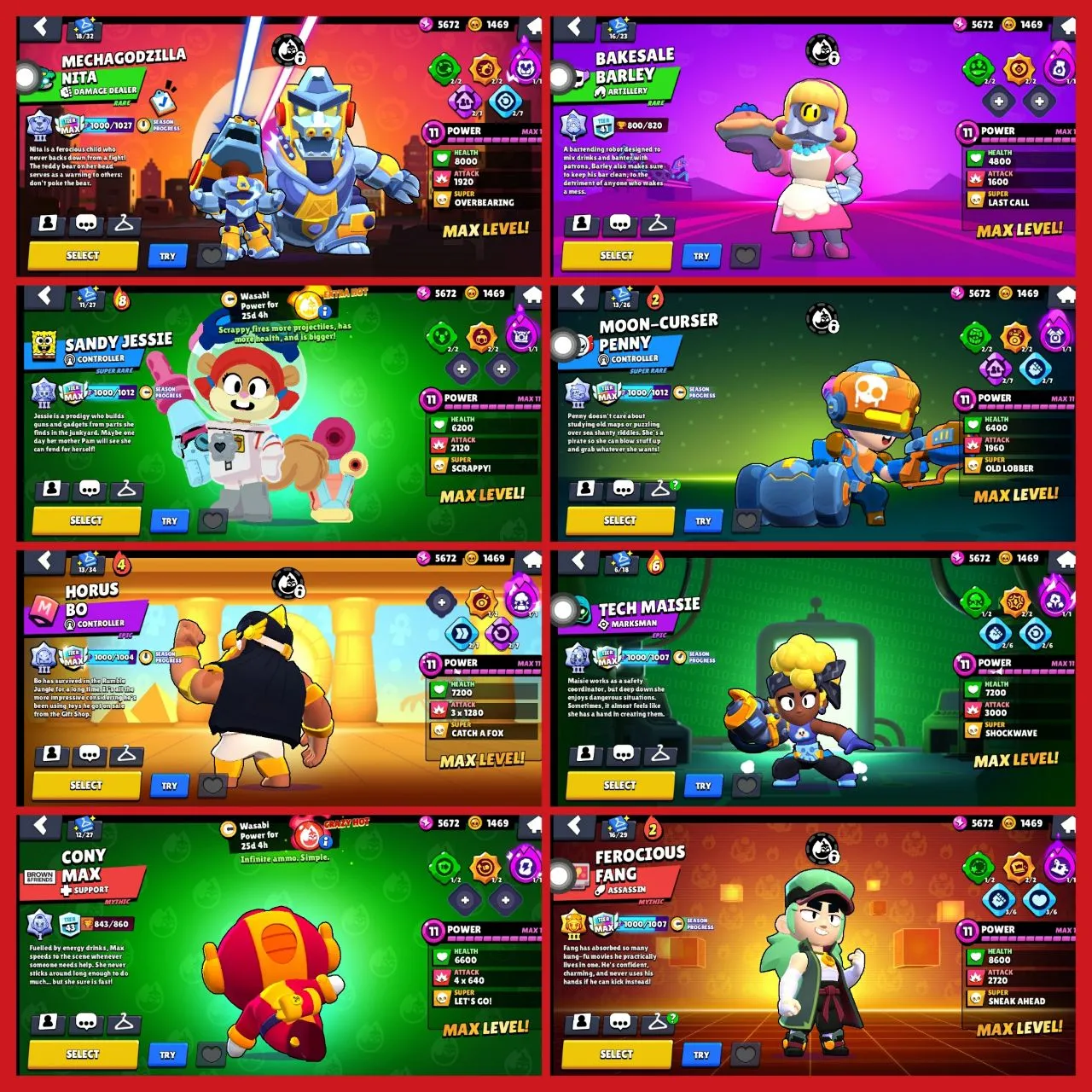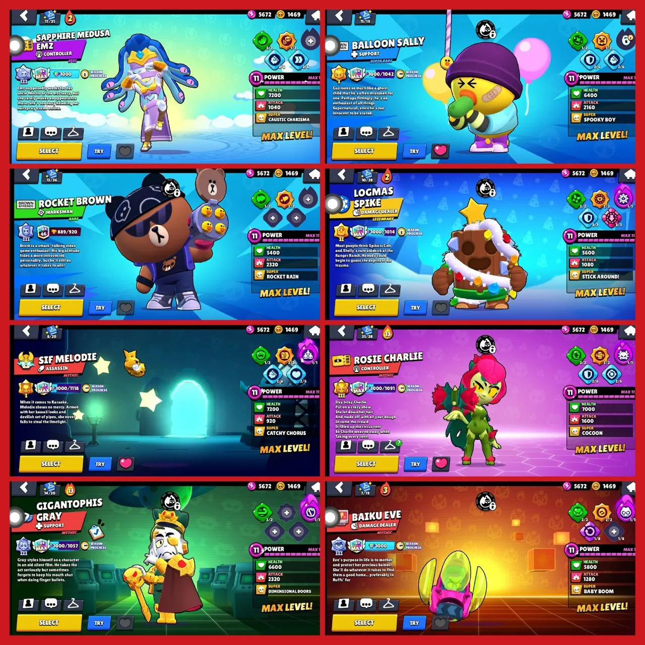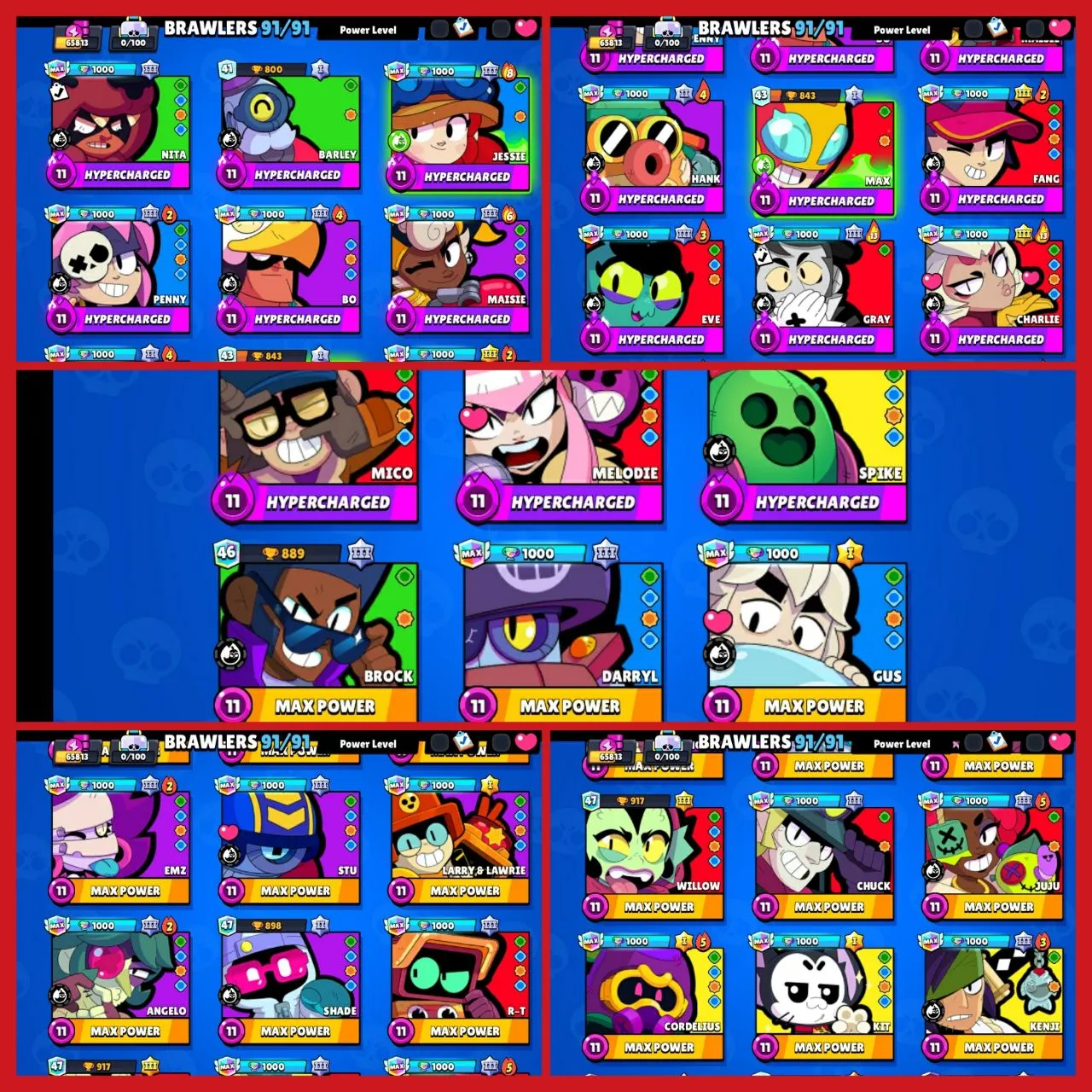 🥰[65000+ TROPHY] ❤️🔥30 MAXED BRAWLER 💞| 91 BRAWLERS |💝 195 SKINS🤣[PINKU PAWLETTE, SQUIDWARD MORTIS, FINALBOSS RICO, MEDUSA EMZ, OROCHI EDGARD💝]