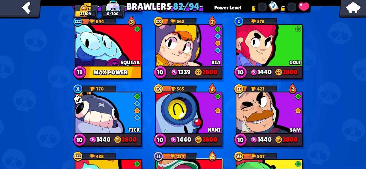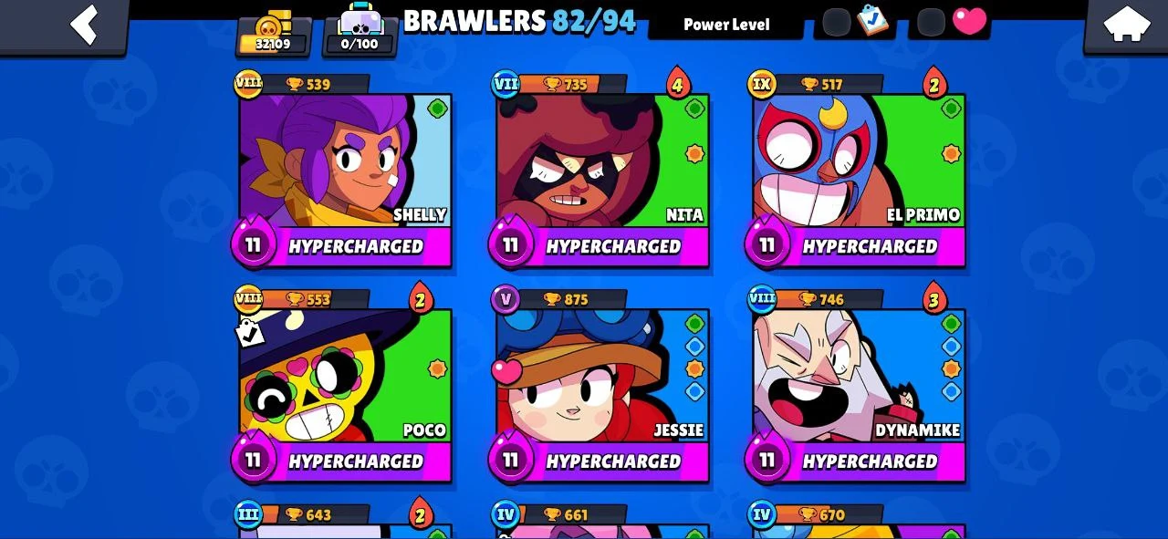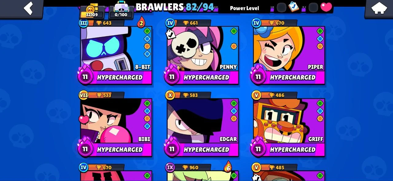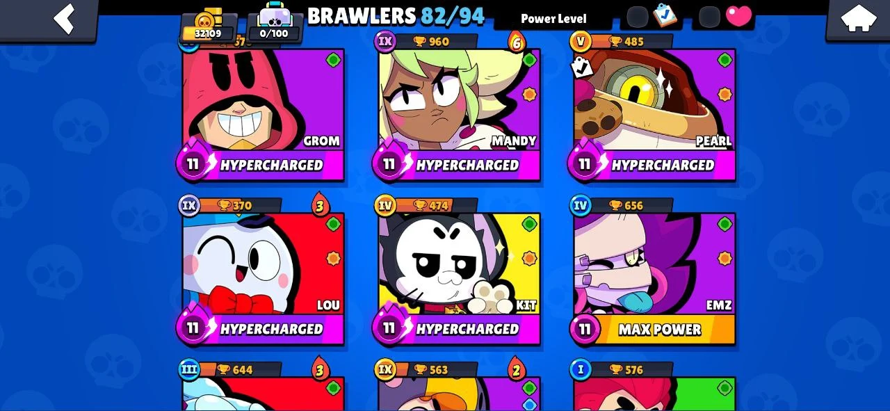 ⭐ 82 BRAWLERS 🎯 19 MAX BRAWLERS 🐼 17 HYPERCHARGED 🎯 32109 TROPHIES 🧥 170 SKINS 🔵 SURGE LIGHTYEAR 🔵 CURSED KENJI 🔵 DARK ANGEL EDGAR 🔐 FULL ACCESS