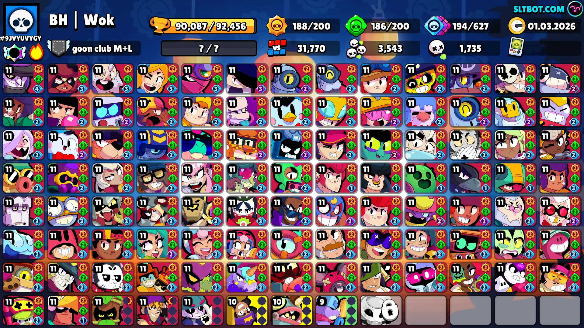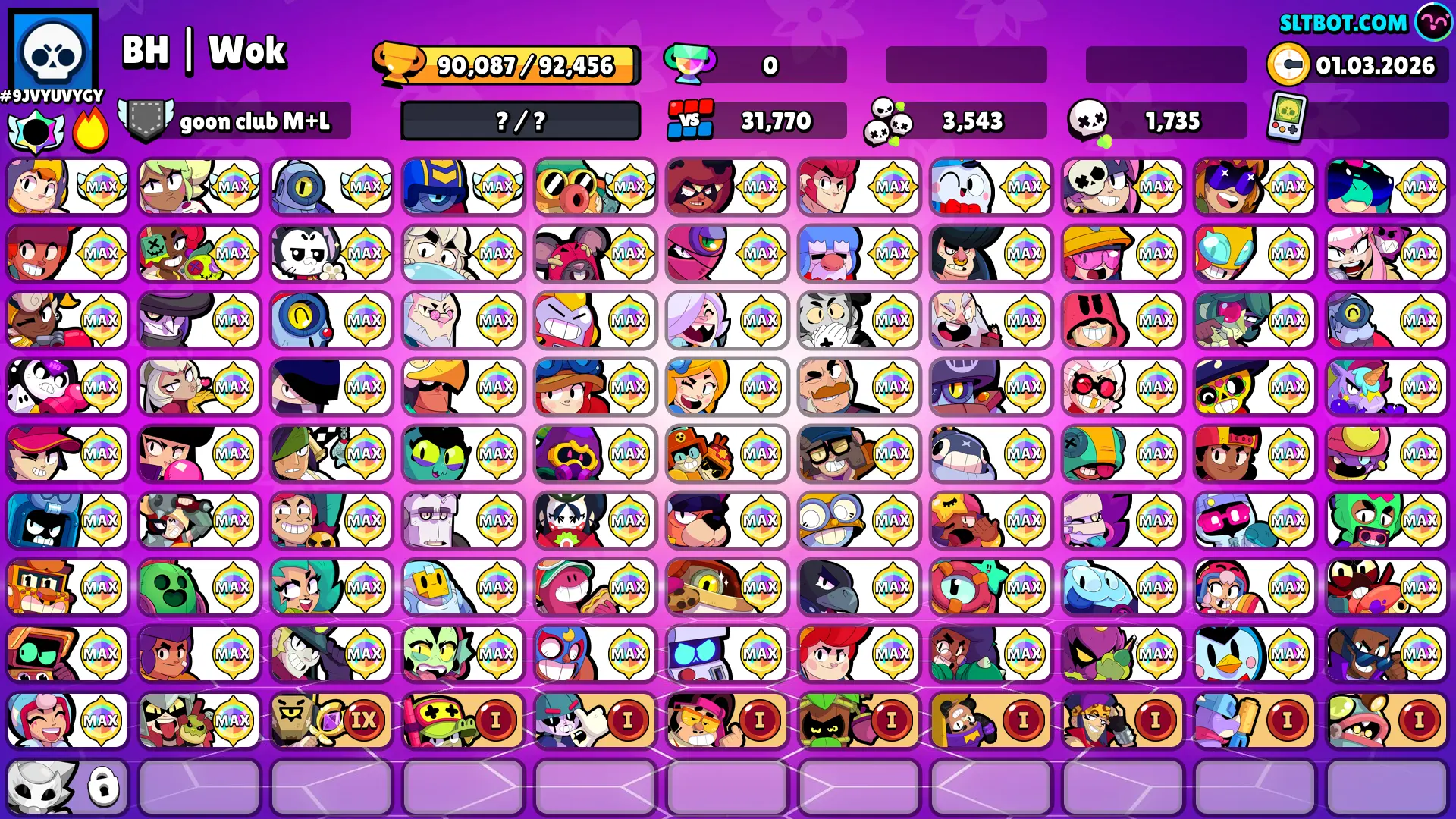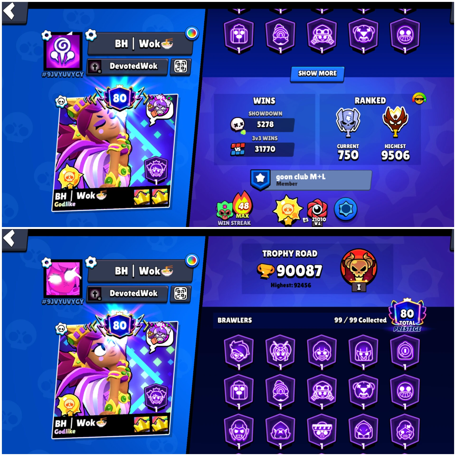 99 Brawler | 90k Trophy |96 Max Brawler | 51 Haypercharged | 320 skin | Master Account | 80 Prestige | 90000 | instant Delivery | Android & IOS