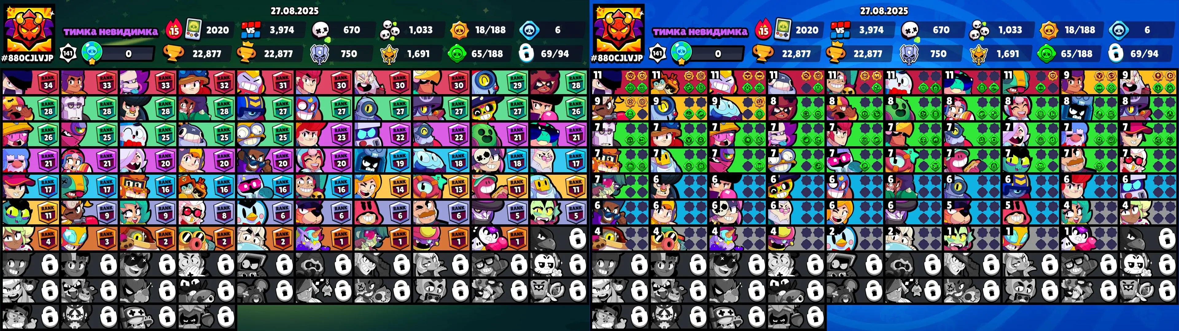 BR1192 22877 Trophy | 69 Brawler + 8 (MAX) + 4 (HYPERCHARGED) | 61 Skins + 1 Legend + 1 Mythic + 11 Epic | IOS/AND