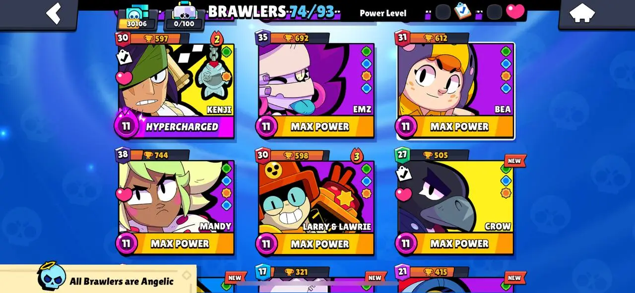 💥 BRAWL STAR ✨ 30K TROPHY ✨74 BRAWLS ✨ 13 HYPER ✨5 MAX ✨ 1K NEGETIVE GEMS[ ⸱ ] ✨ 132 SKINS TOTAL ✨ CHEAPEST IN MARKET ✨