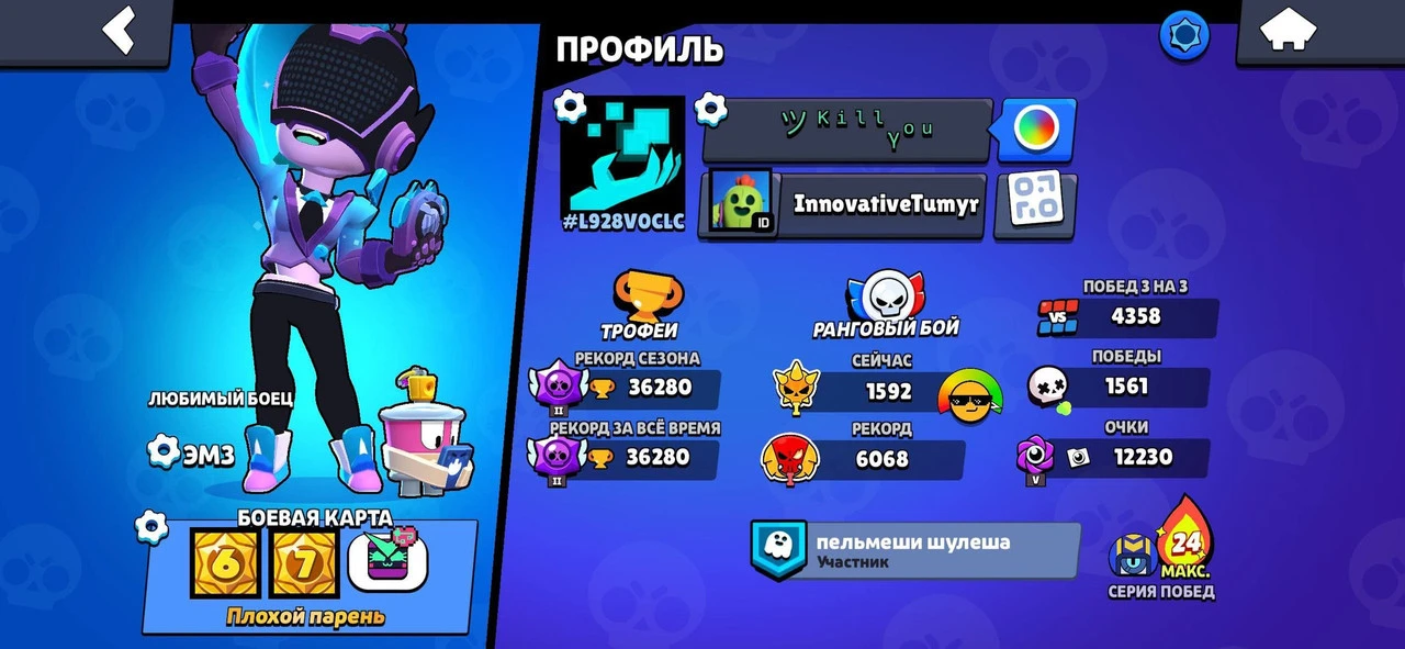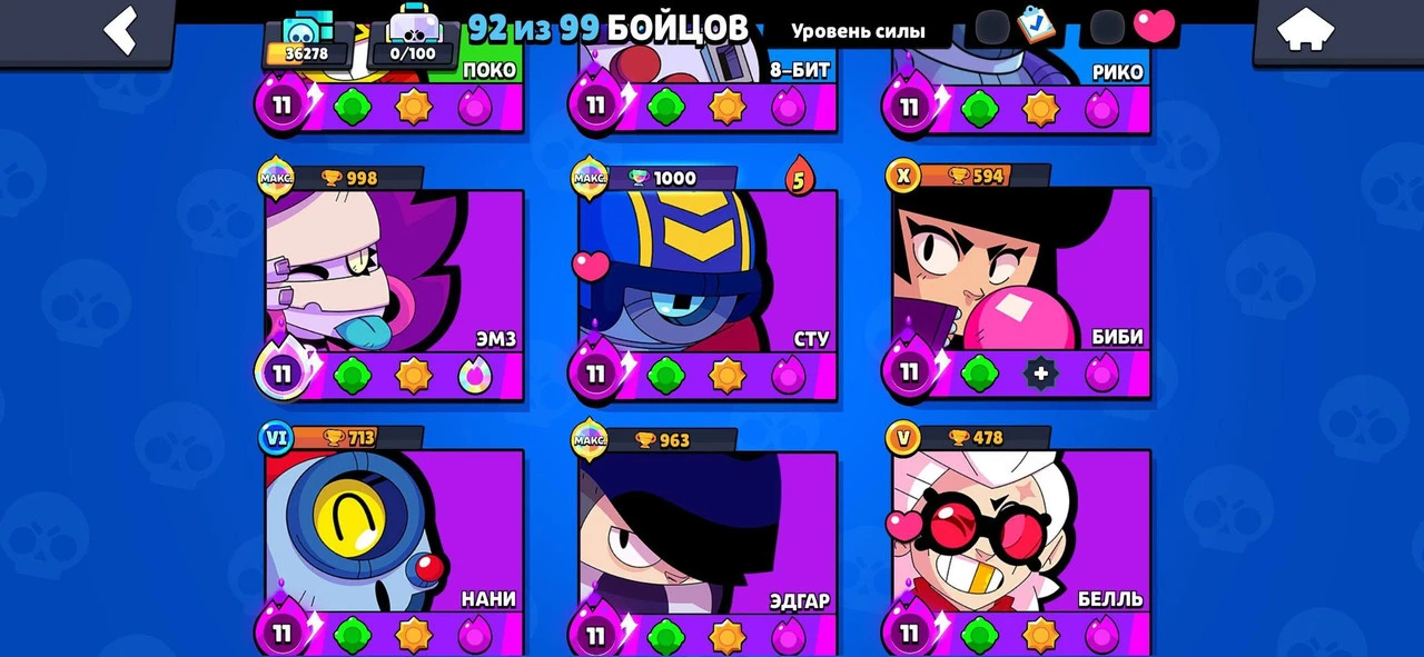 Brawl Stars ⸱ 36278 Trophies ⸱ 92 Brawlers ⸱ 105 Gems