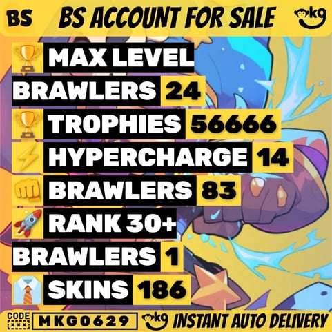 200 SKINS 💯 TRIXIE COLETTE 🧡 50.737 TROPHIES 🏆 89 BRAWLERS 🐼 22 HYPERCHARGED 🩸 44 MAX BRAWLERS 💛 THOR BIBI !MKG0634