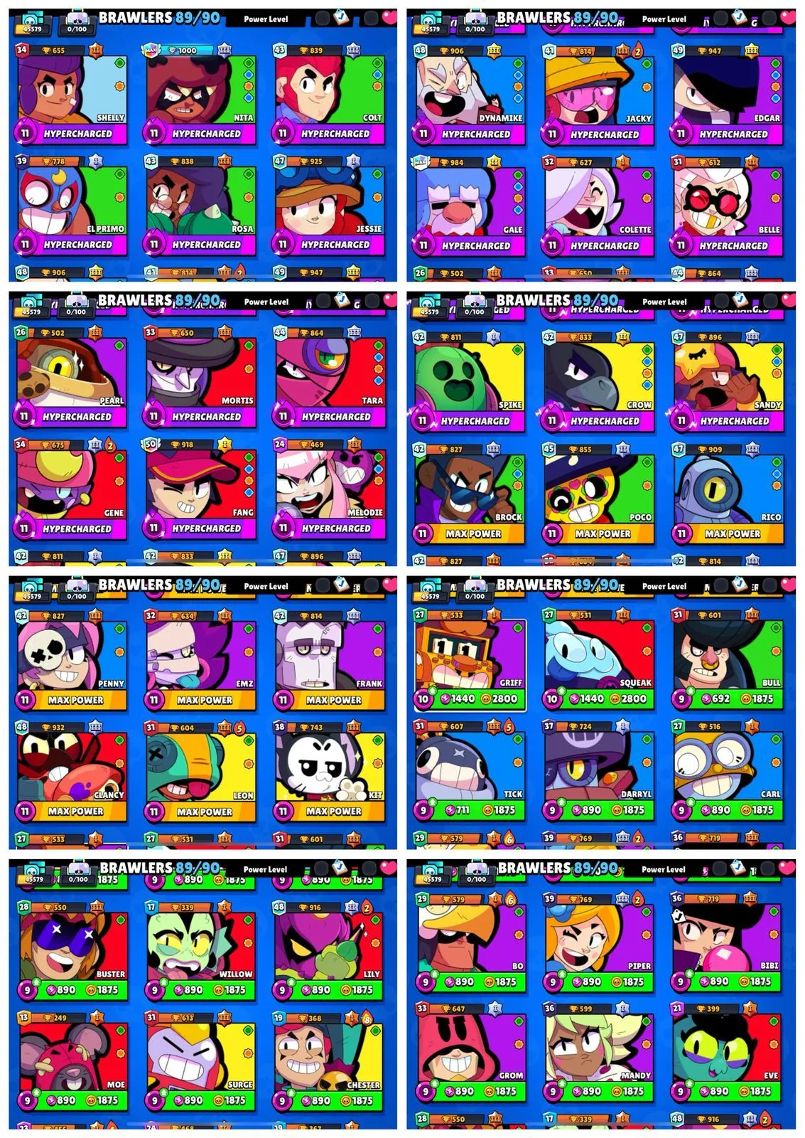 CLASSIC SHELLY DYNAMIKE 177 SKINS 45K TROPHIES ⸱ 89 BRAWLERS ⸱ 30 MAX POWER(21 HYPERCHARGED) ⸱ 190 GEMS ⸱ TEMPEST TARA HANDSOME COLT OLD SCHOOL BROCK
