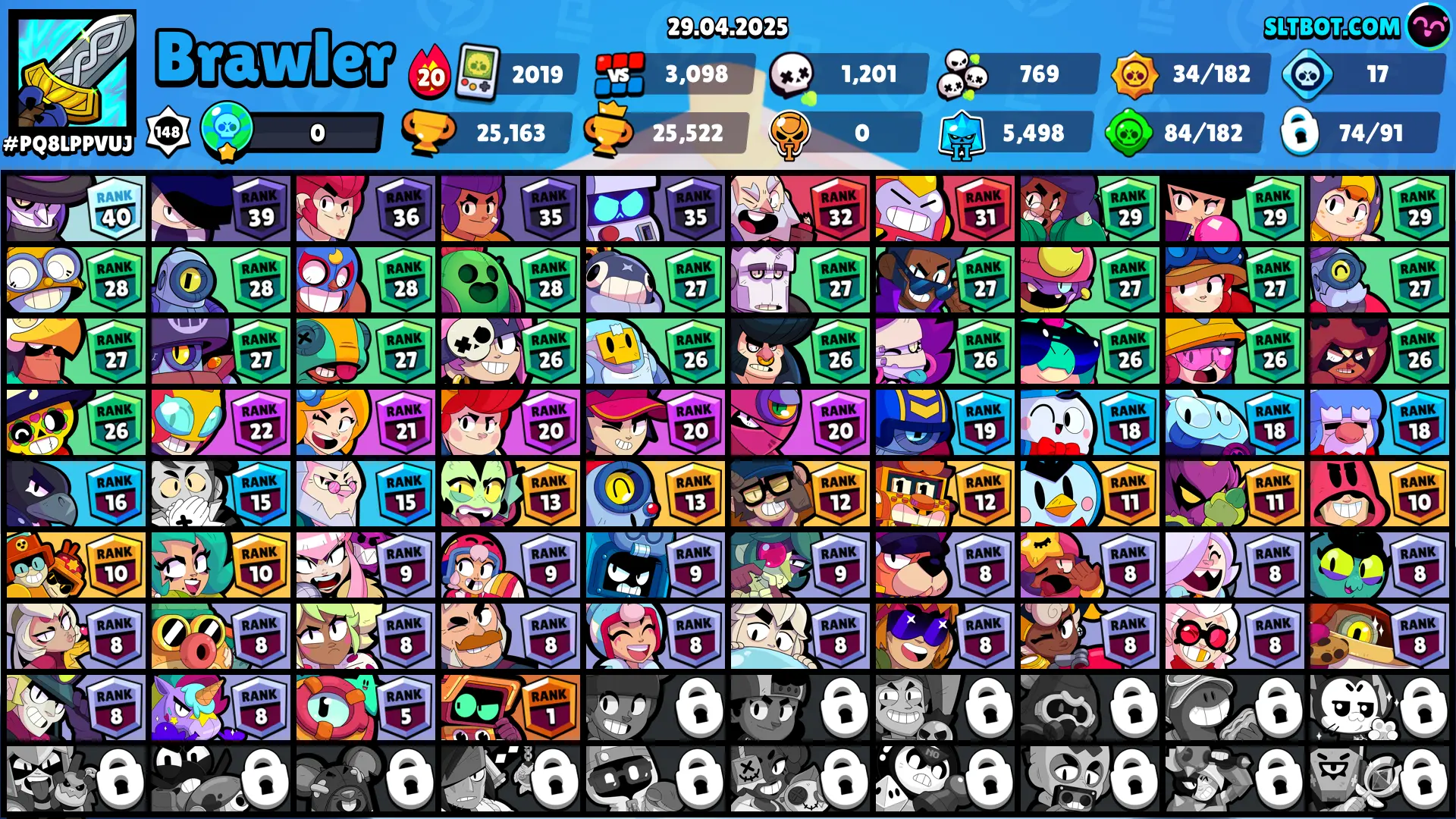 82 SKINS 🩵 25.163 TROPHIES 🏆 74 BRAWLERS 🧸 2 HYPERCHARGED 🩸 4 MAX BRAWLERS 🩷 DARK ANGEL COLT 🩵 EL REY PRIMO 🩵 SUPER RANGER BROCK BLUE 🩵 RED DRAGON JESSIE 🩵 SANTA MIKE 🩵 RICOCHET 🎀