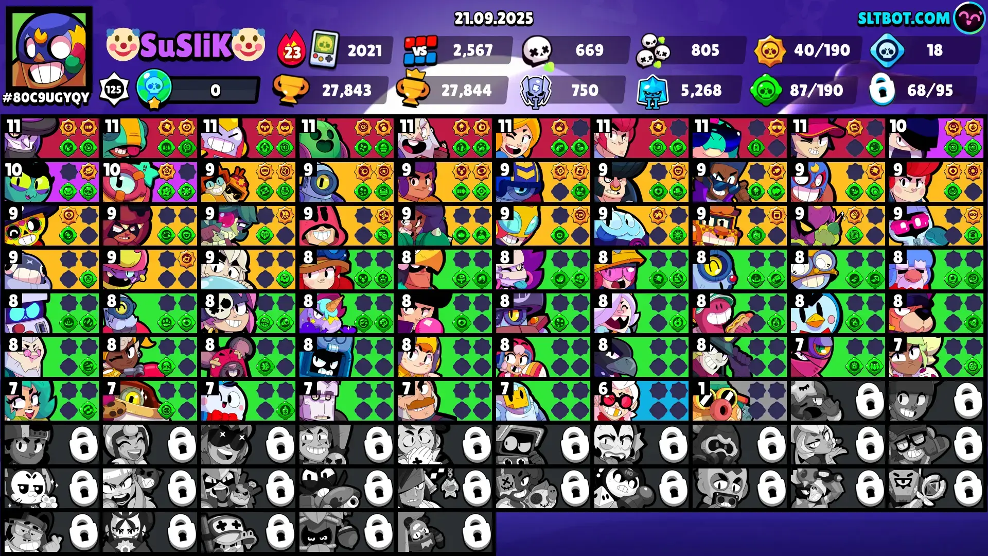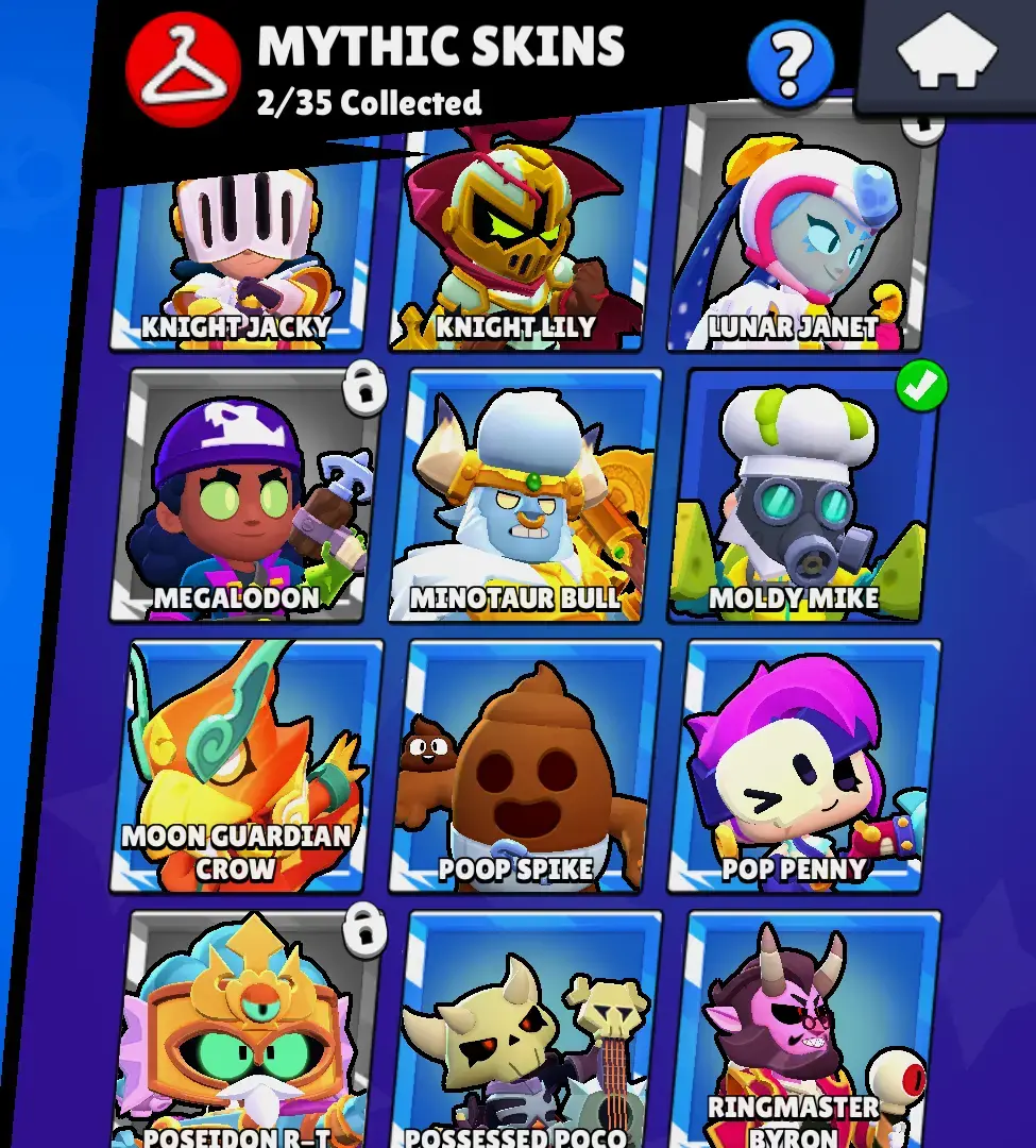GEMS SPENT 9364 | 9 MAX LVL BRAWLERS | 106 SKINS | LION BULL | LUNAR PIPER | LUNAR SPROUT | MANTIS ROSA | MARAUDER MAISIE | MEGA BEETLE BEA | MOTHRA EVE | NIGHT WITCH MORTIS | PSG MIKE | PUTRID PAM | ROGUE MORTIS | RUI SHOU NITA |