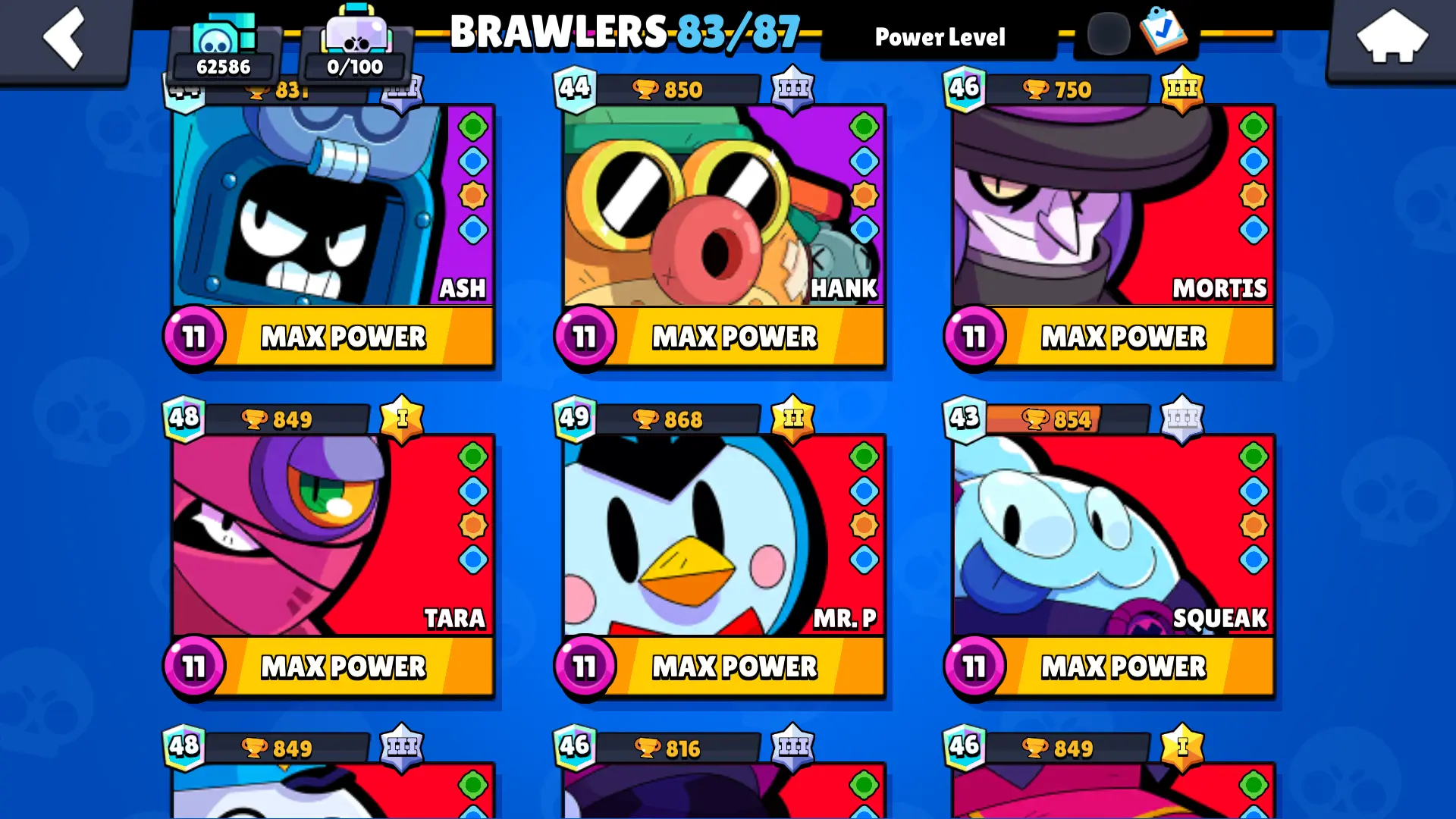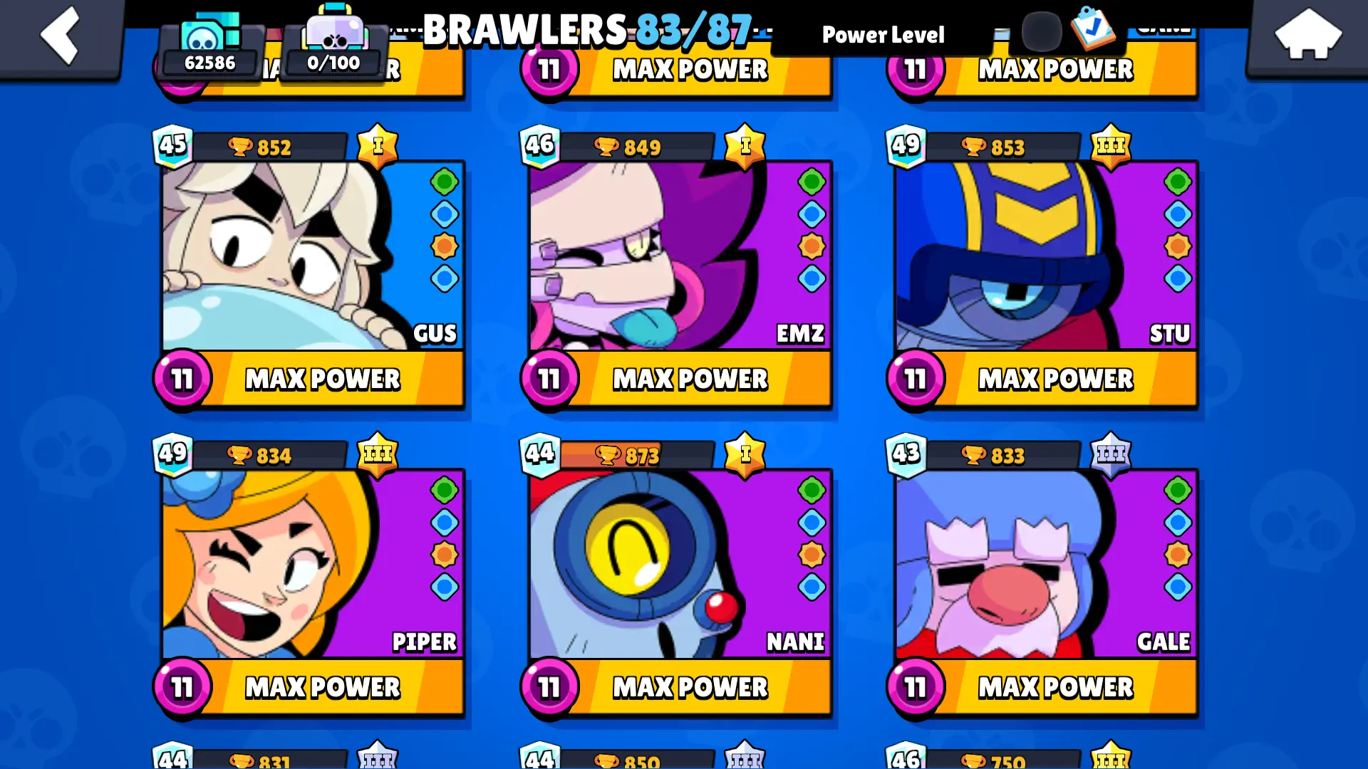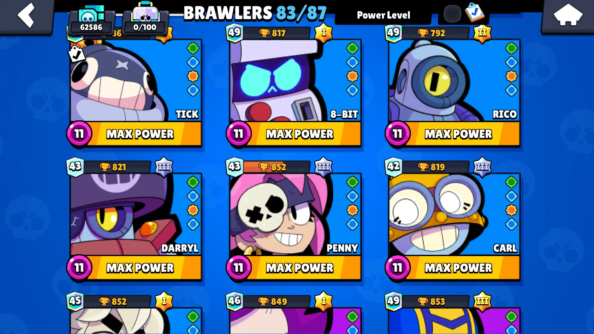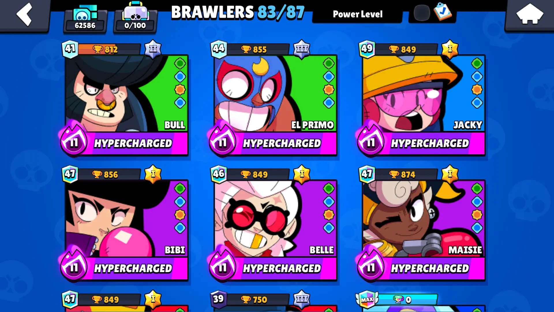 Heroine Bibi⭐ Saturanian fame II 🏆 Masters banner 2024 🏆 62500 Trophies 🏆 82/85 Brawlers ⭐ Heroine Bibi Skin ⭐ 42 MAXED Brawlers ⭐ 126 Skins ⭐ XP 242 ⭐ 12 Hypercharged 🔒 Full Mail Access ⭐ 62K 🏆