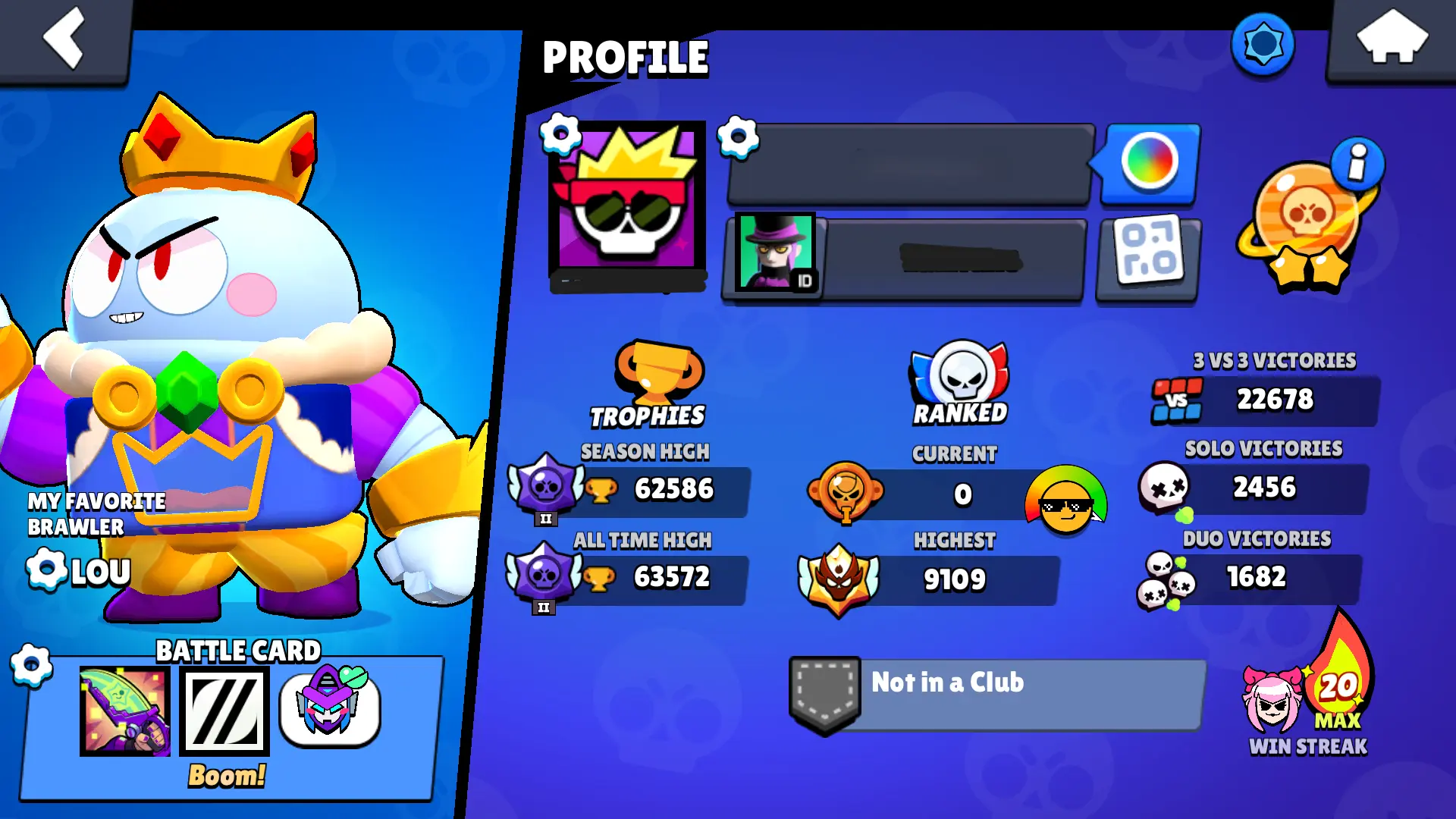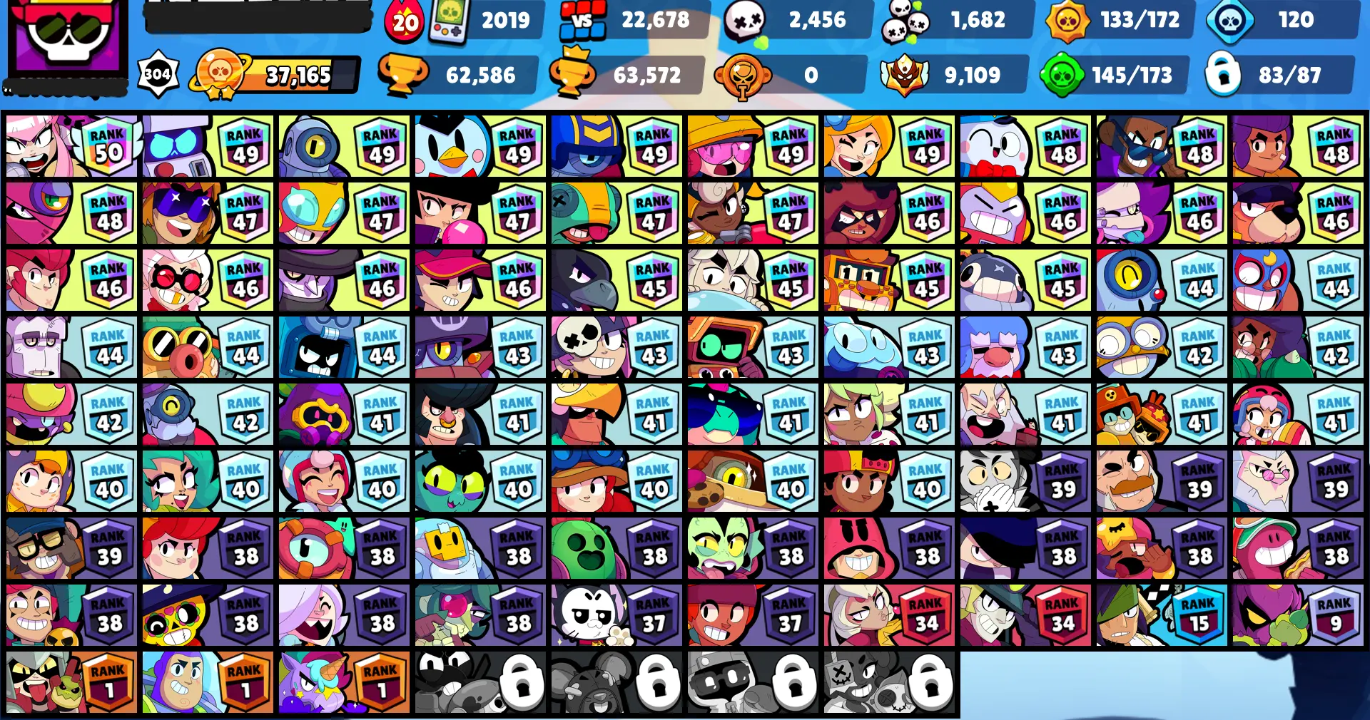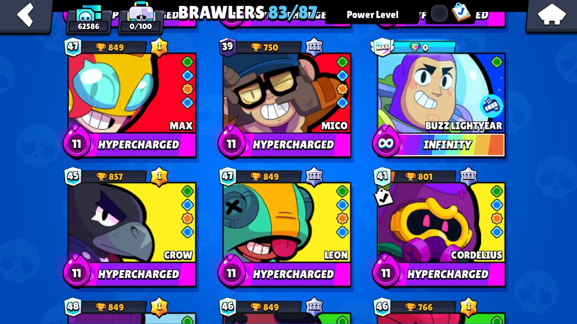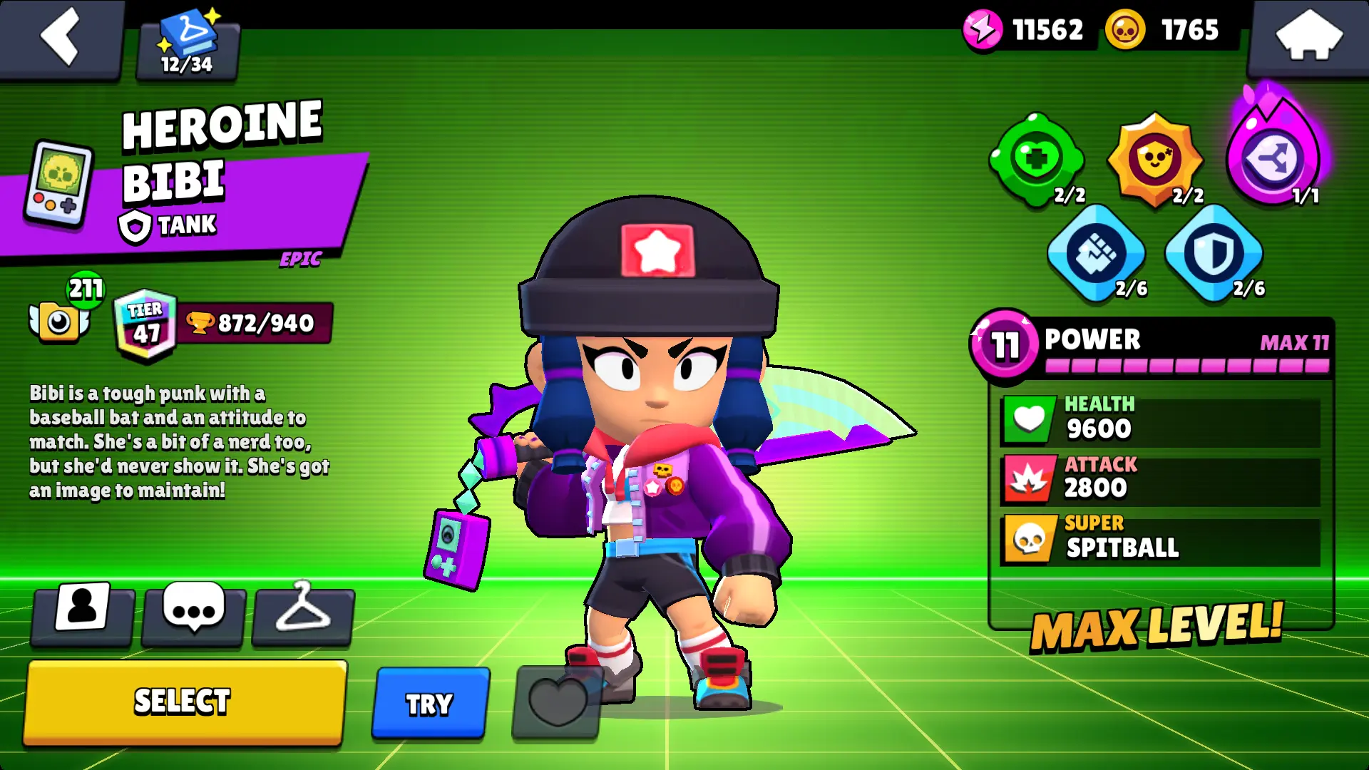 Heroine Bibi⭐ Saturanian fame II 🏆 Masters banner 2024 🏆 62500 Trophies 🏆 82/85 Brawlers ⭐ Heroine Bibi Skin ⭐ 42 MAXED Brawlers ⭐ 126 Skins ⭐ XP 242 ⭐ 12 Hypercharged 🔒 Full Mail Access ⭐ 62K 🏆