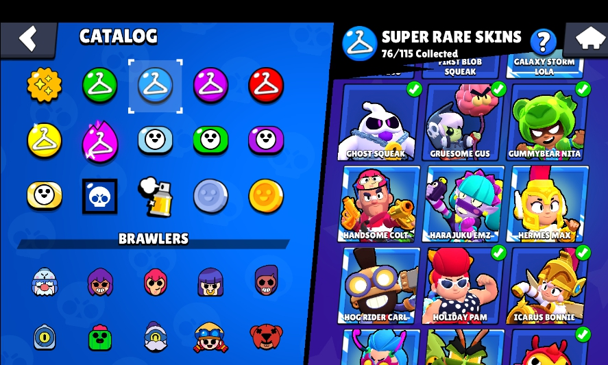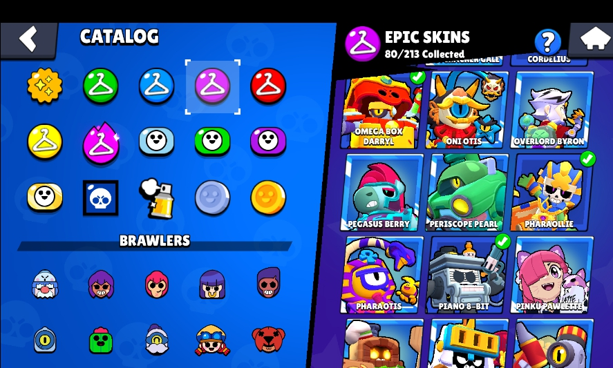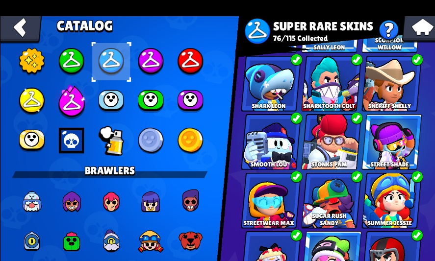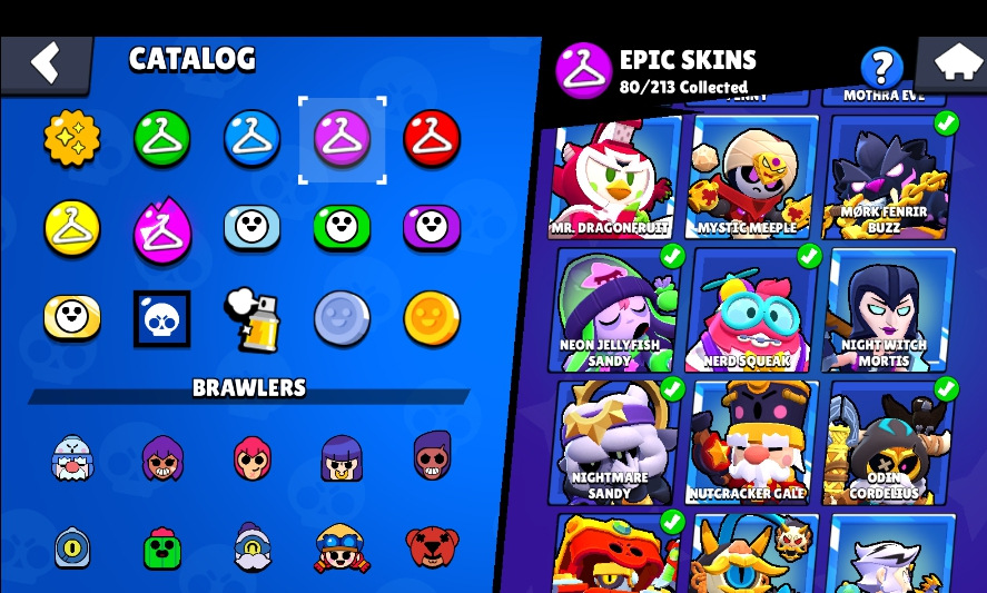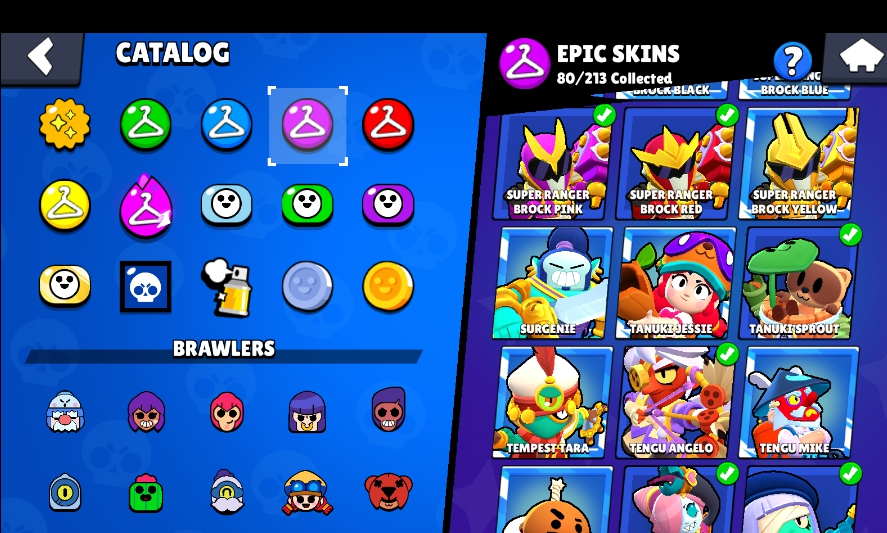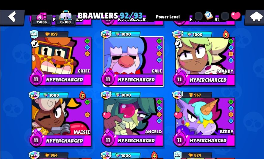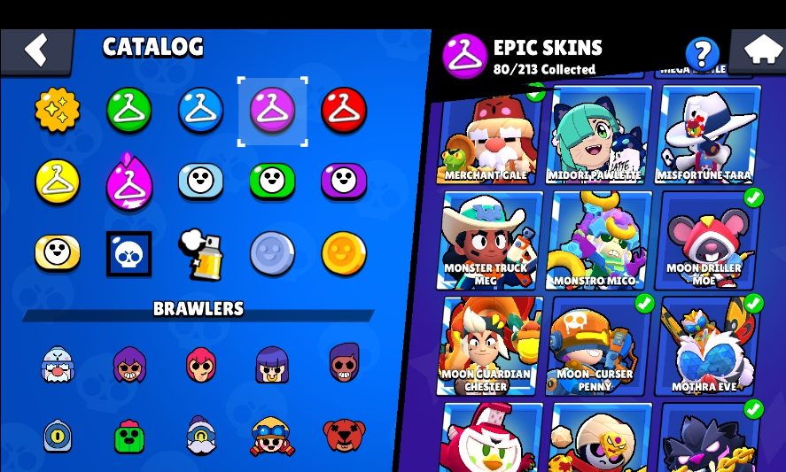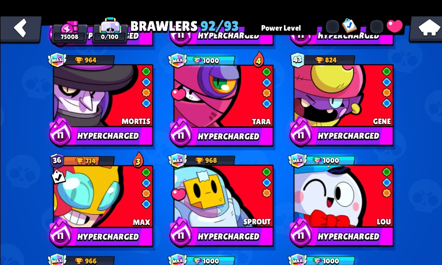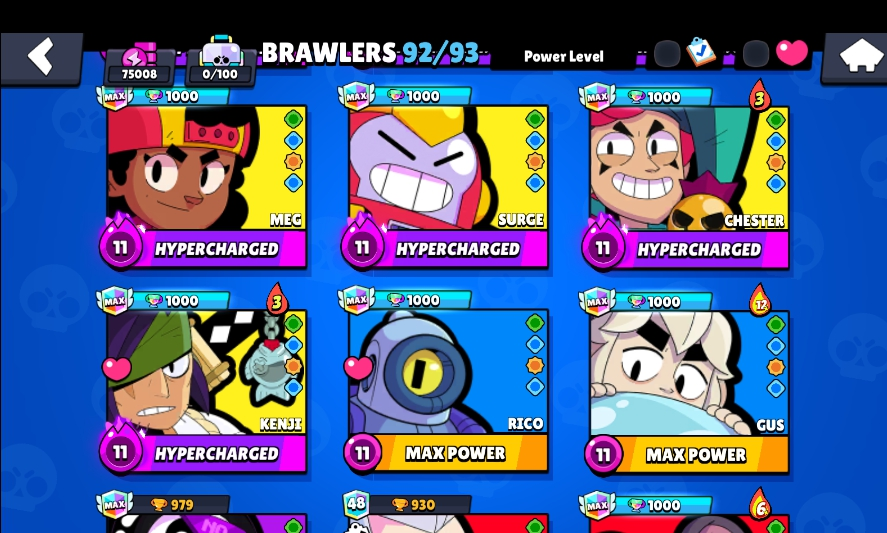 MERCHANT GALE â 244 SKINS â 75.000 TROPHY â 92 BRAWLERS â 46 MAX â 39 HYPERCHARGED â CORSAIR COLT â MECHA MORTIS â CHAINSAW BUSTER â DIY SURGE â KABOCHA FANG â SPIKE â LEGENDARY â LEON