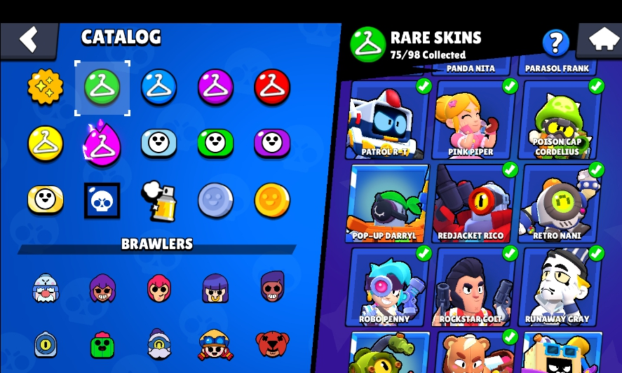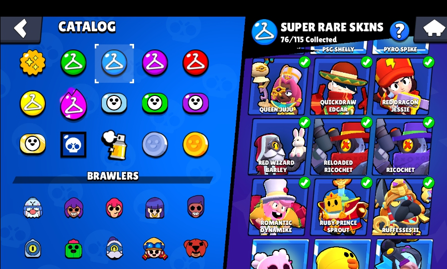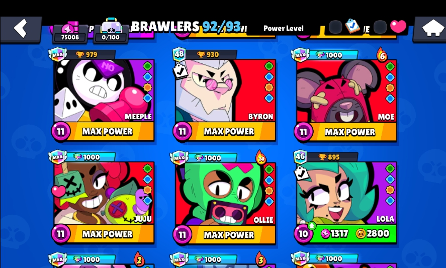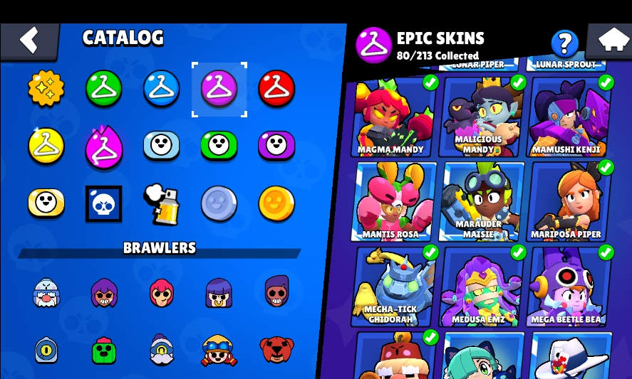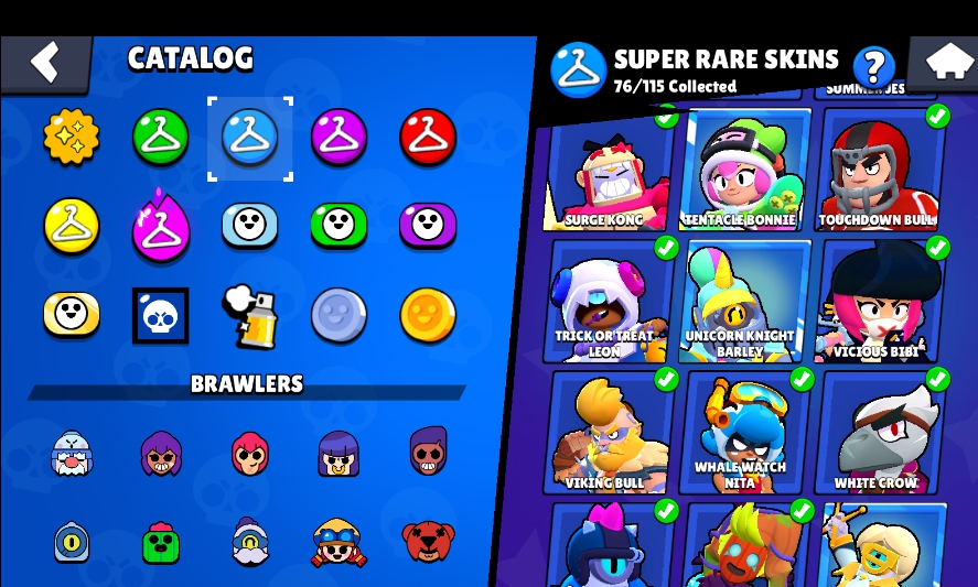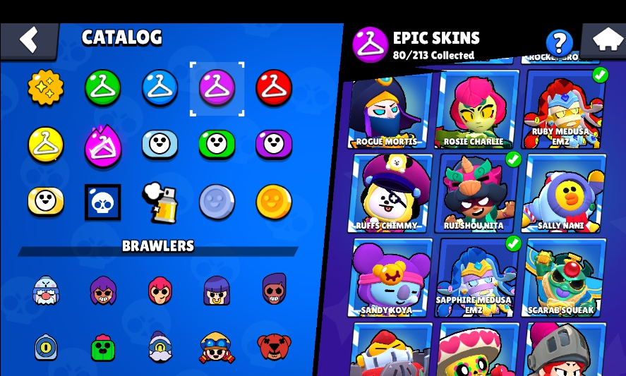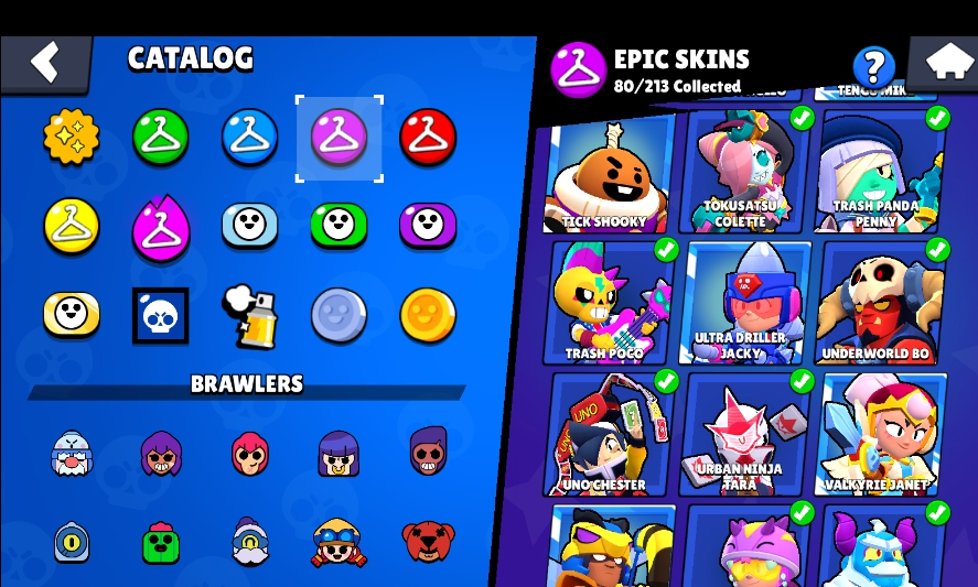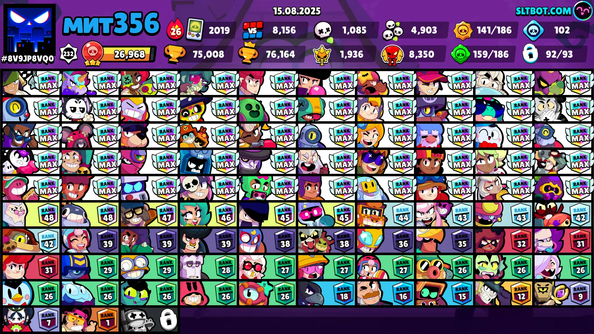 MERCHANT GALE â 244 SKINS â 75.000 TROPHY â 92 BRAWLERS â 46 MAX â 39 HYPERCHARGED â CORSAIR COLT â MECHA MORTIS â CHAINSAW BUSTER â DIY SURGE â KABOCHA FANG â SPIKE â LEGENDARY â LEON