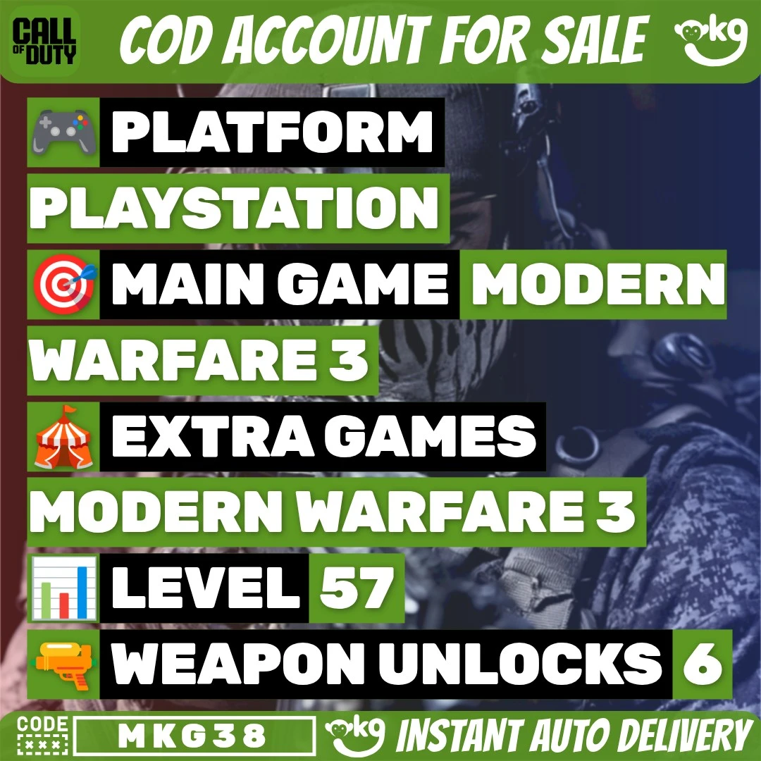 🧠Playstation【MW3】🪖 Level 57 ⚡ Ranked Ready 🔧 6 Guns Max | 🎮 PSN / XBOX / STEAM / BT Linkable | 🏅 Activision Account | 🔓Full Access |⚡Instant Deliver !MKG38