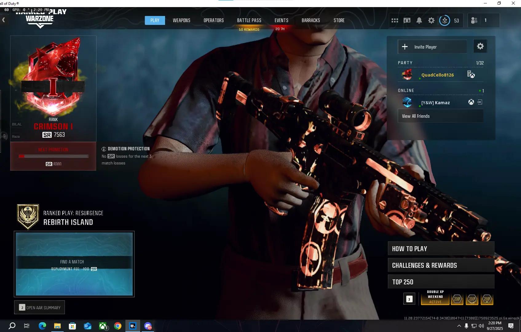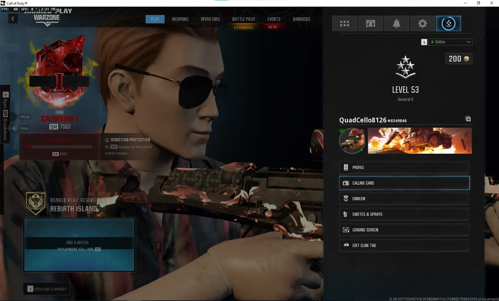Crimson ⚡ WZ4 ✨ Resurgence Mode Crimson I (SR 7563) ✨ Level 55 🌌 Ranked Ready 🎮 | Full Access 🚀 Rebirth Island | Linkable: Steam / Battle.net / PSN / Xbox