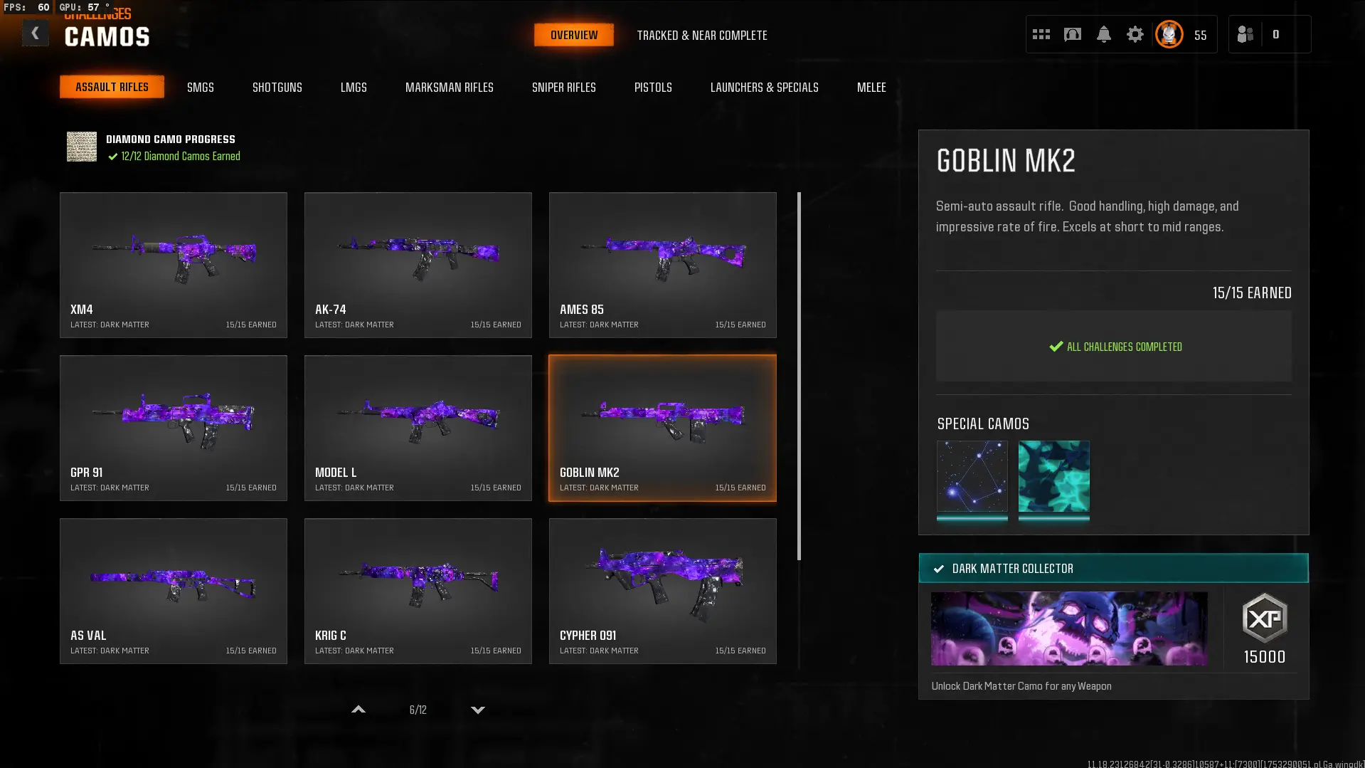 Dark Matter 🛸 500 Camos + Prestige 5🏹 Level 55+ 50 Wins 🎯 17 Operators 🤖 Ranked Ready 🧠 BO6 🪄 Linkable to: Steam 🔗 Battle.net 🧷 PSN 🧠 Xbox 🧿 BO6 & WZ4