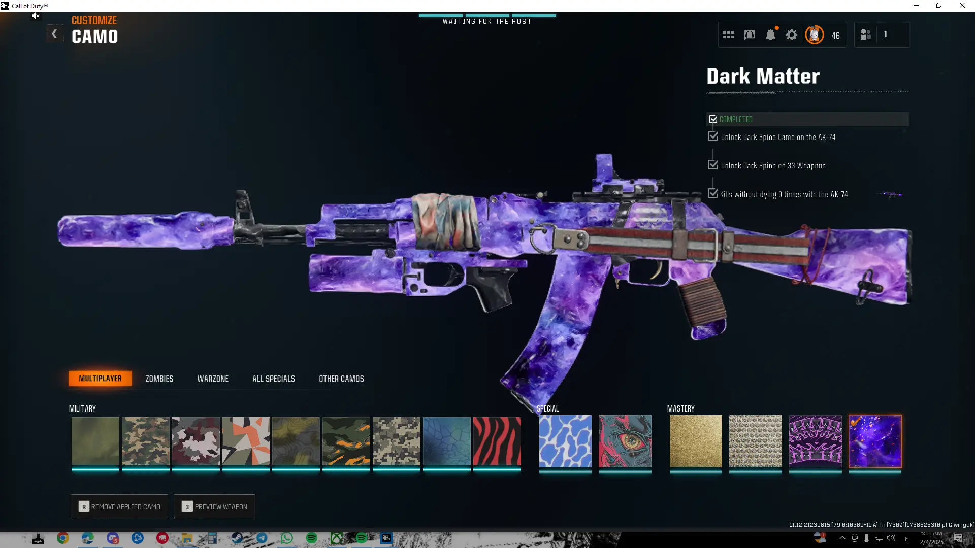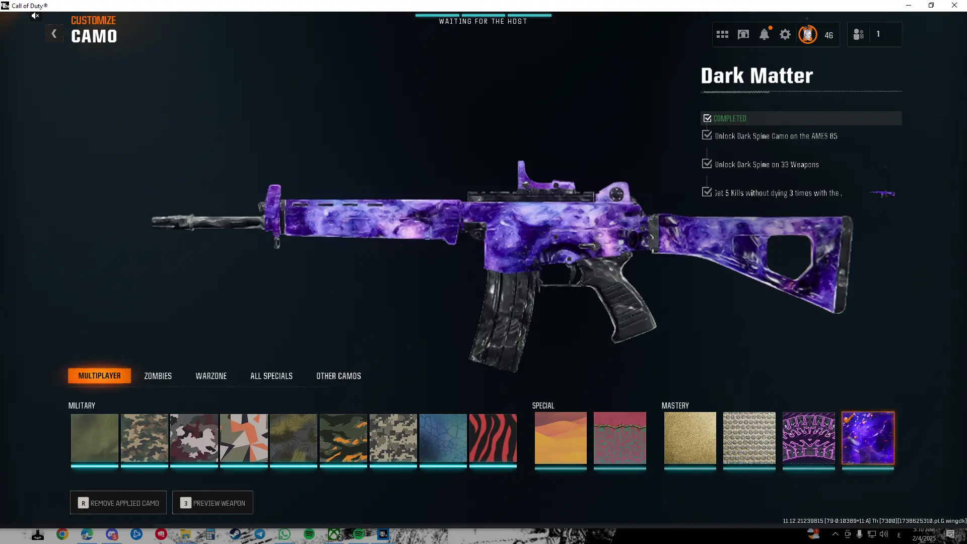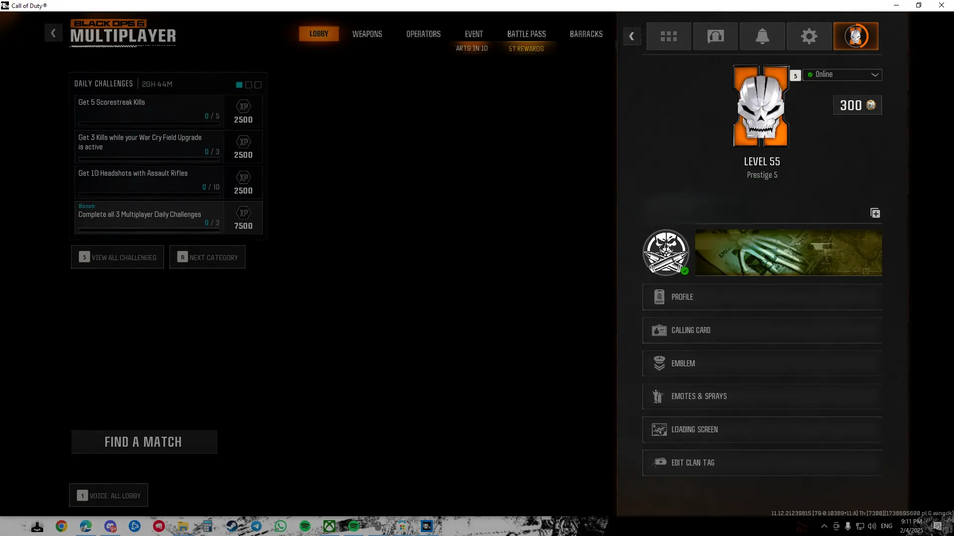 Dark Matter + Prestige 6 🎨 450 Camos 🚀 Level 55 🌟 16 Operators 🛡️ Hard- stacked Account 🎮 Linkable to: Steam, Battle.net, PSN Only 🎮 BO6 Warzone 4 WZ4