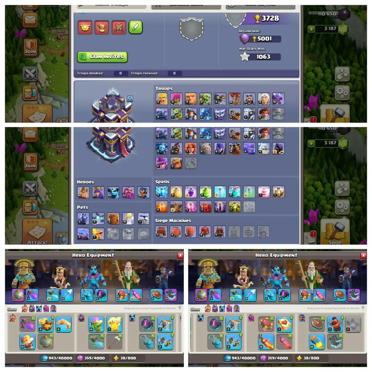【100% Wall Max➪Defense Max】💥Th15 Full Max💥【Heros:66/83/50/53/30】💥Max Equipment💥3100 Gems💥Rarest Skins💥Xp-220💥Full Access💥(3715)
