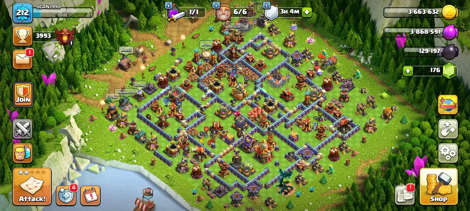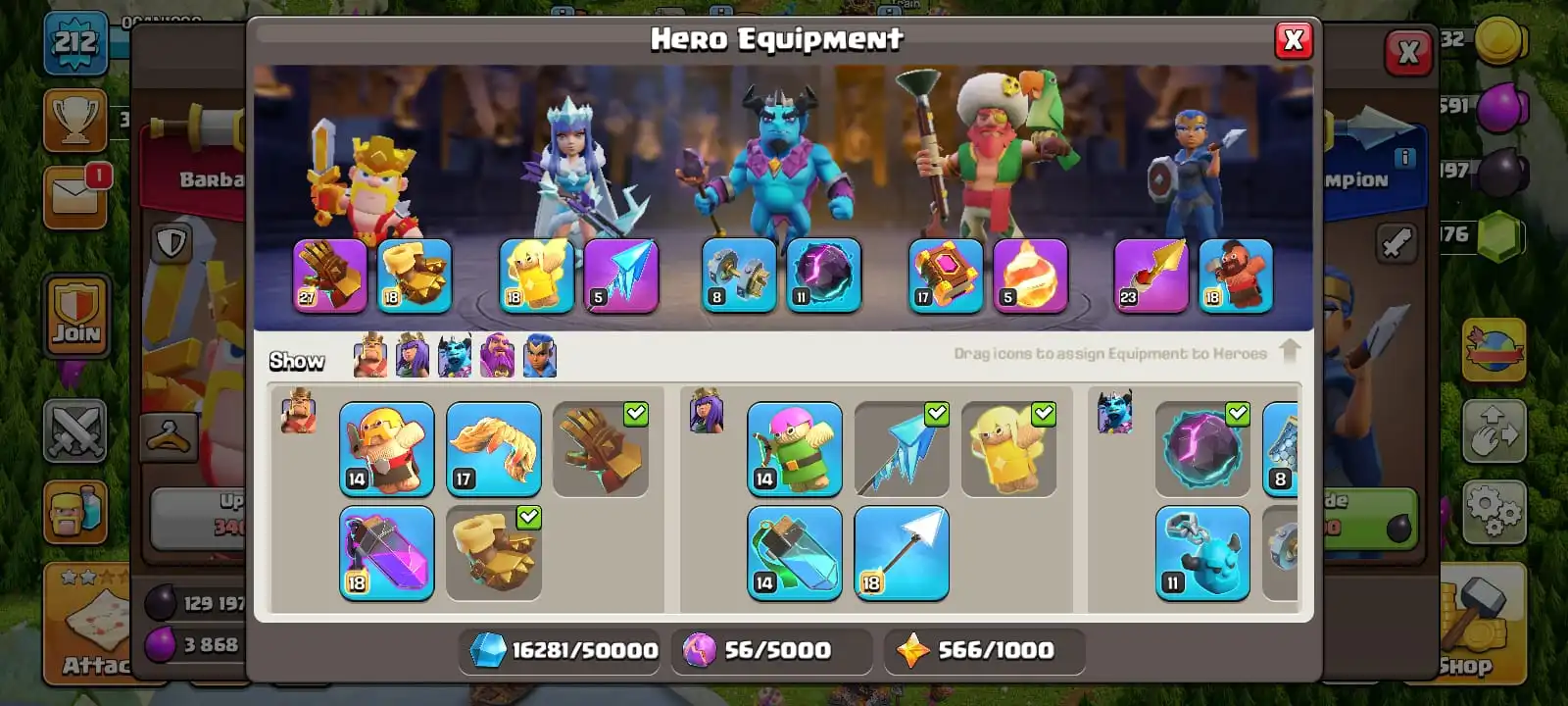 Best deal🔥TH 16 max defense🔥max heroes level 95/95/62/70/43☠️4 epic equipment⚒️6 builder’s✅pixel scenery and 4 heroes skin