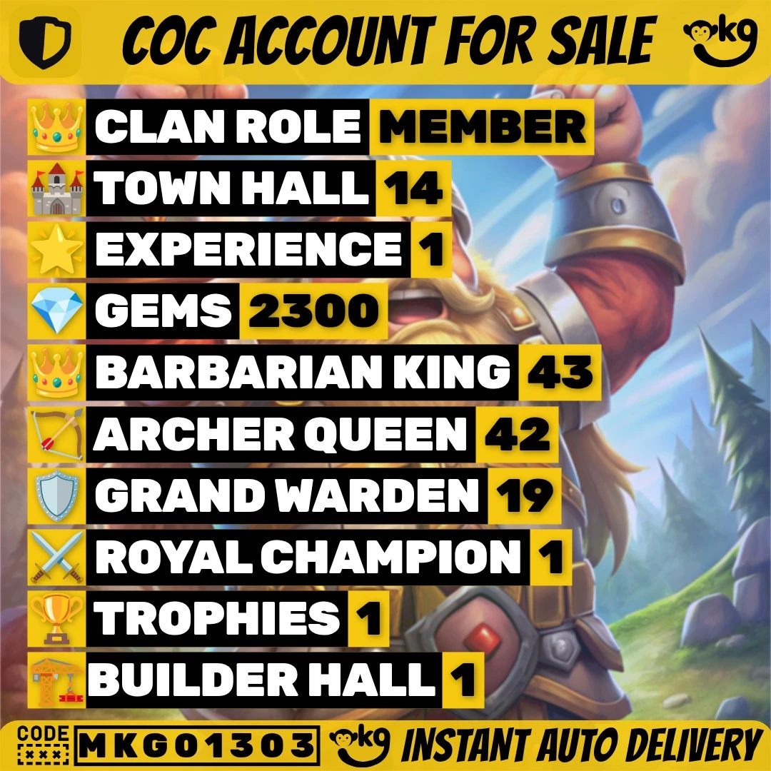 🌝 TH14 Semi | ✨ Free Rename | 💎 2.3K+ Gems | ⚔️ Magic Mirror Epic Equipment 🔥 | 🦸 Heroes 43-43-42-26-19 🥵 | 🎒 Lots of Magic Items Loaded ✨ | 👑 Goblin King Skin | 🚚 Instant Delivery ✅ Trusted Seller !MKG01303