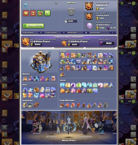 Ein maxed Clash of Clans Account bedeutet, dass jedes verbesserbare Element im Spiel aktuell auf seinem maximalen Level ist, von Helden und Truppen bis hin zu Verteidigungen, Mauern und Heldenausrüstungen. Der Rathaus-Level 18 ist momentan die höchste Stufe in Clash of Clans, und ein vollständig maximierter CoC Account auf diesem Stand spiegelt tausende Stunden Farming, Ausbau und Labor-Forschung in allen Spielbereichen wider.
