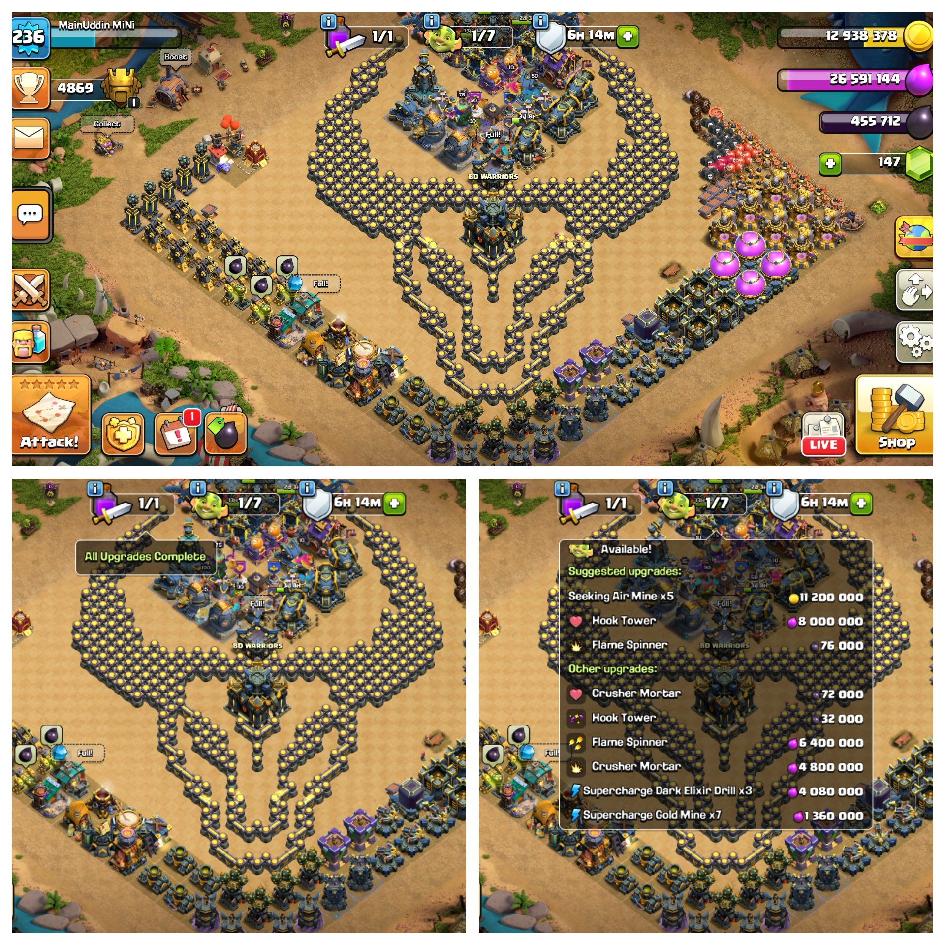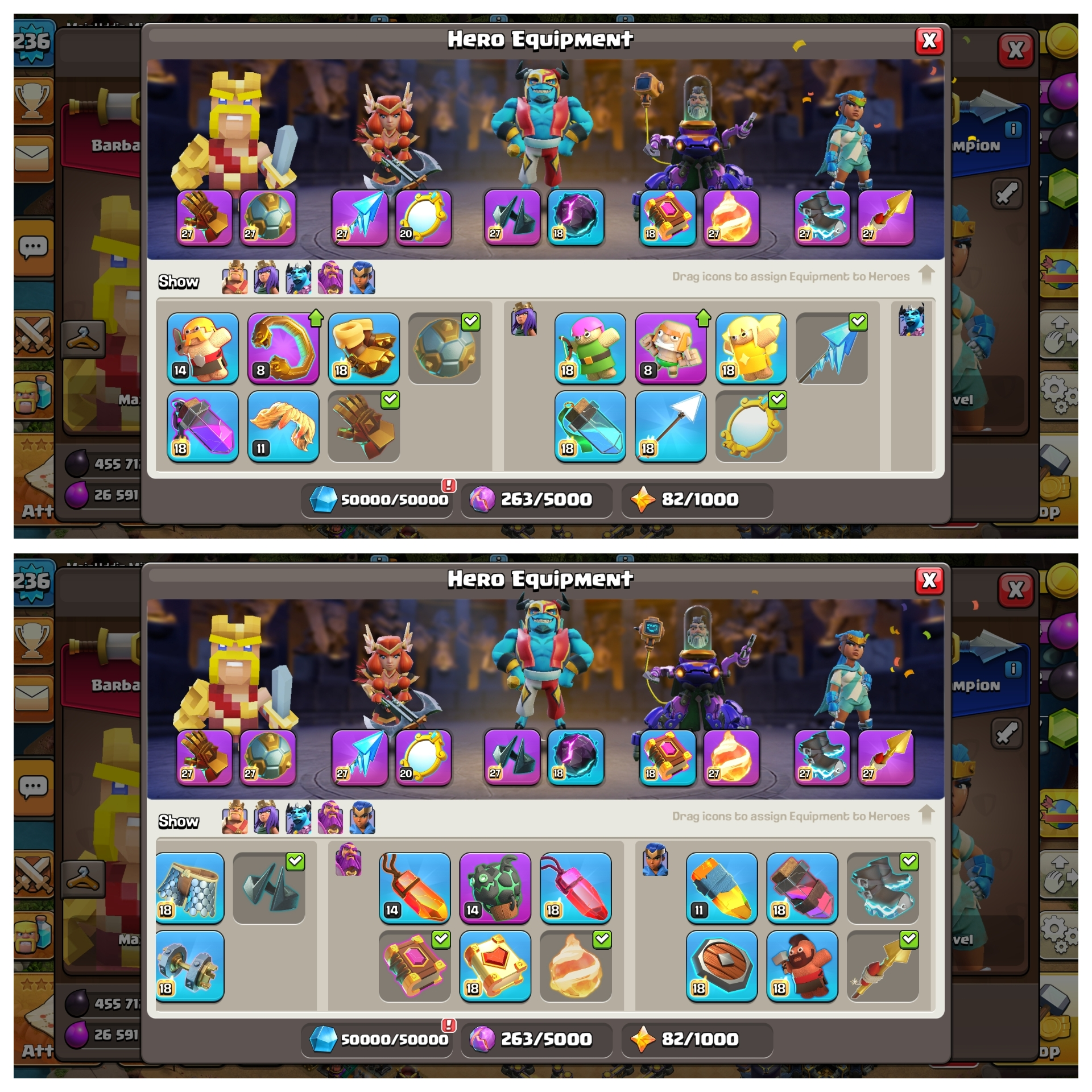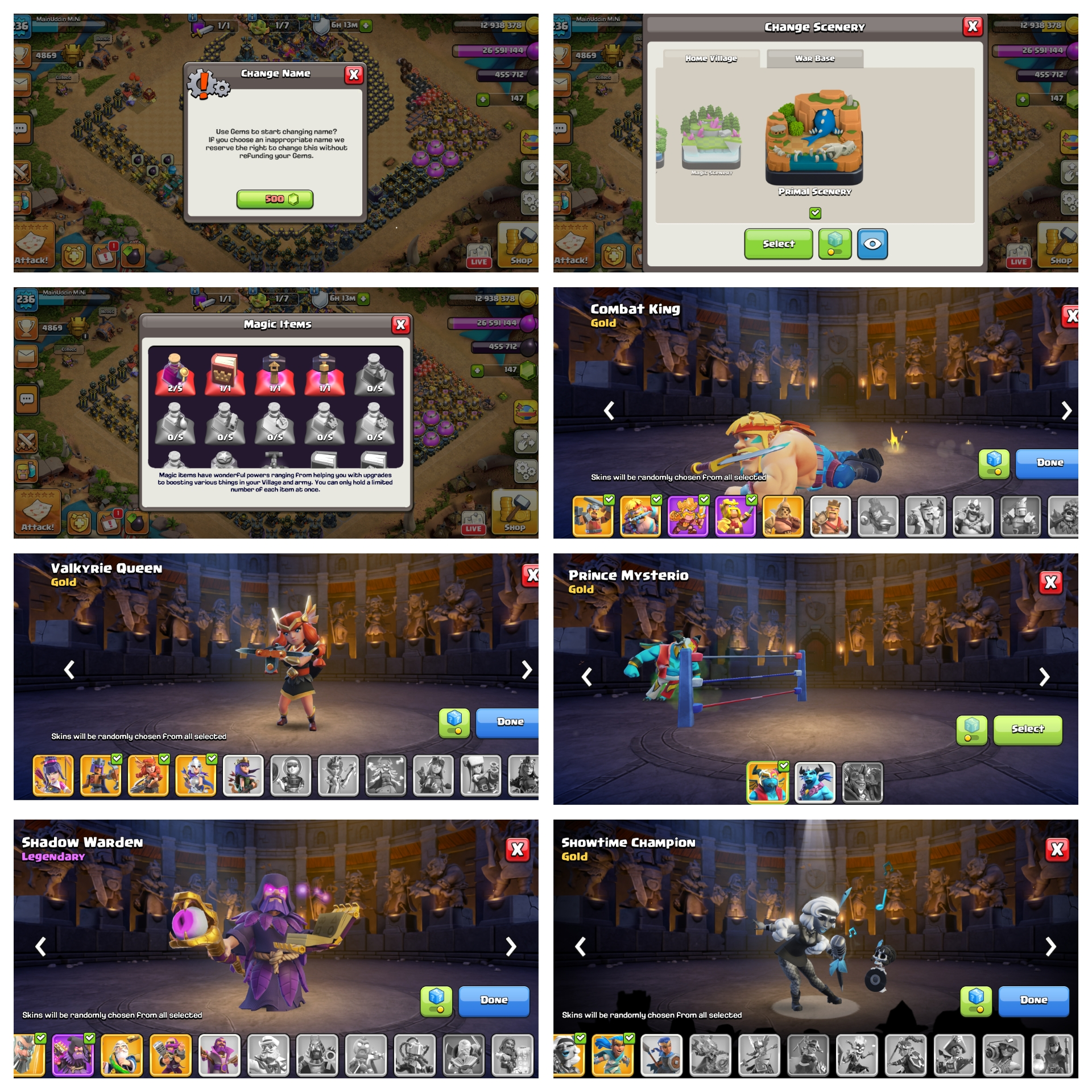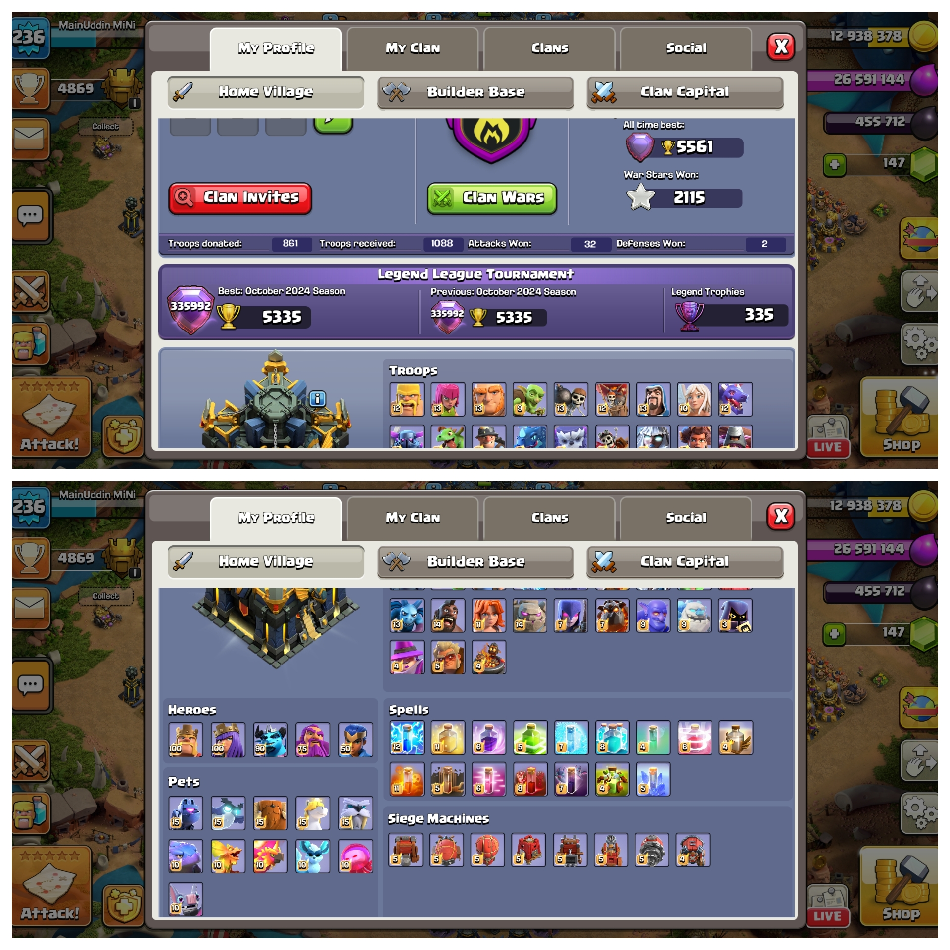 Full Max-8X Epics Max-Th17 Max-Hero 100-100-90-75-50-Xp236-Wall Defense Profile Full Max-16 Rare Skin-Builder Hall Full Max-Nc 500