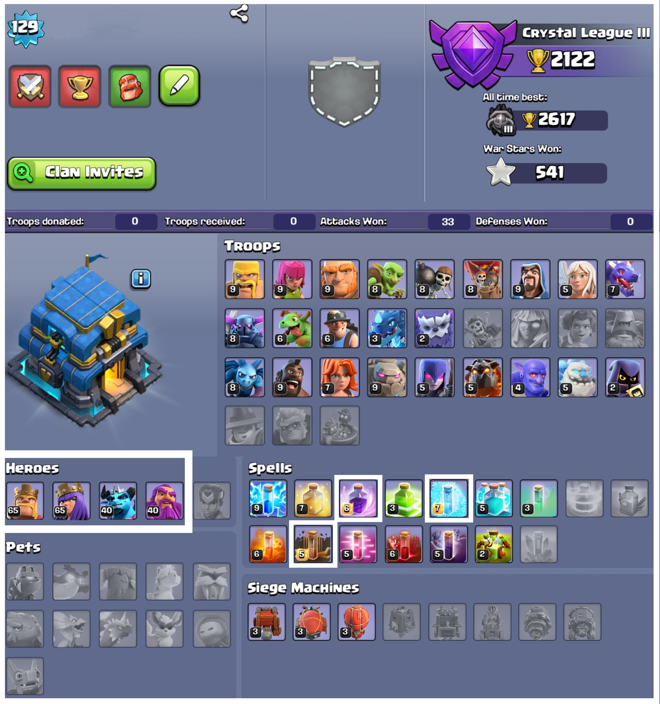 🎃 HALLOWEEN 45% OFF SALE 🎃♨️ TOWN HALL 12 PURE MAX 🌟 4 EPIC EQUIPMENT { SB 14 , FA 08 , AF 08 , HT 08 } ♦️ HEROES { BK 65 , AQ 65 , MP 40 , GW 40 } 💫 129 XP LVL 💥 OP MAGIC ITEMS 🩸 362 CWL MEDALS ⚡ LOT OF OBSTACLES 🌲 5 HEROES SKINS 💕 FAST DELIVERY 🚚 #KB