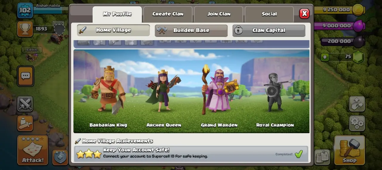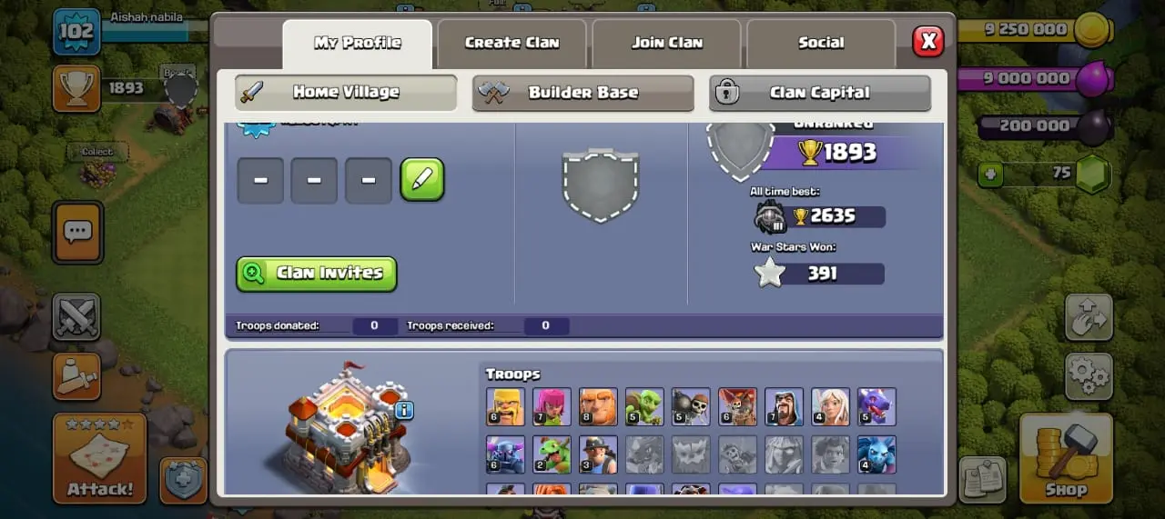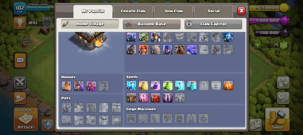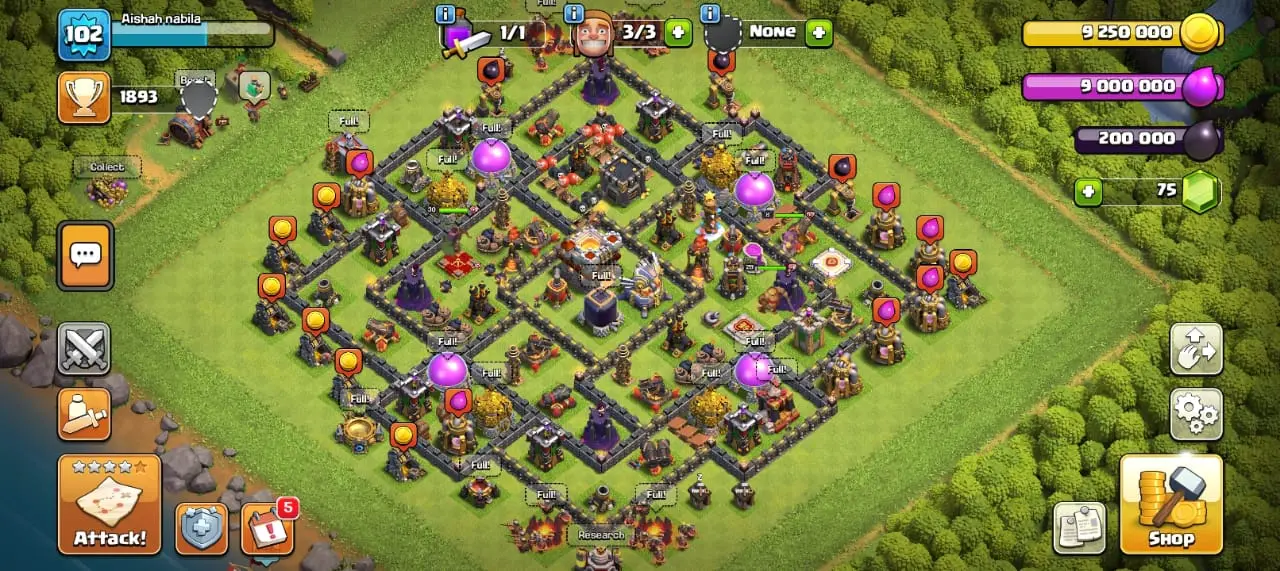 1893 Trophies | Level 102 | 200K Dark Elixir | 9M Elixir | 75 Gems